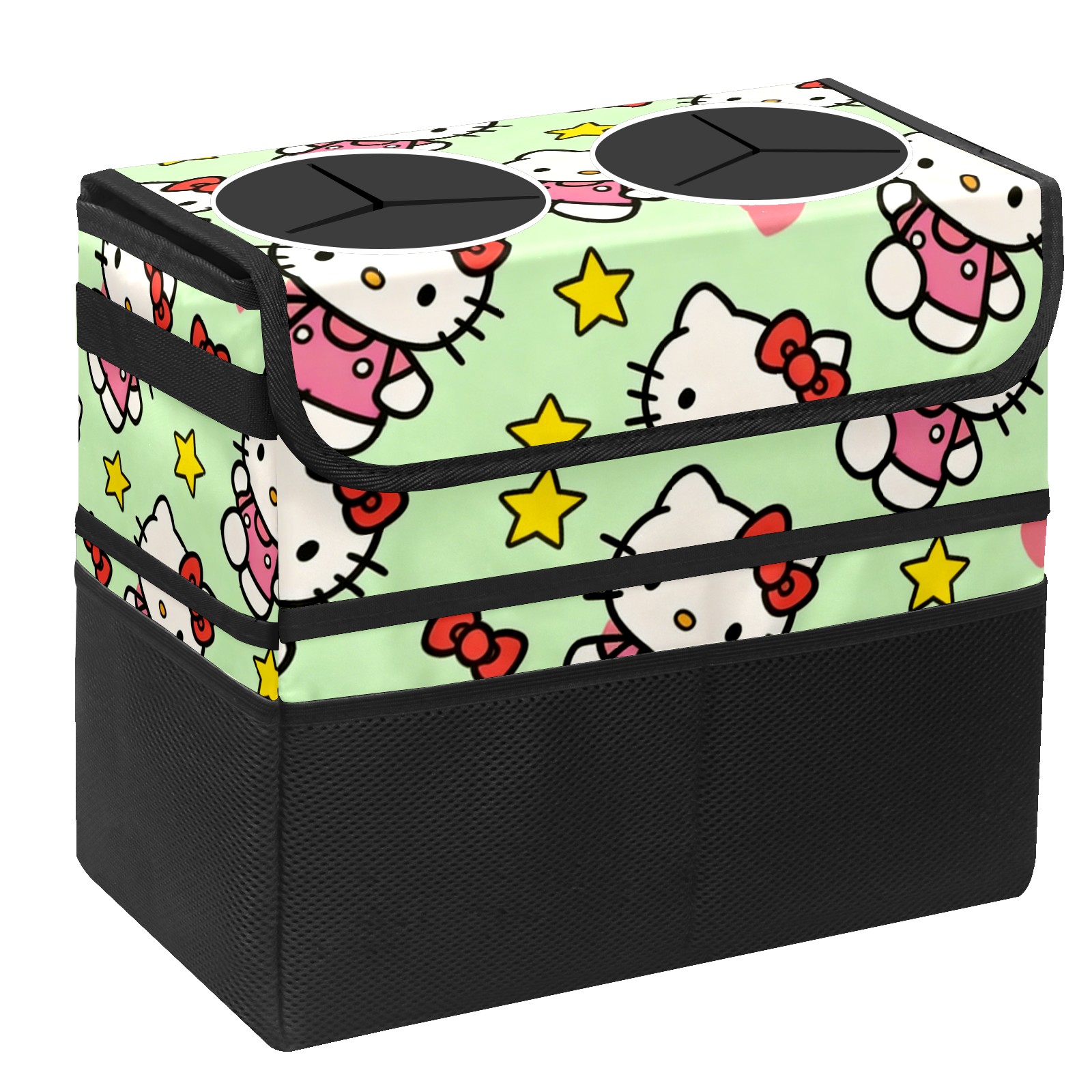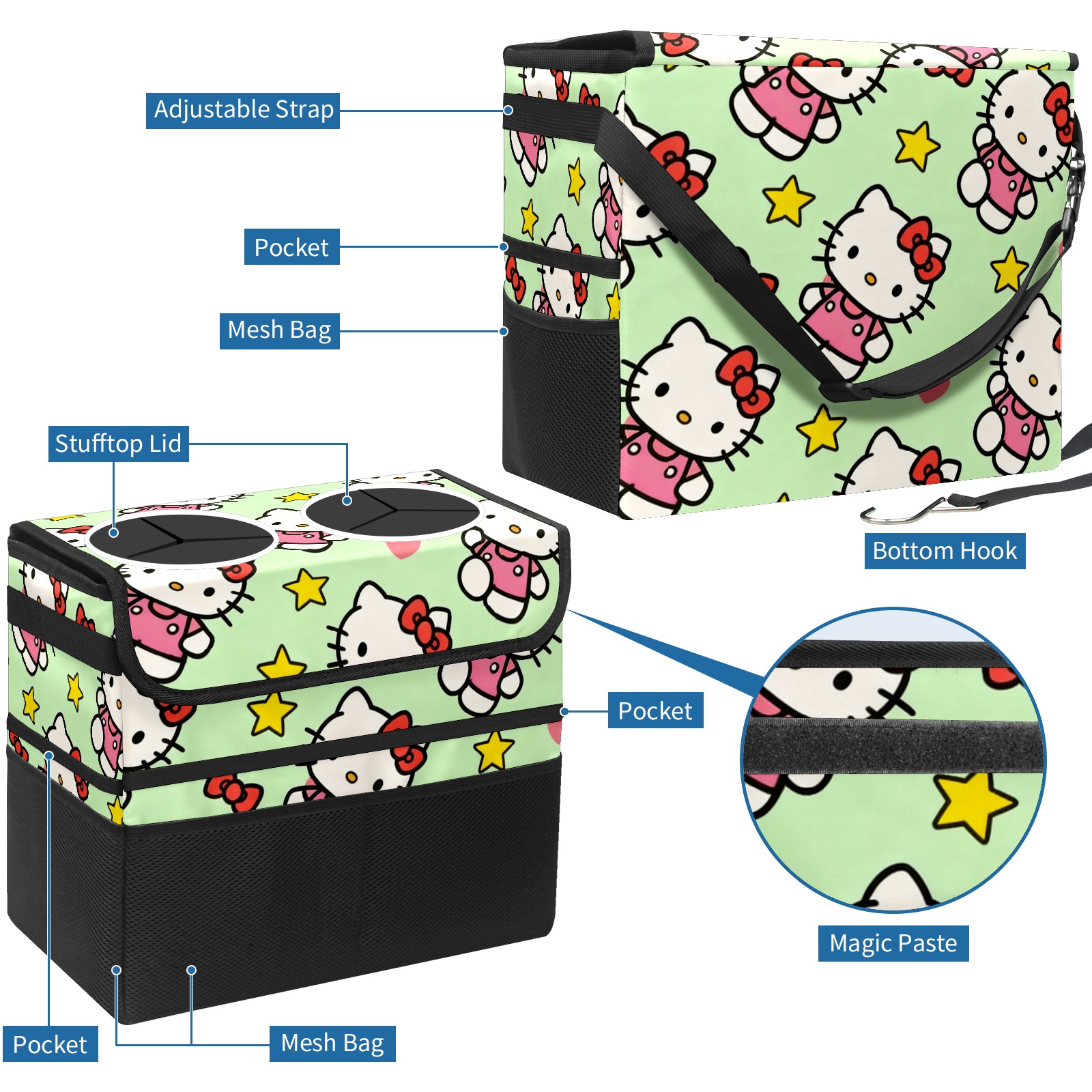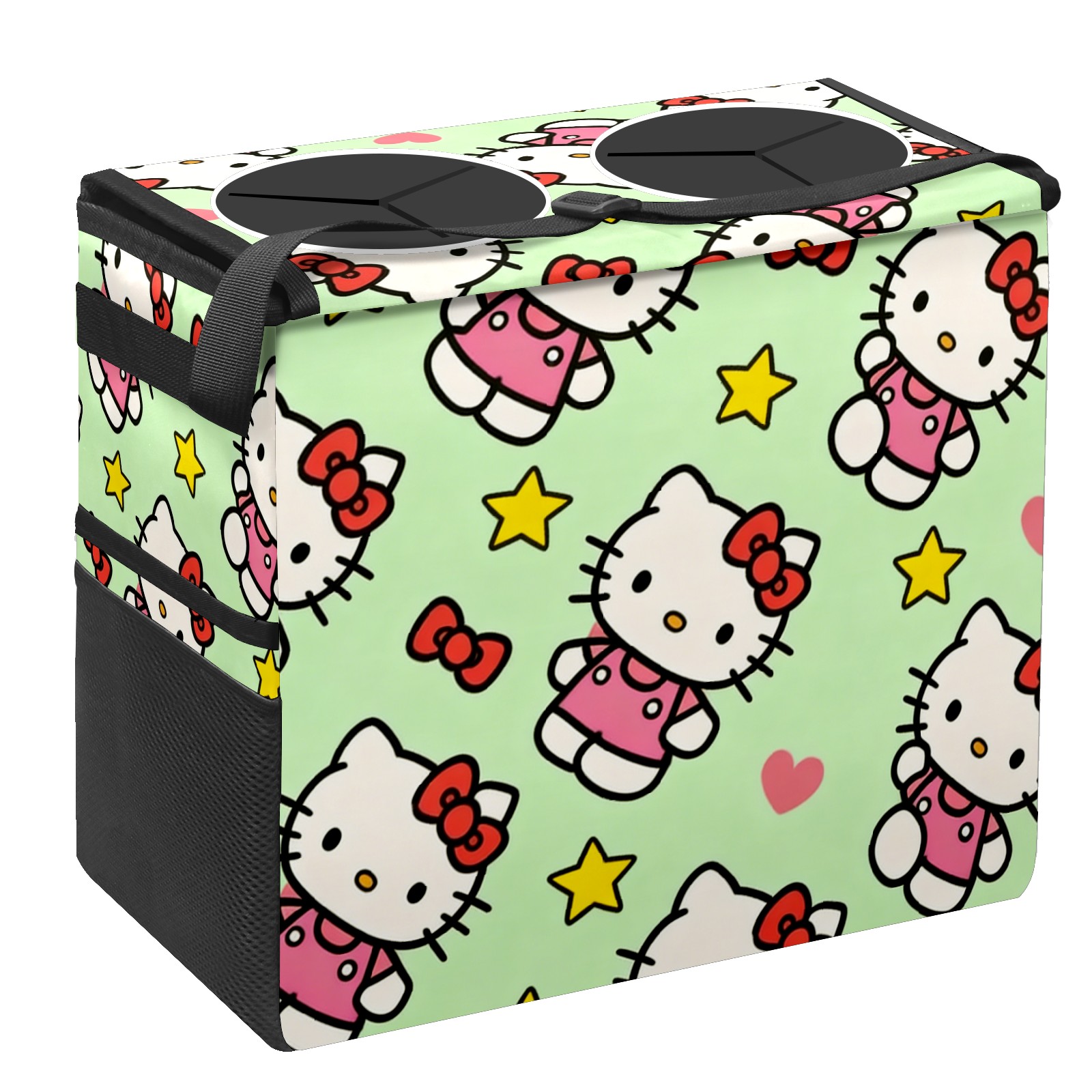 Car Trash Can with Lid, Portable Hanging Automotive Garbage Bin for Vehicles, Leakproof Waste Bag Container for SUV Truck Van Interior Auto Travel Road Trips(Sweet Cat Green)