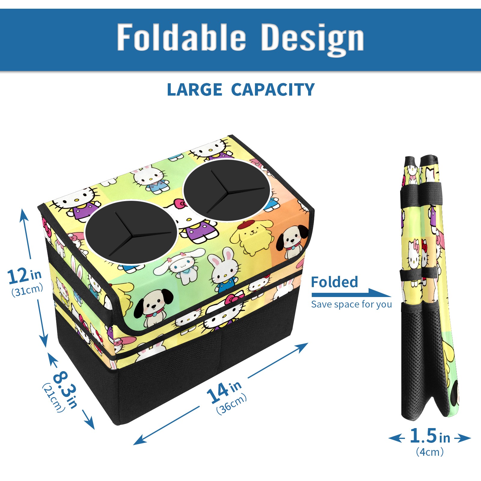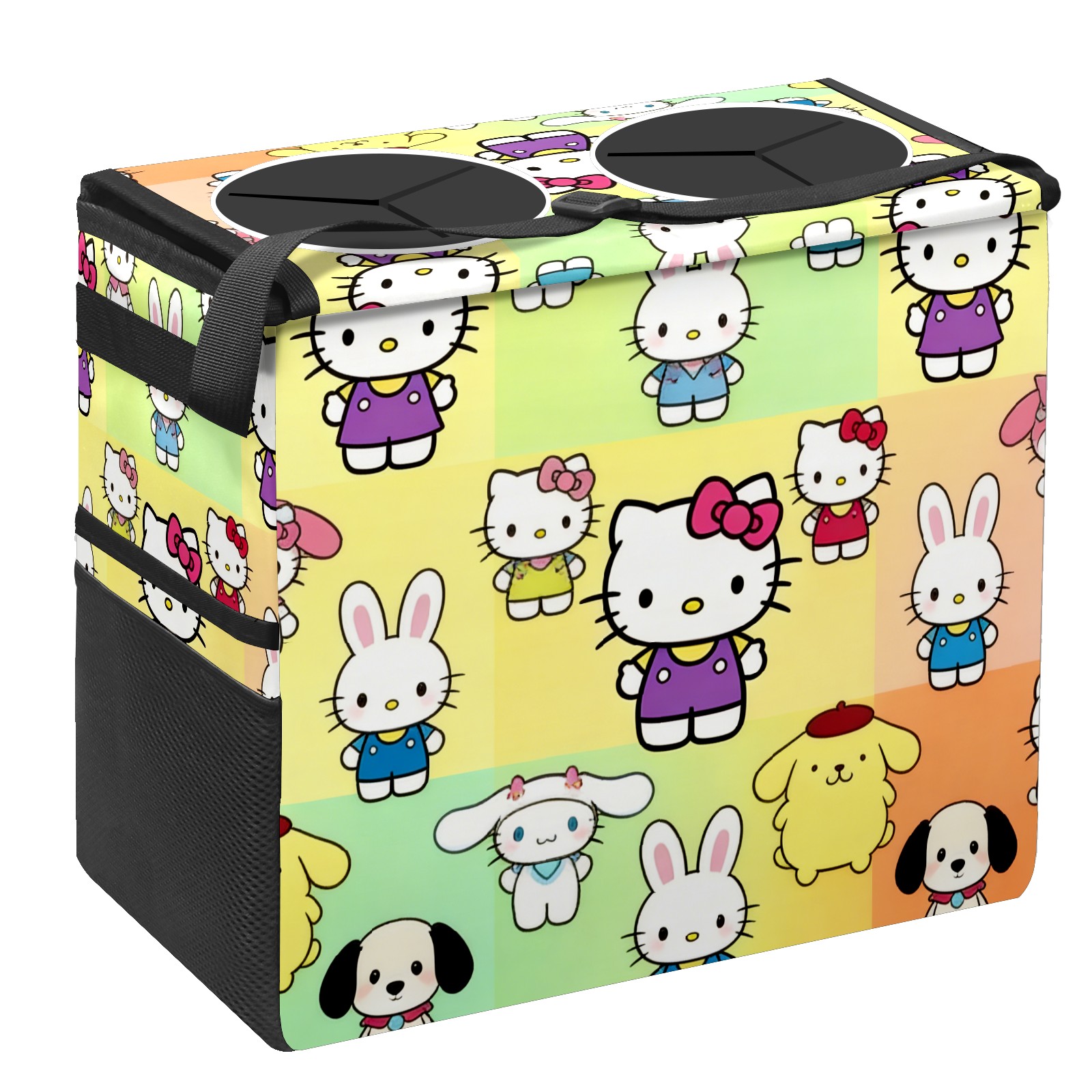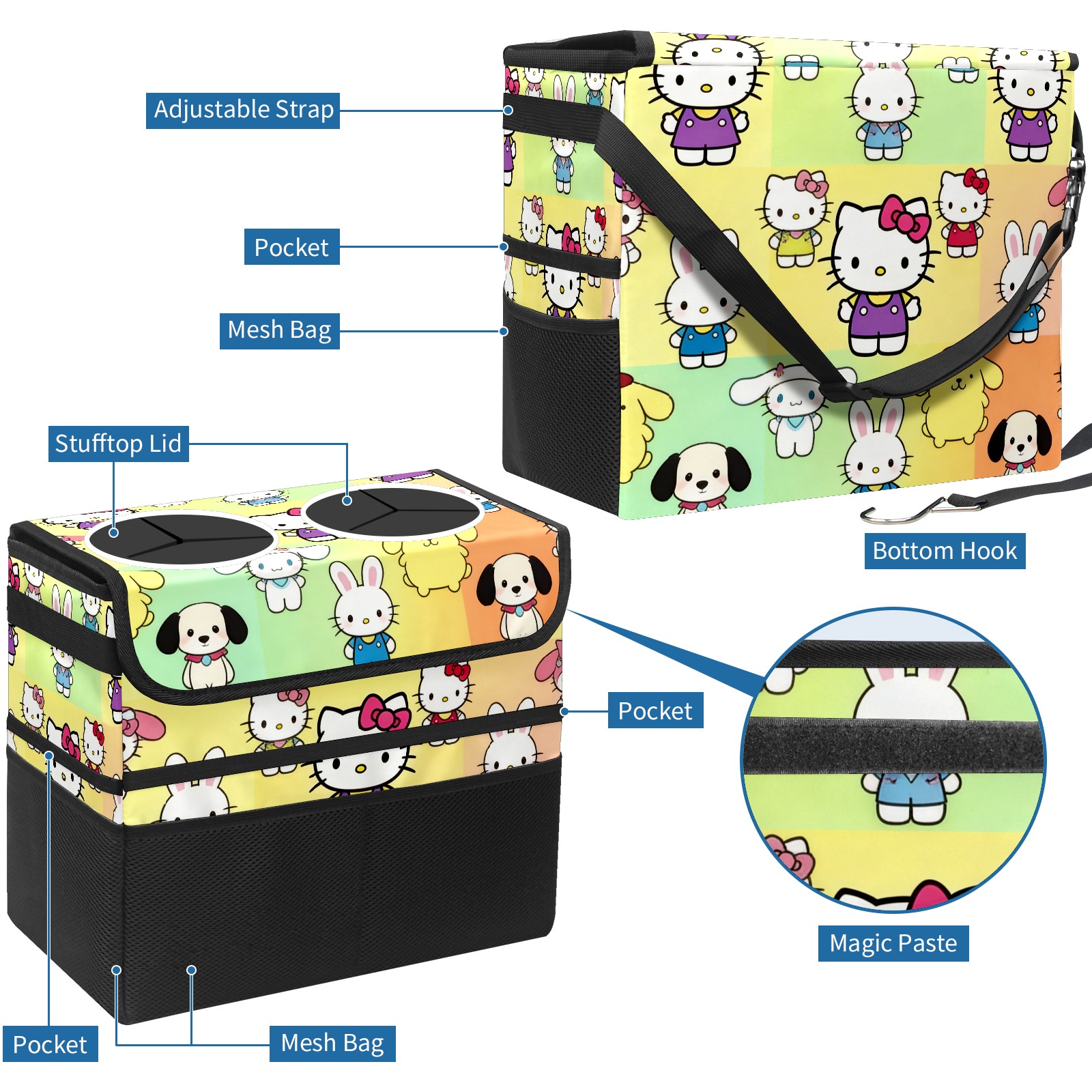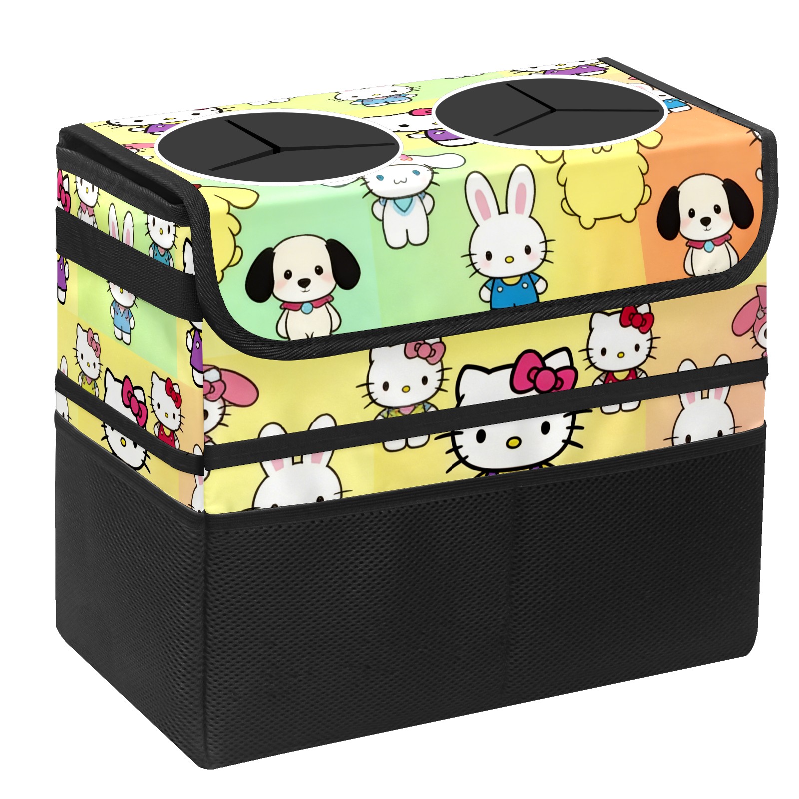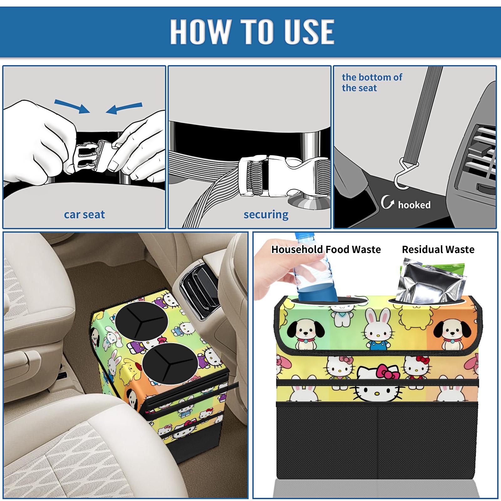 Car Trash Can with Lid, Portable Hanging Automotive Garbage Bin for Vehicles, Leakproof Waste Bag Container for SUV Truck Van Interior Auto Travel Road Trips(Rabbit Character Multi)