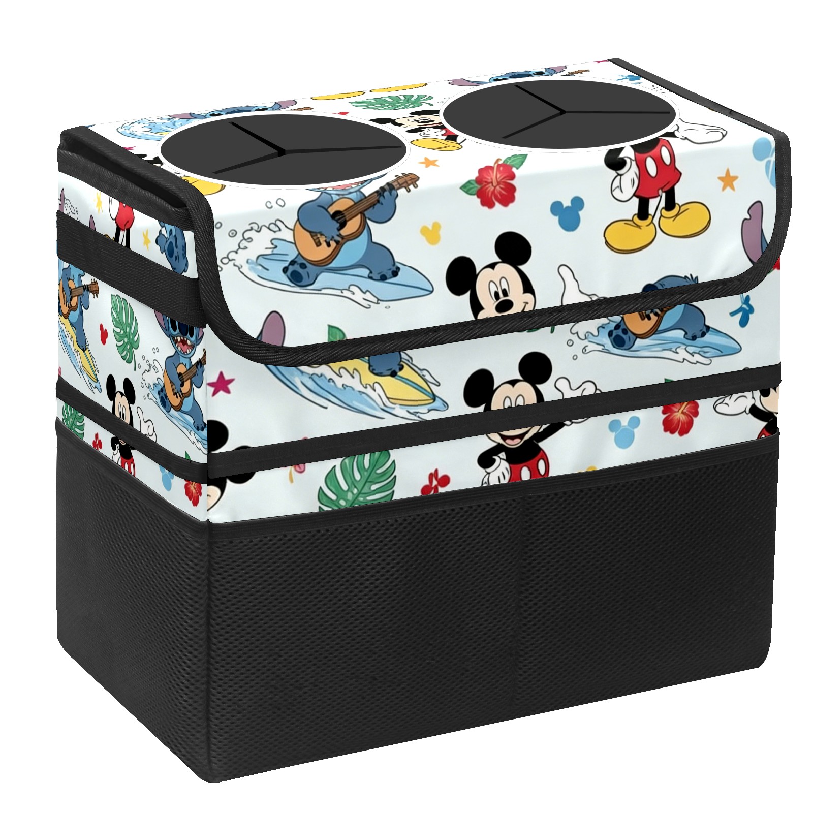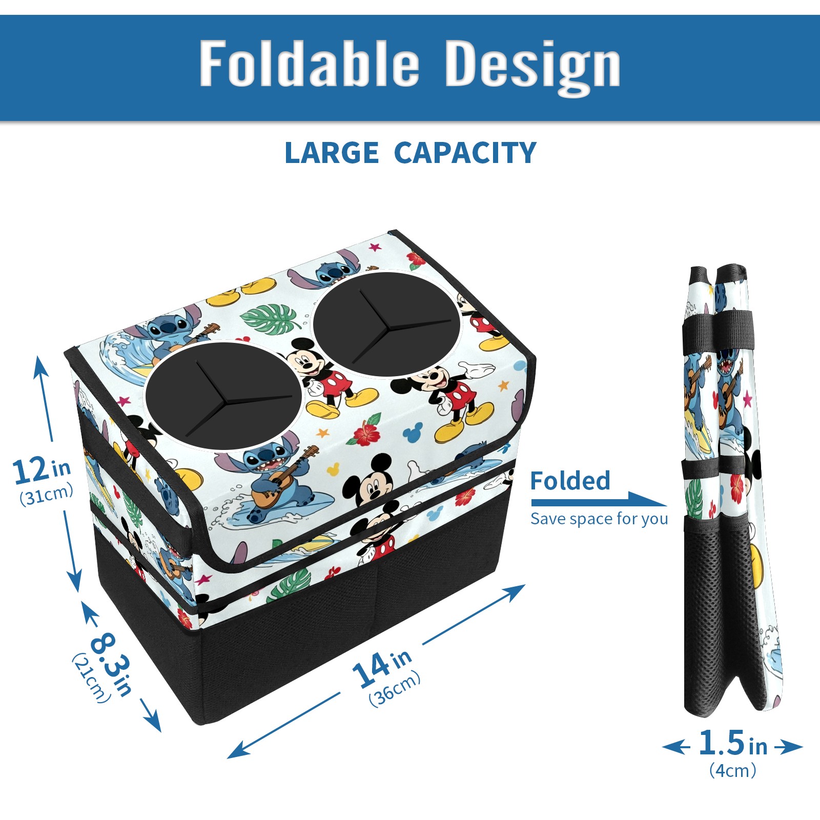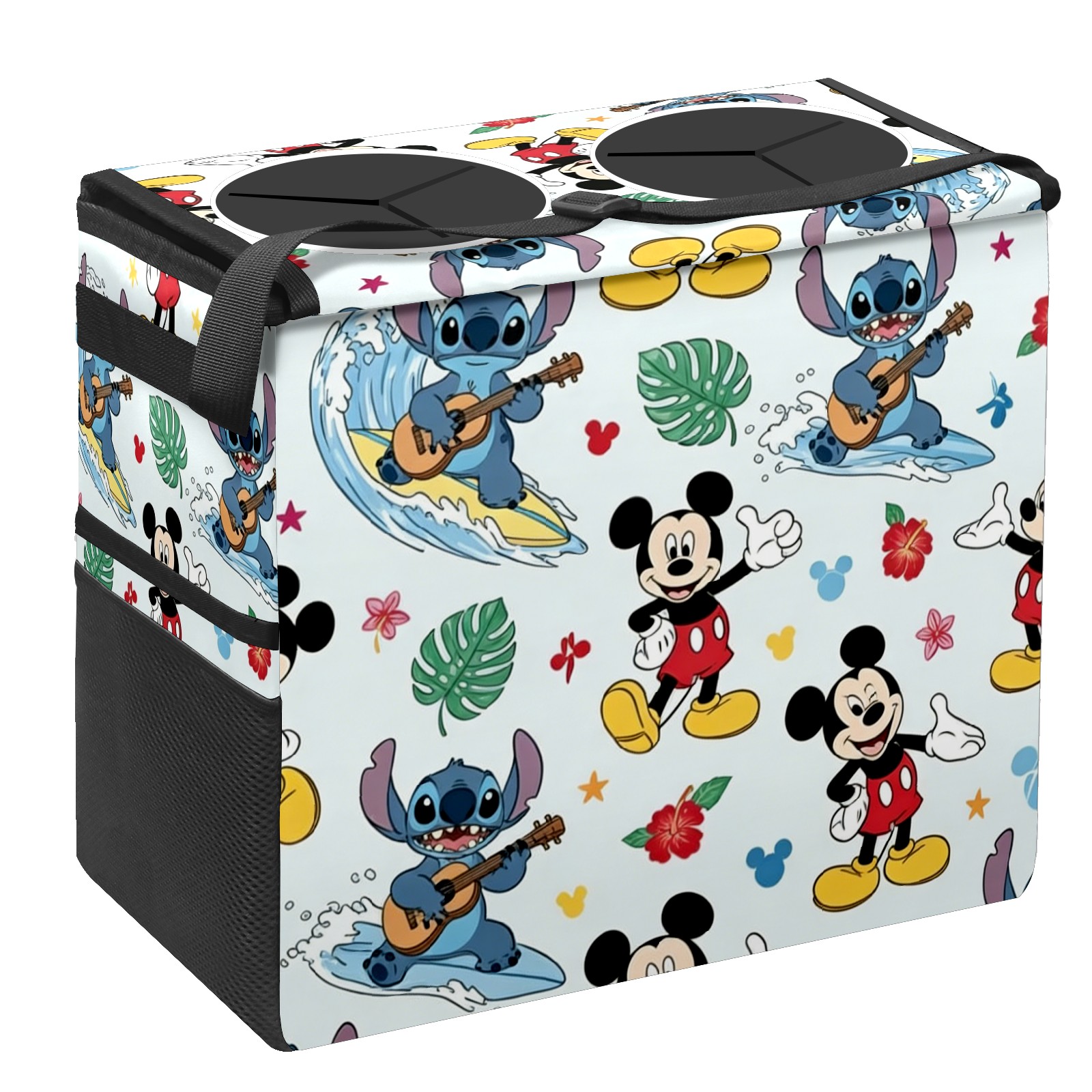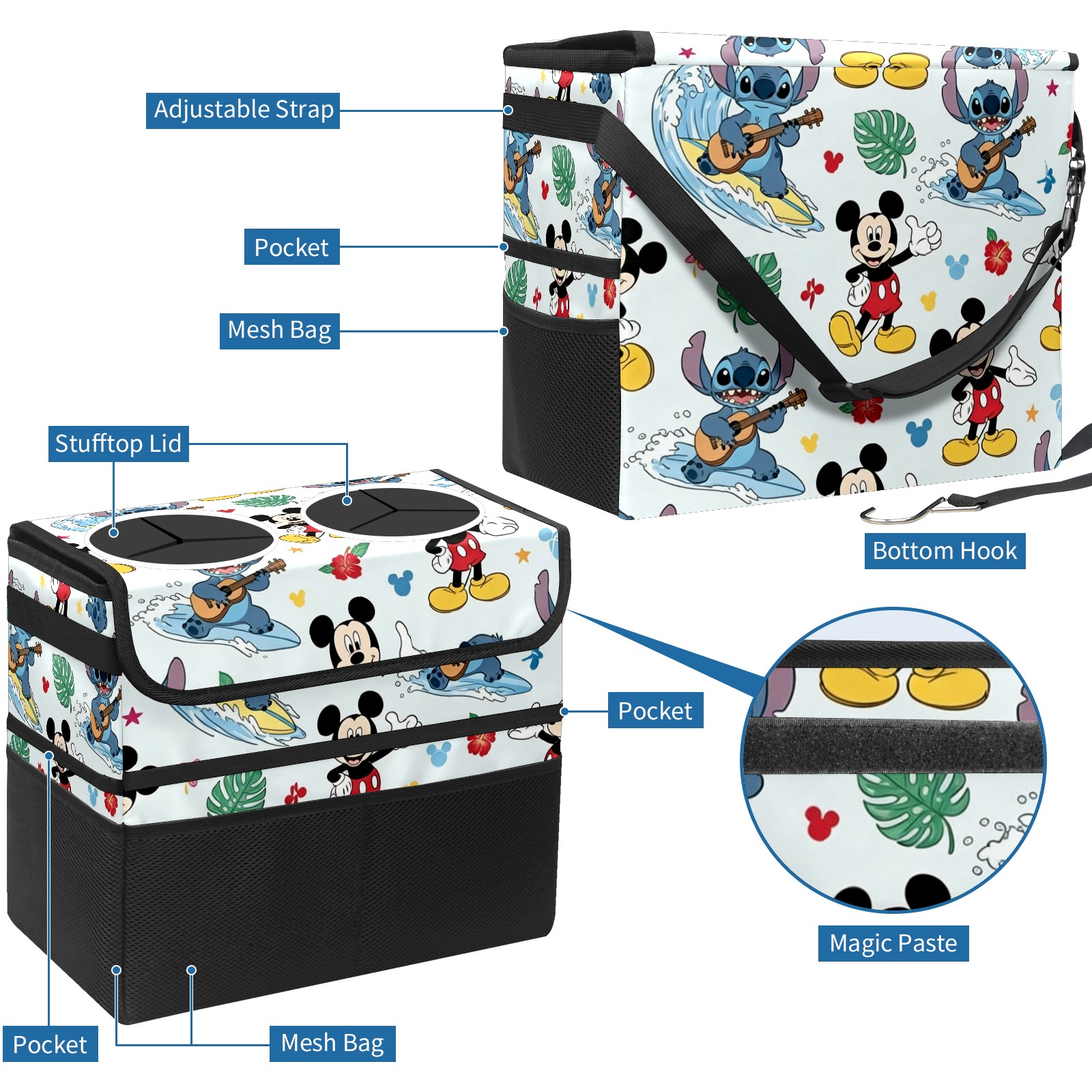 Car Trash Can with Lid, Portable Hanging Automotive Garbage Bin for Vehicles, Leakproof Waste Bag Container for SUV Truck Van Interior Auto Travel Road Trips(Vibrant Stitch&Mi Blue)
