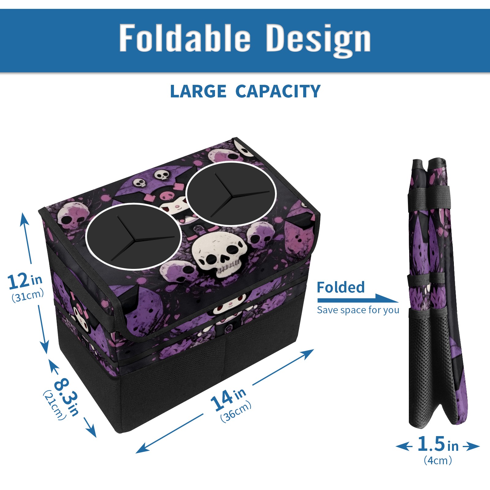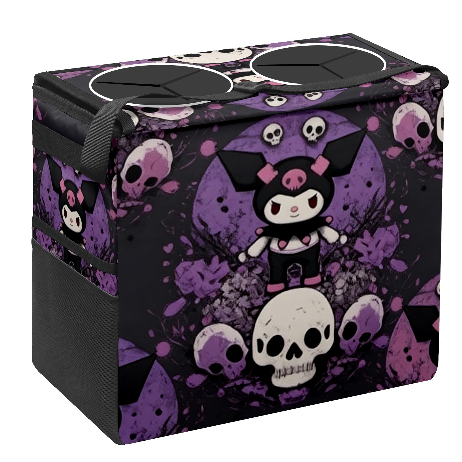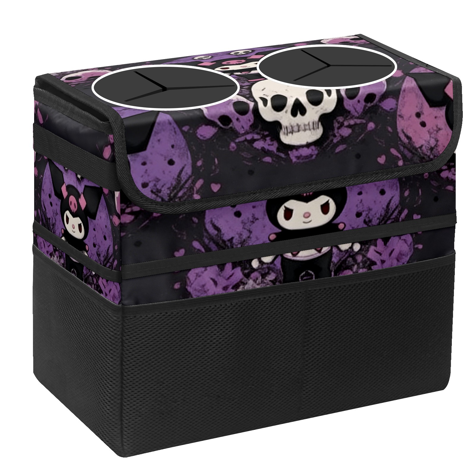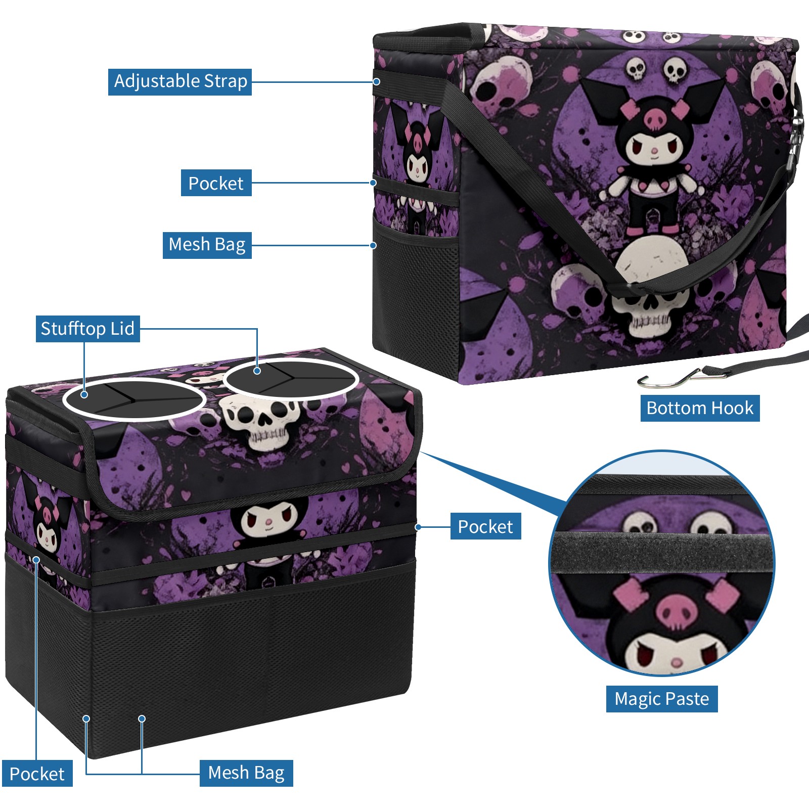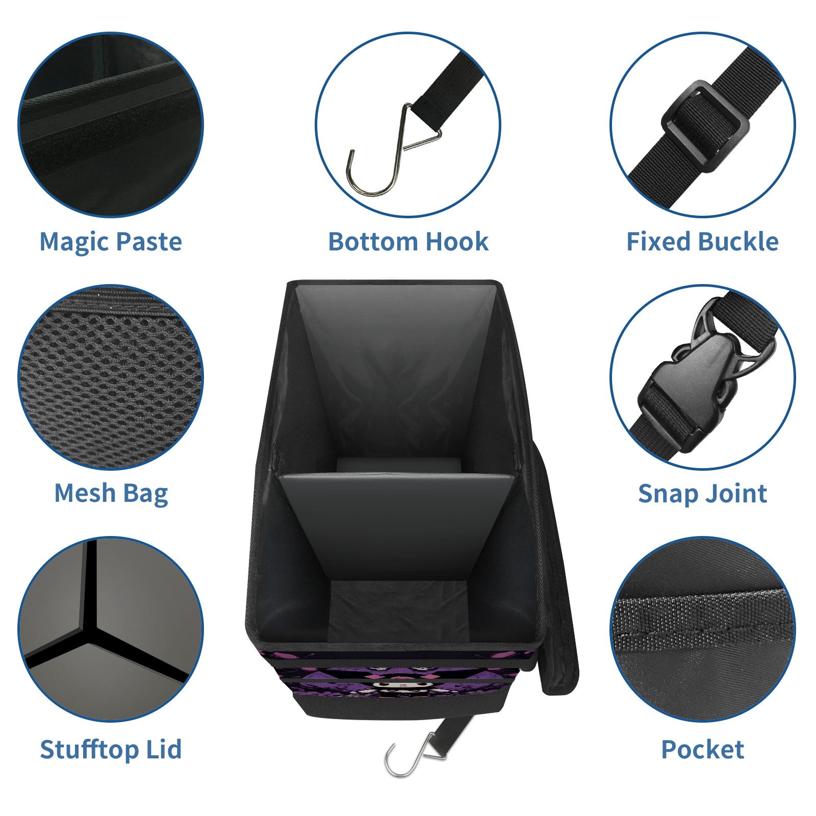 Car Trash Can with Lid, Portable Hanging Automotive Garbage Bin for Vehicles, Leakproof Waste Bag Container for SUV Truck Van Interior Auto Travel Road Trips(Dark Kuromi Purple)