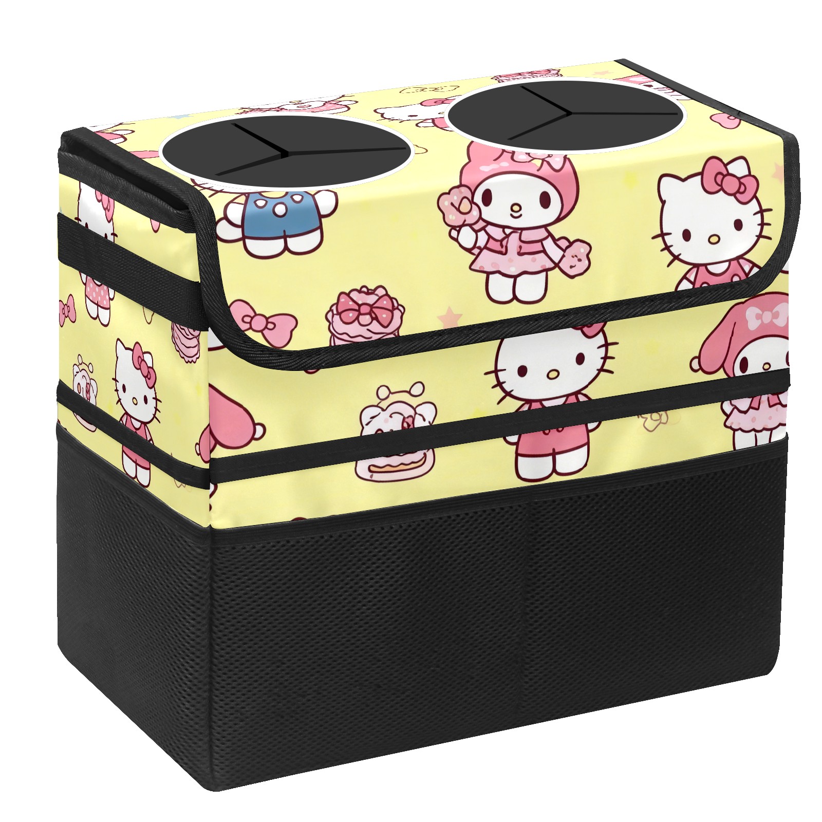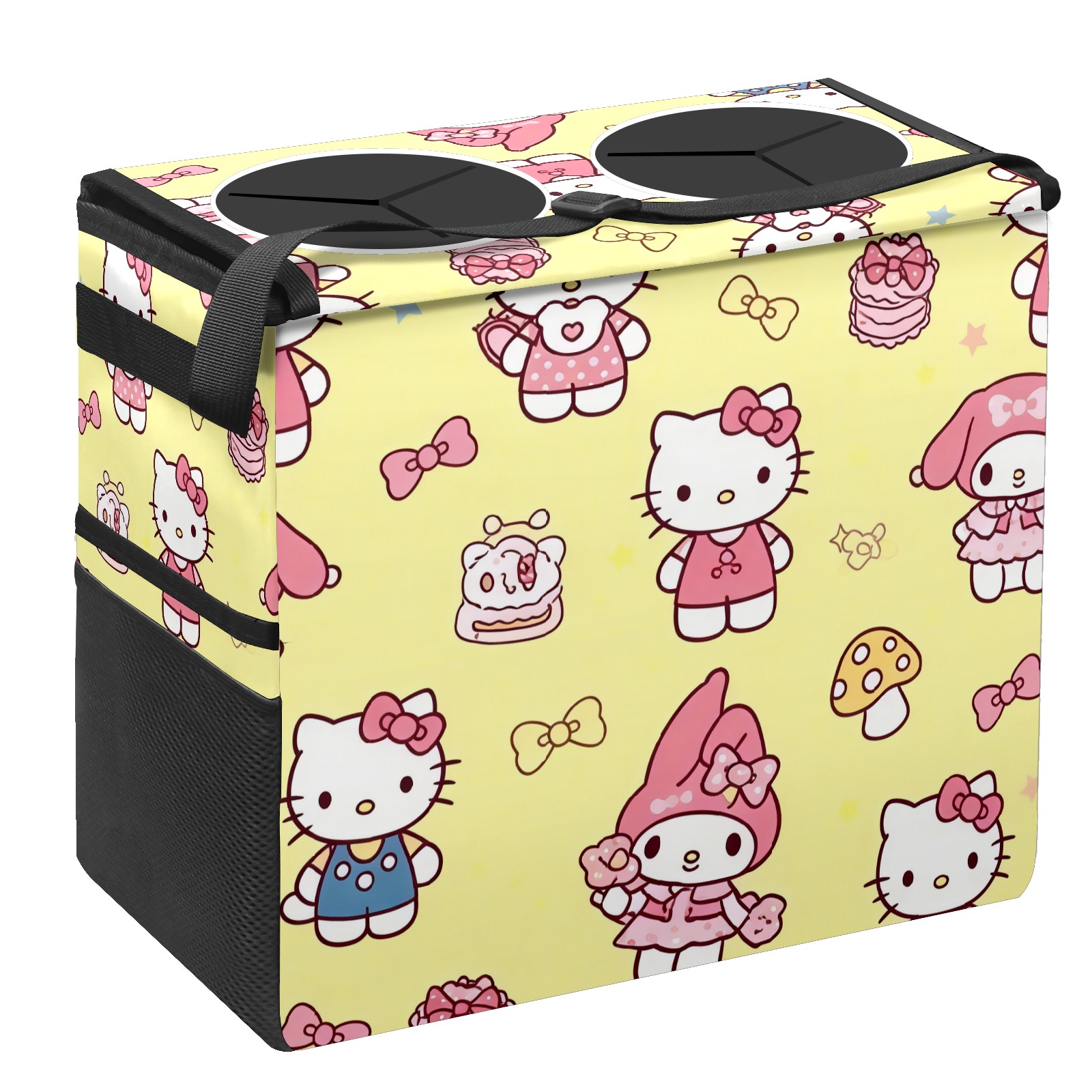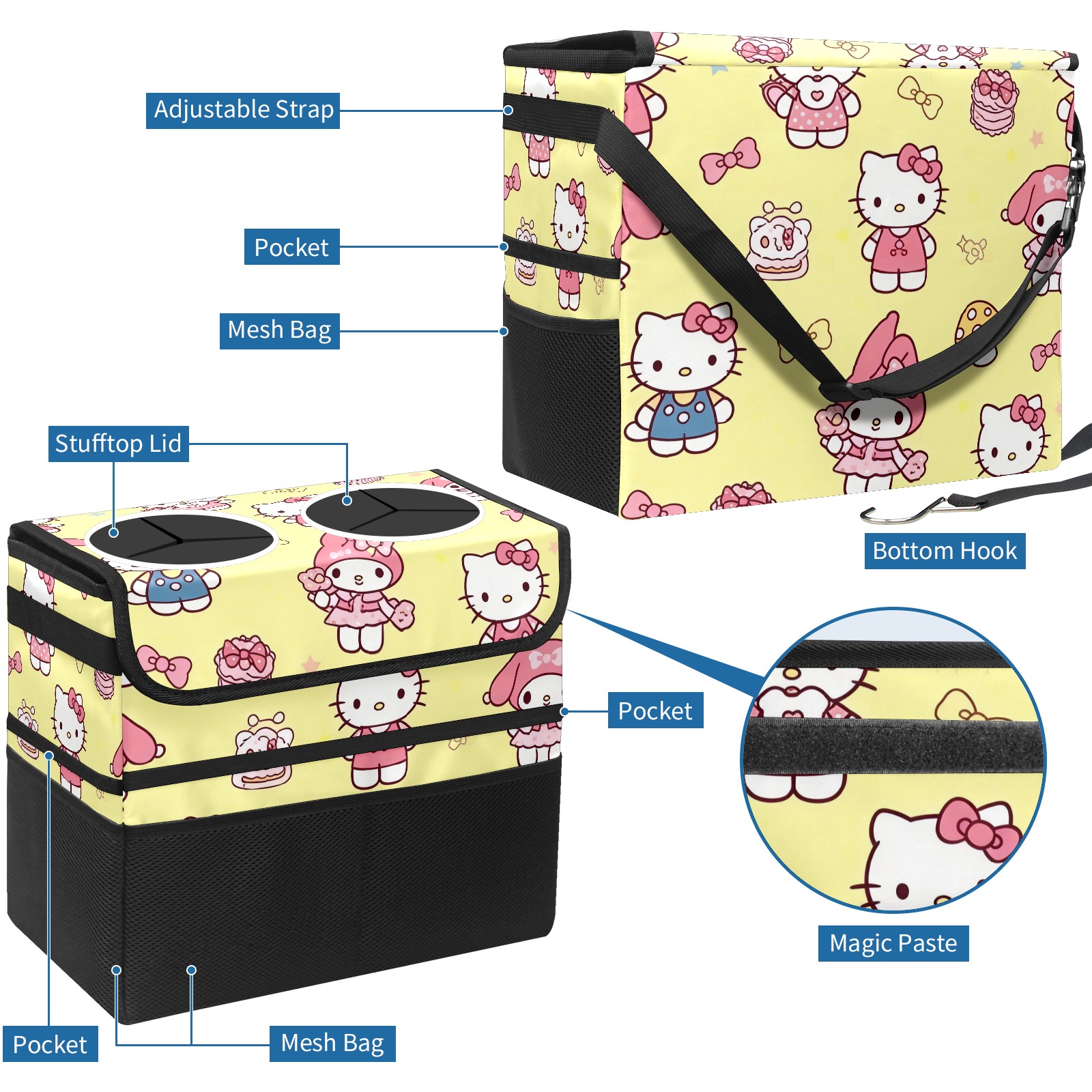 Car Trash Can with Lid, Portable Hanging Automotive Garbage Bin for Vehicles, Leakproof Waste Bag Container for SUV Truck Van Interior Auto Travel Road Trips(Bright Cat Yellow)