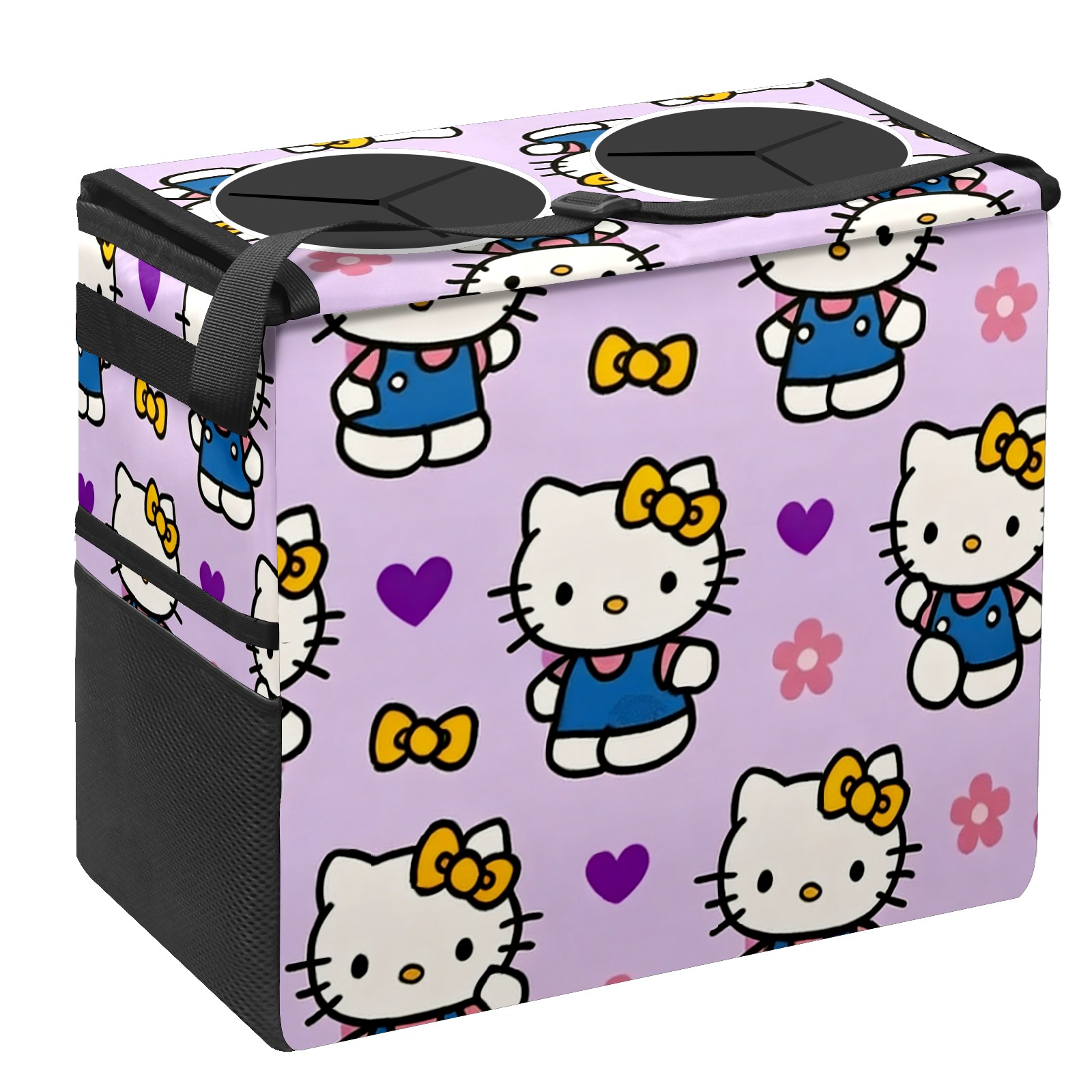 Car Trash Can with Lid, Portable Hanging Automotive Garbage Bin for Vehicles, Leakproof Waste Bag Container for SUV Truck Van Interior Auto Travel Road Trips(Elegant Cat Purple)