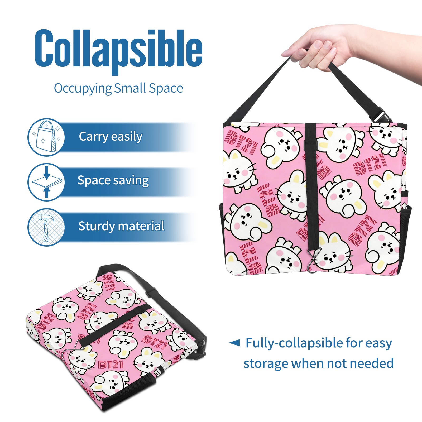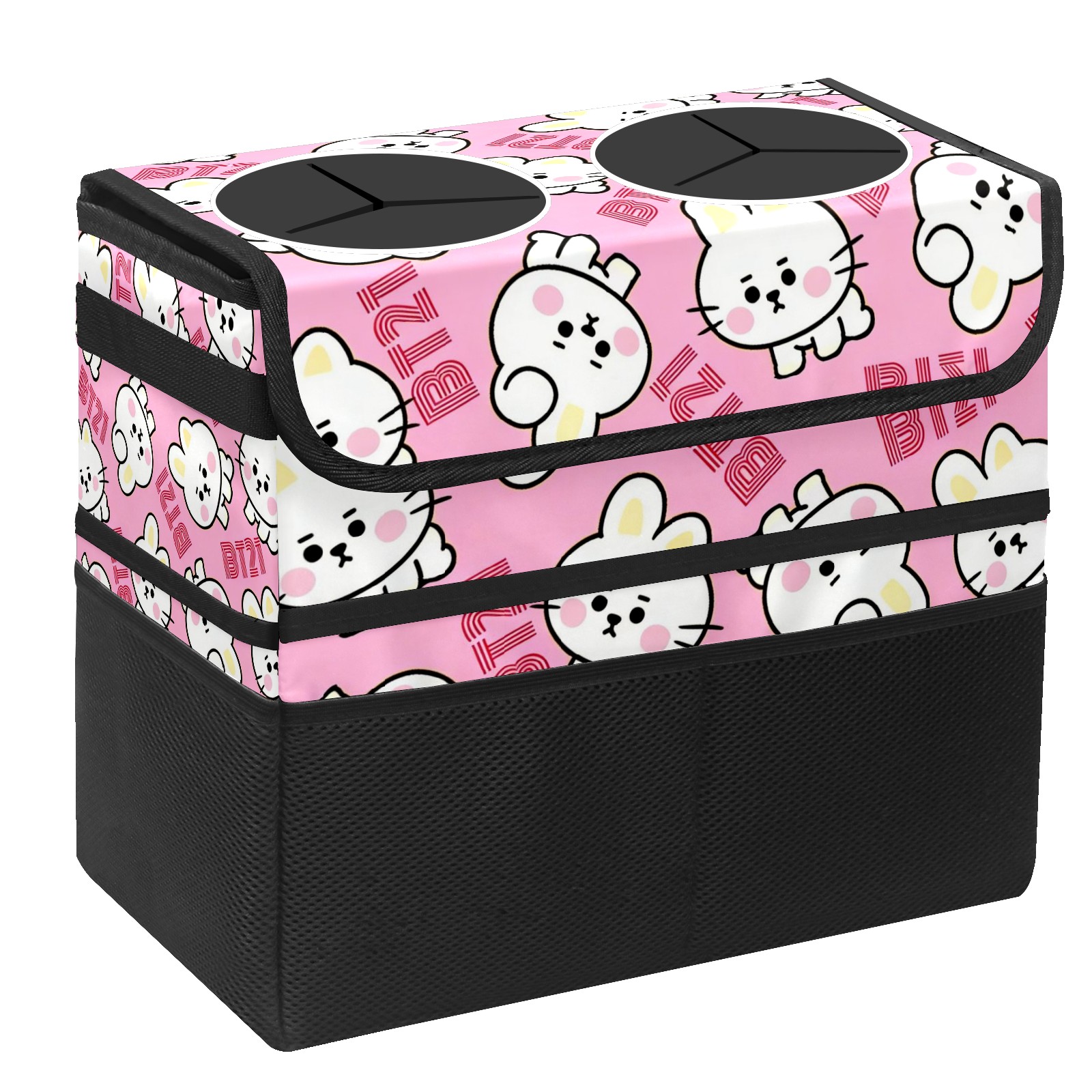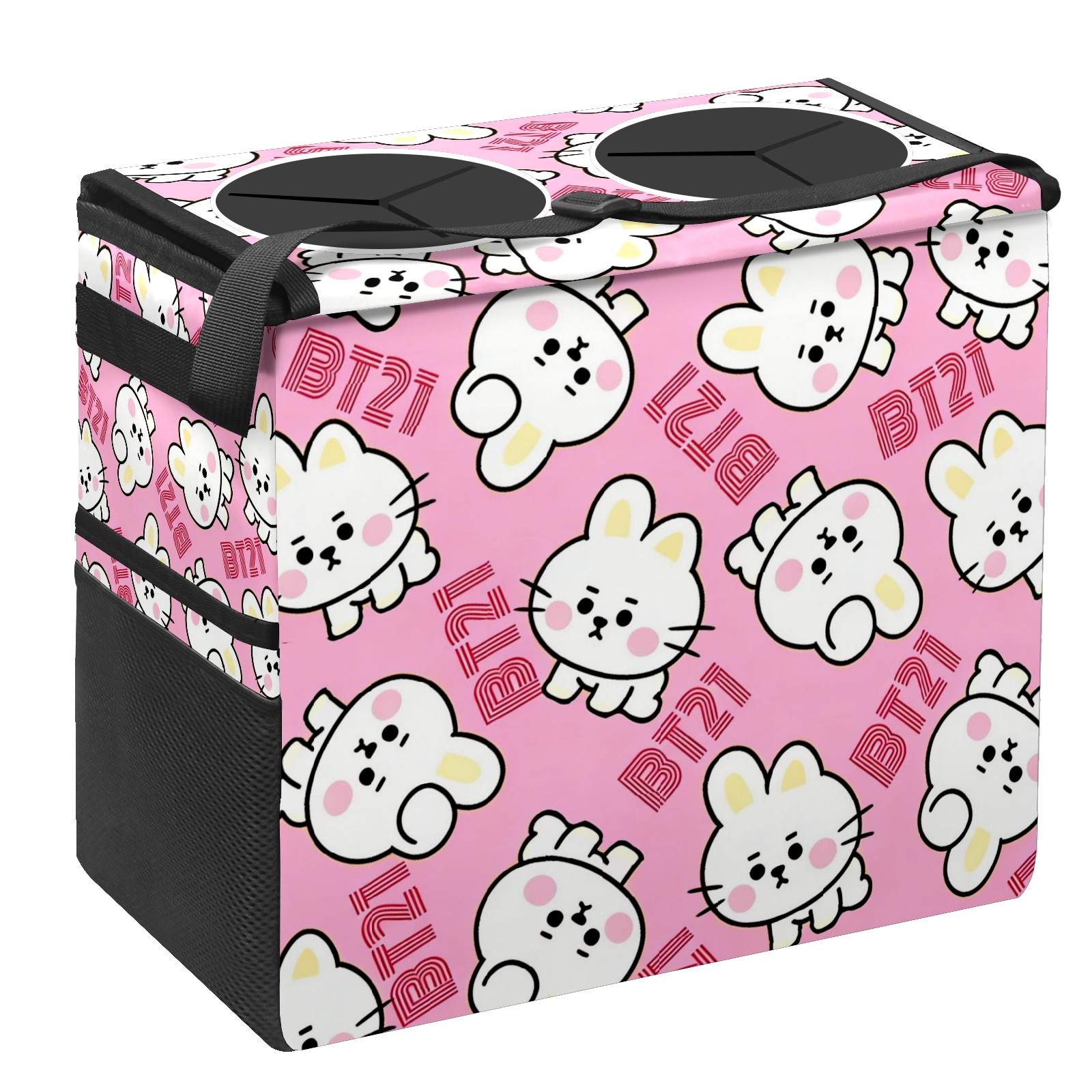 Car Trash Can with Lid, Portable Hanging Automotive Garbage Bin for Vehicles, Leakproof Waste Bag Container for SUV Truck Van Interior Auto Travel Road Trips(Pink BT21)