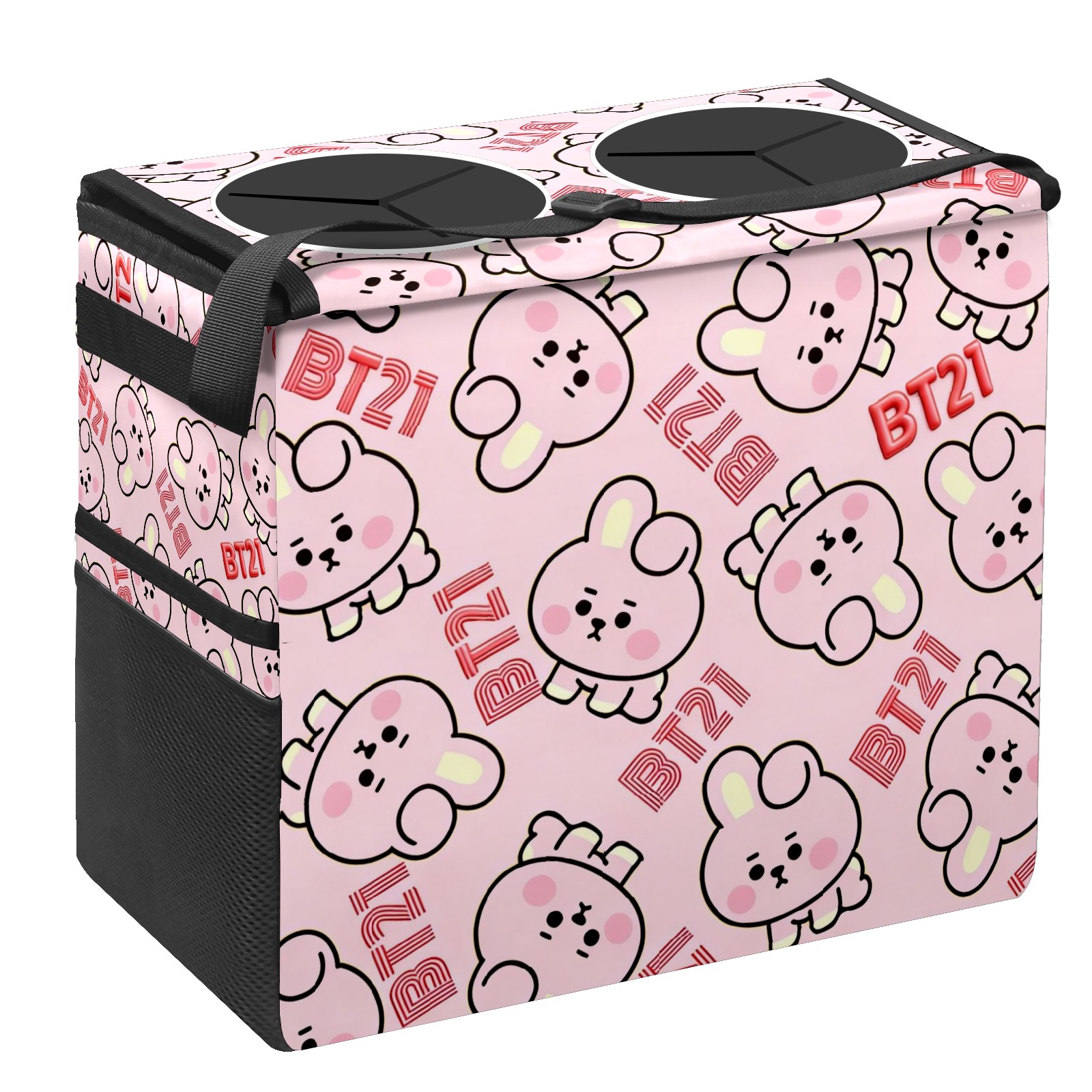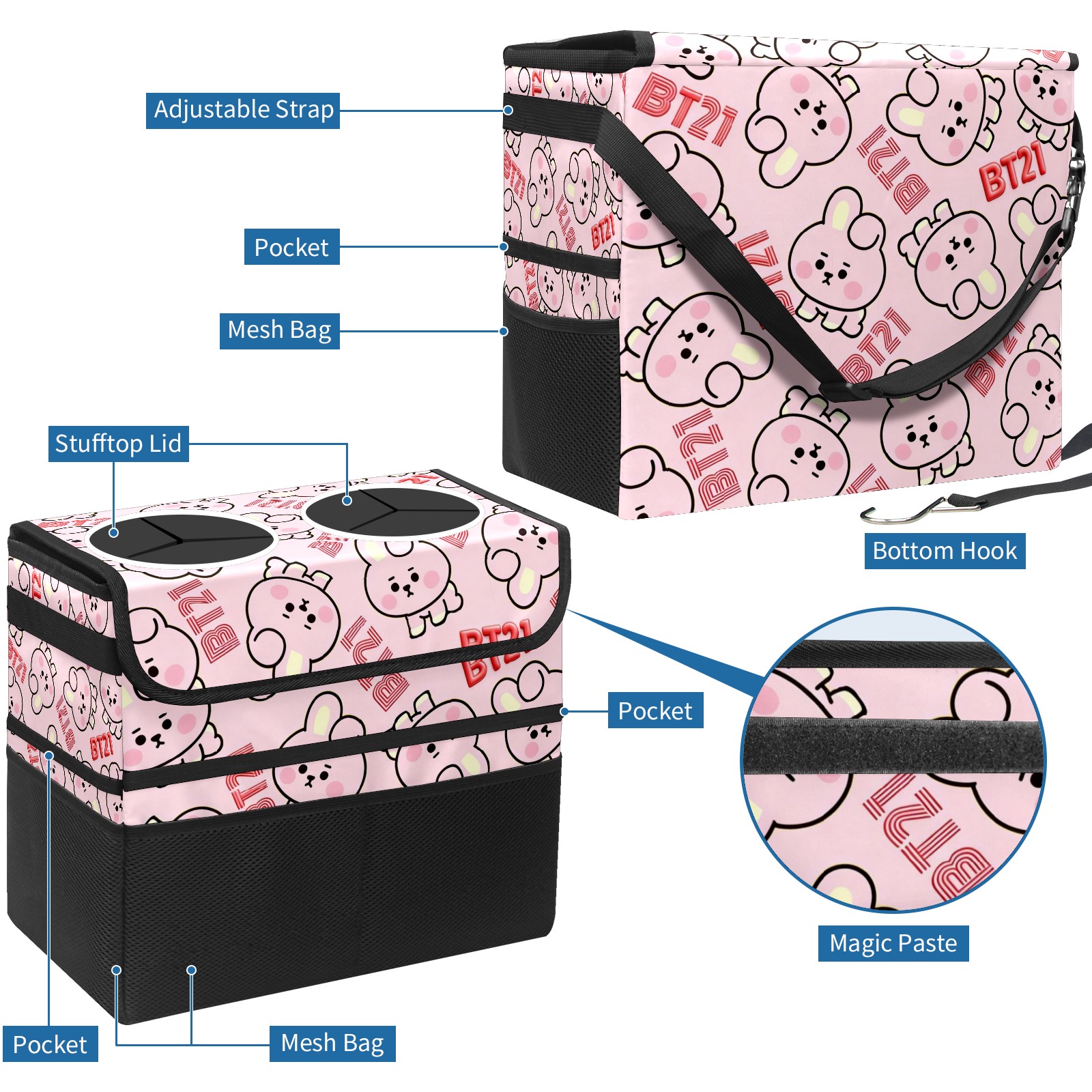 Car Trash Can with Lid, Portable Hanging Automotive Garbage Bin for Vehicles, Leakproof Waste Bag Container for SUV Truck Van Interior Auto Travel Road Trips(Light Pink)