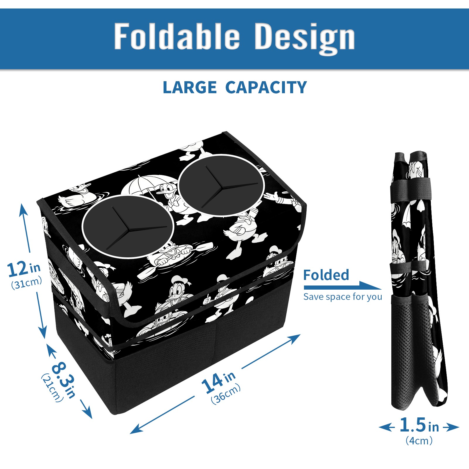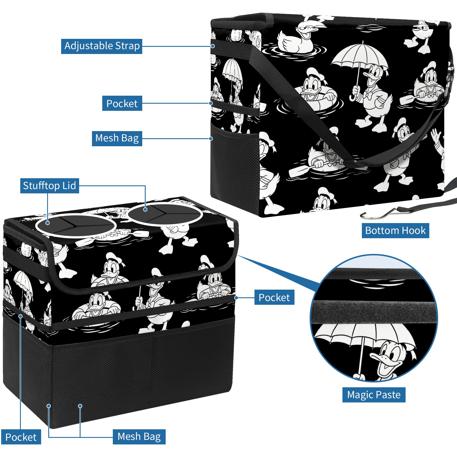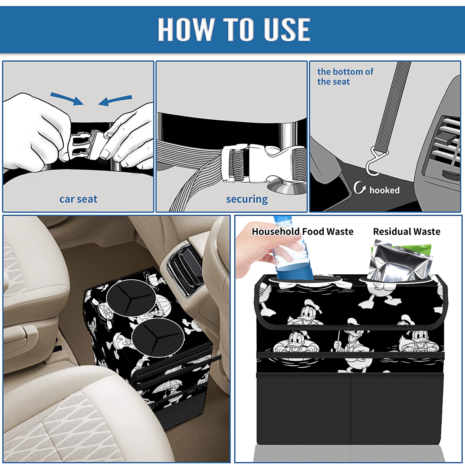 Car Trash Can with Lid, Portable Hanging Automotive Garbage Bin for Vehicles, Leakproof Waste Bag Container for SUV Truck Van Interior Auto Travel Road Trips(Donald Duck)