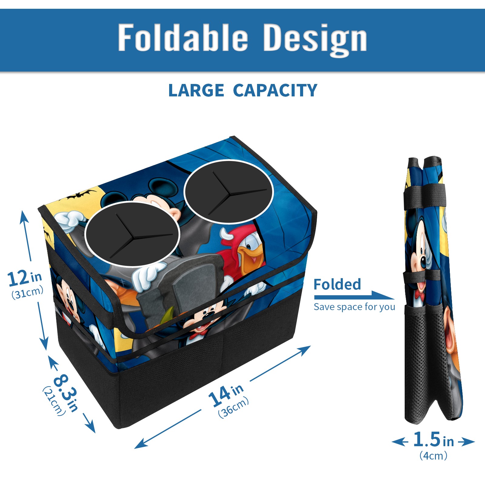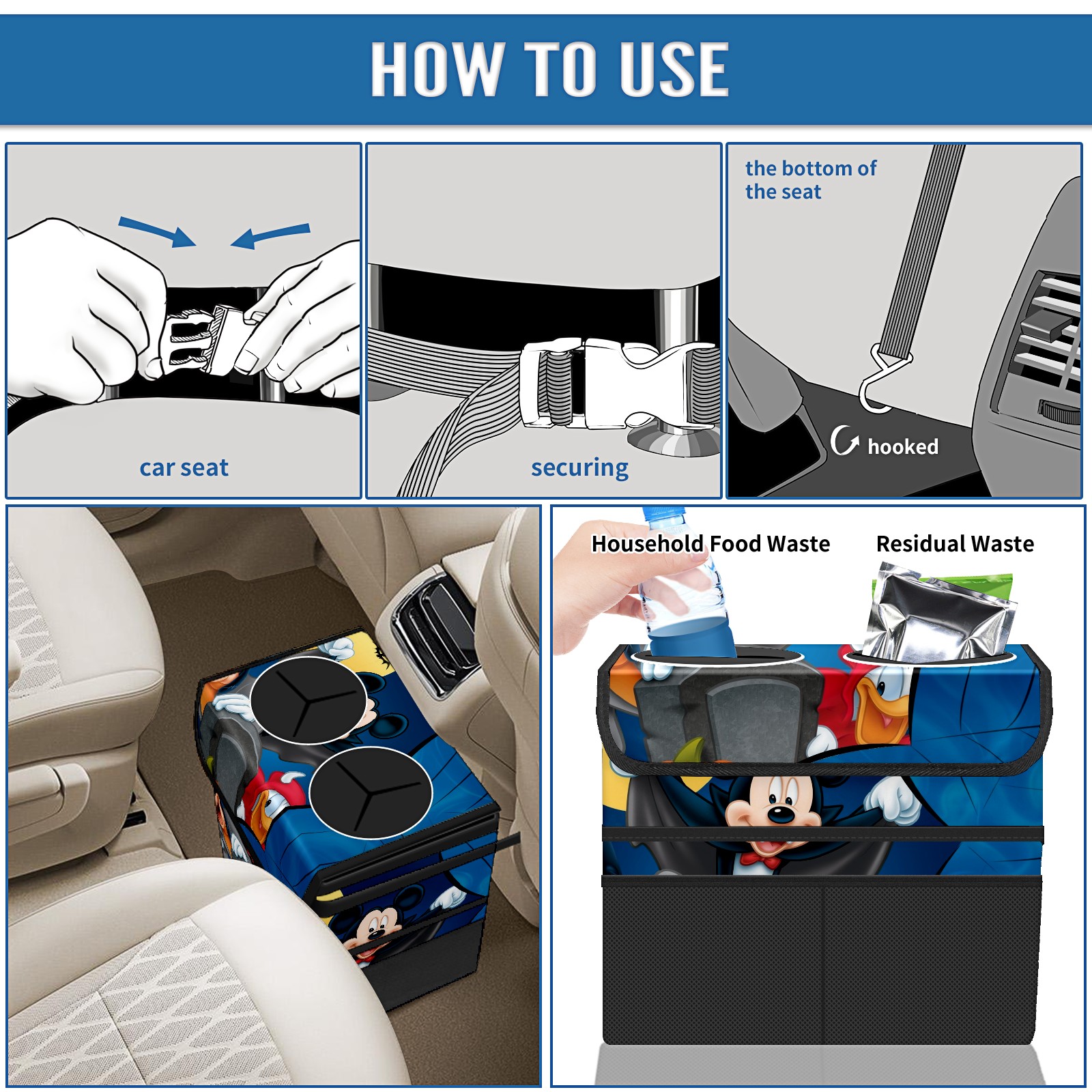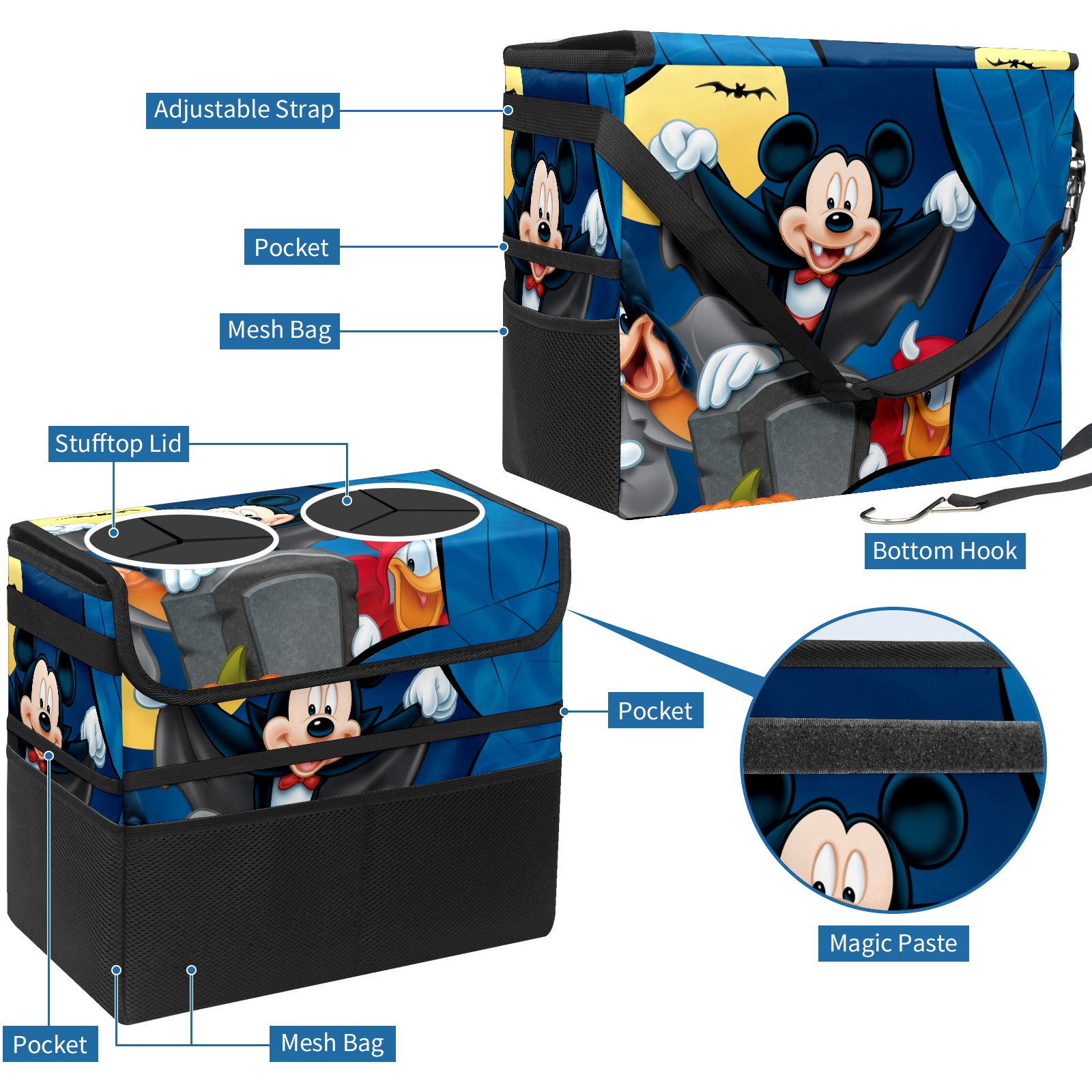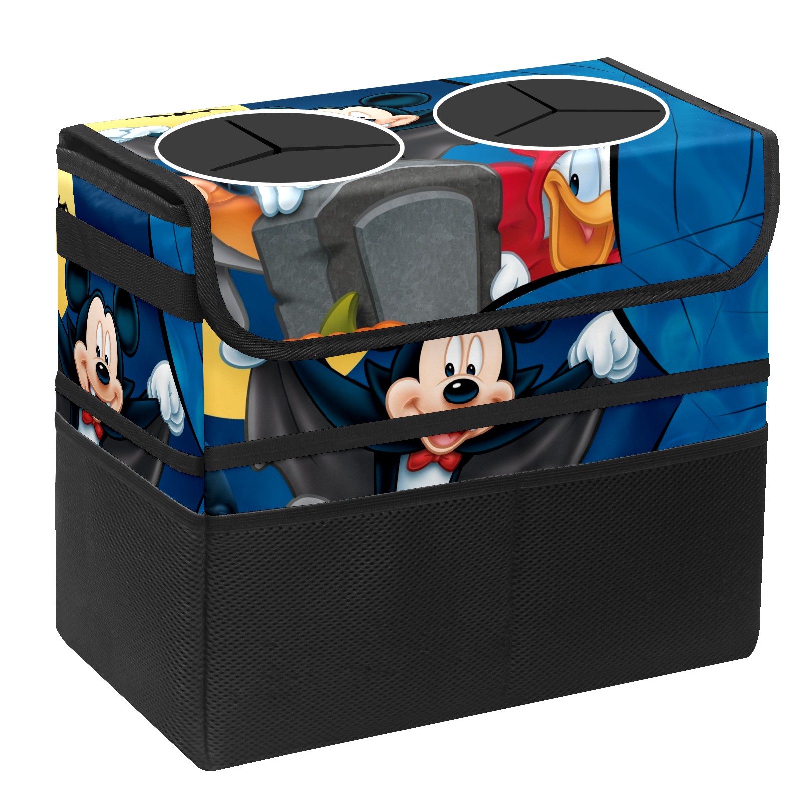 Car Trash Can with Lid, Portable Hanging Automotive Garbage Bin for Vehicles, Leakproof Waste Bag Container for SUV Truck Van Interior Auto Travel Road Trips(Halloween Mickey Mouse)