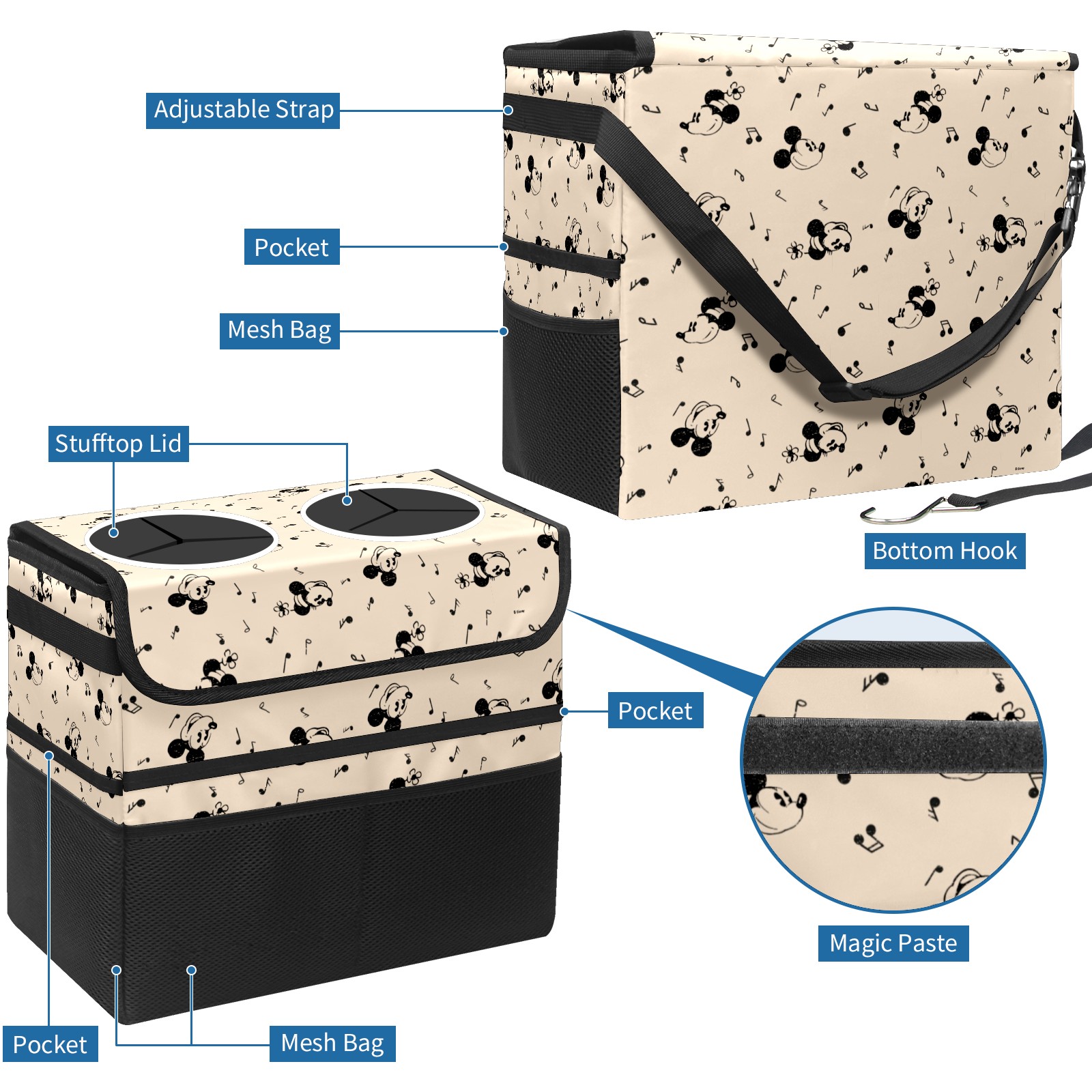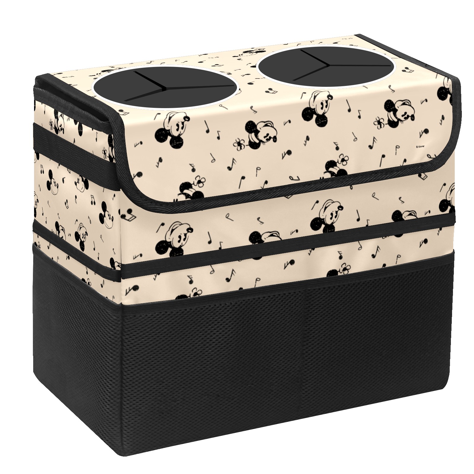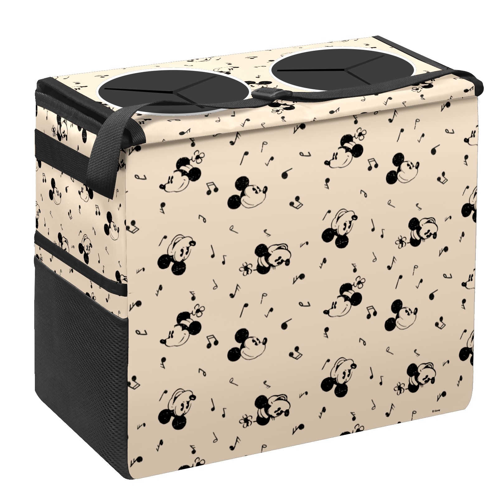 Car Trash Can with Lid, Portable Hanging Automotive Garbage Bin for Vehicles, Leakproof Waste Bag Container for SUV Truck Van Interior Auto Travel Road Trips(Vintage Mickey Minnie Music Pattern)