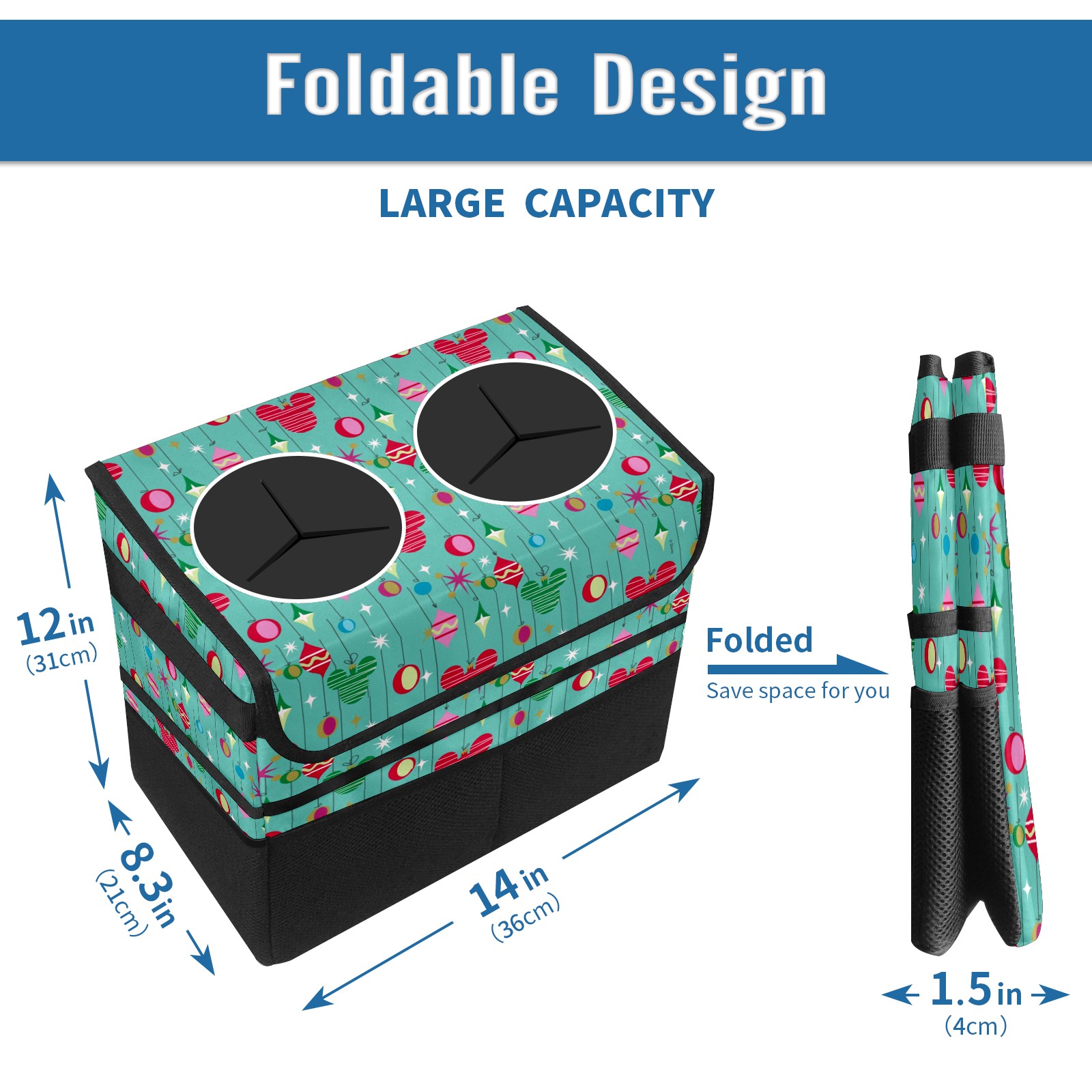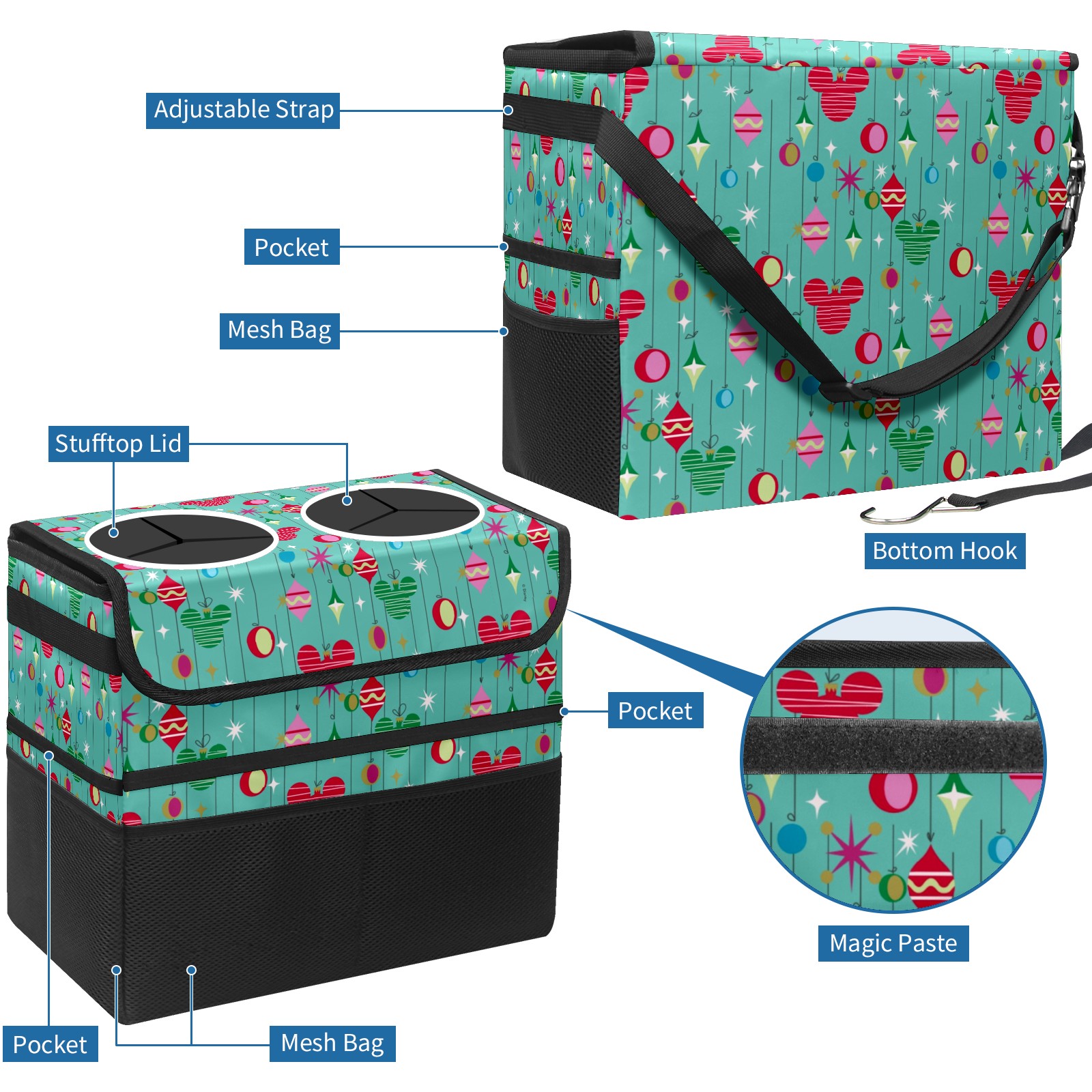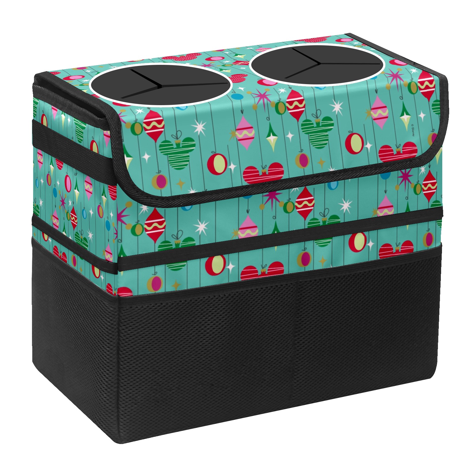 Car Trash Can with Lid, Portable Hanging Automotive Garbage Bin for Vehicles, Leakproof Waste Bag Container for SUV Truck Van Interior Auto Travel Road Trips(Merry Christmas Mickey Mouse Retro)