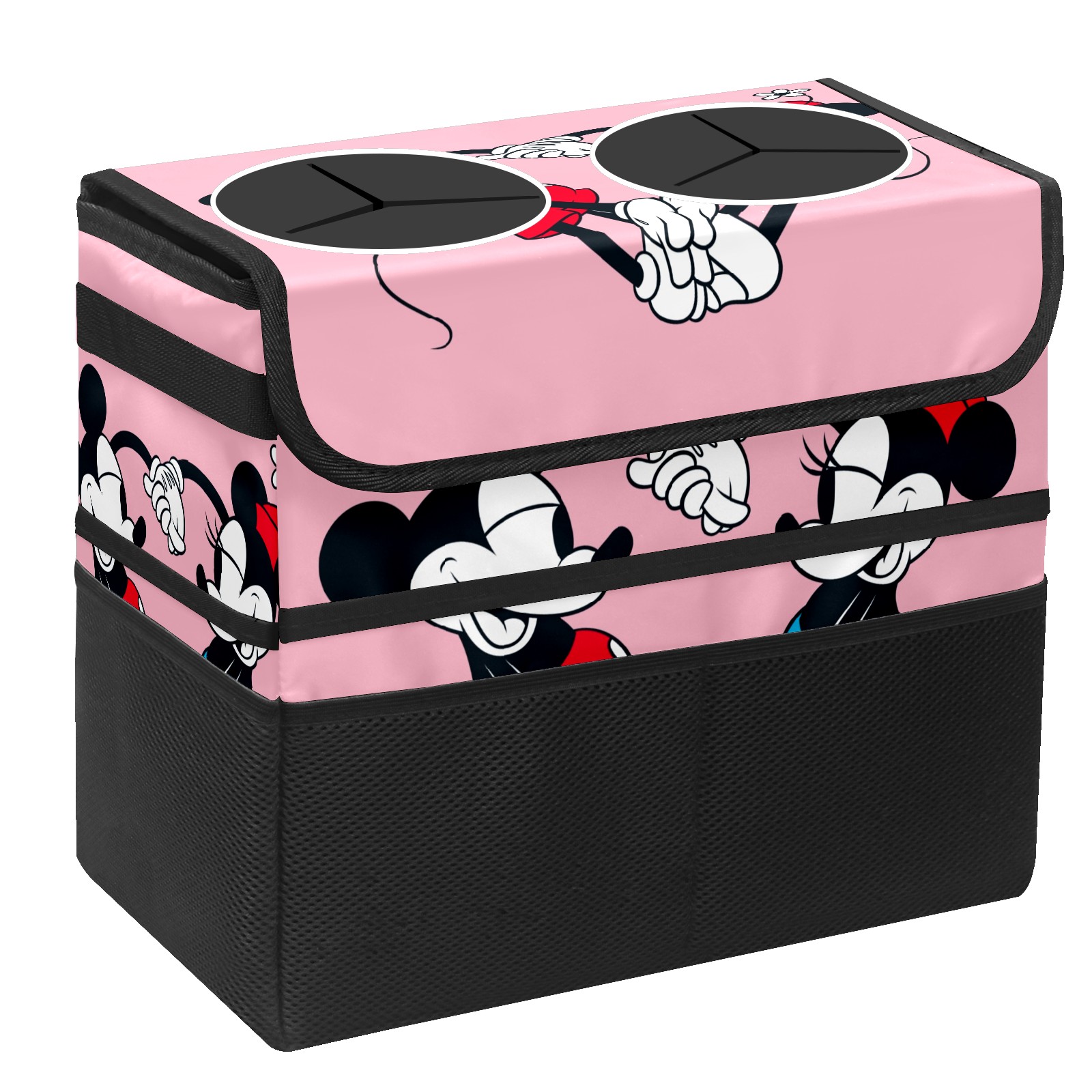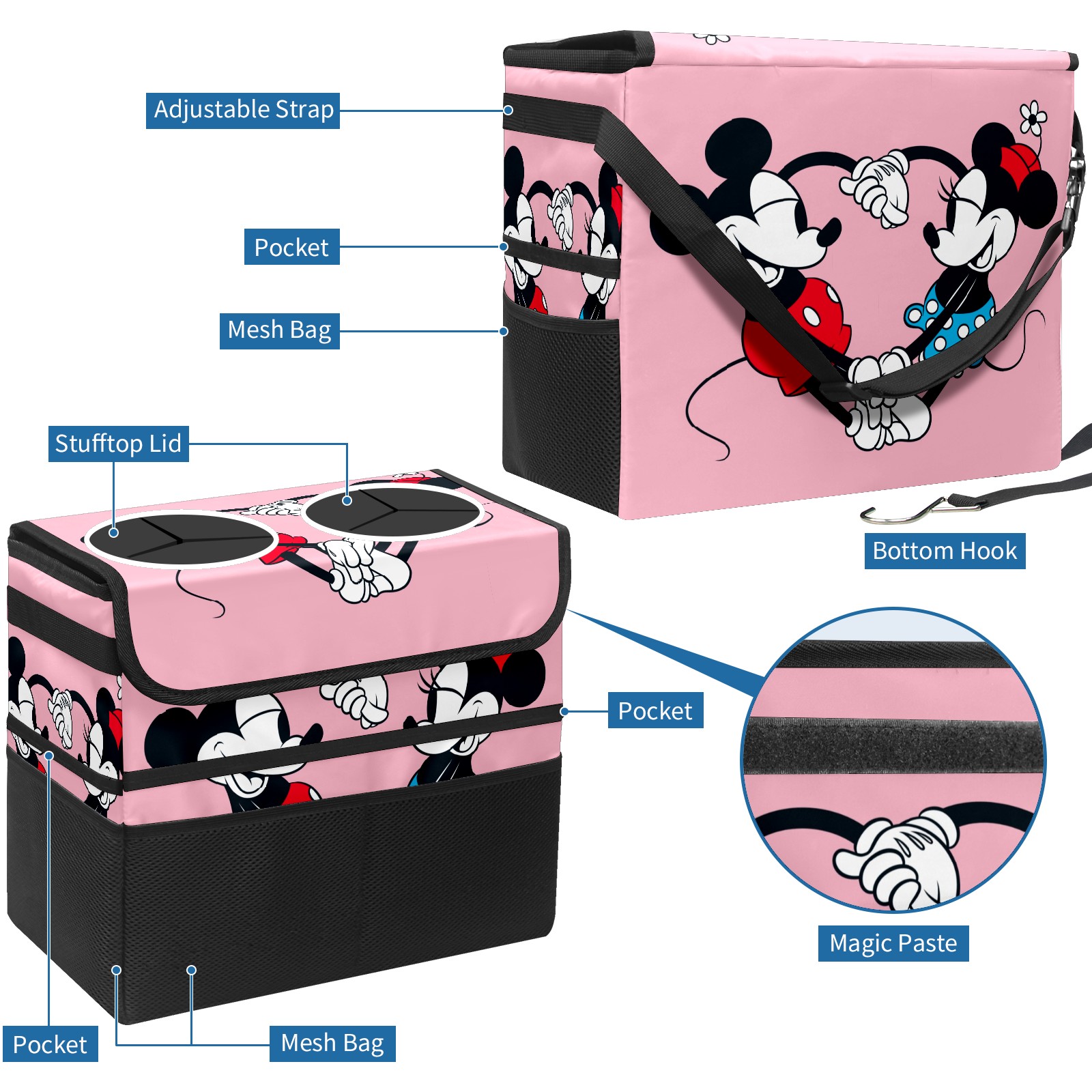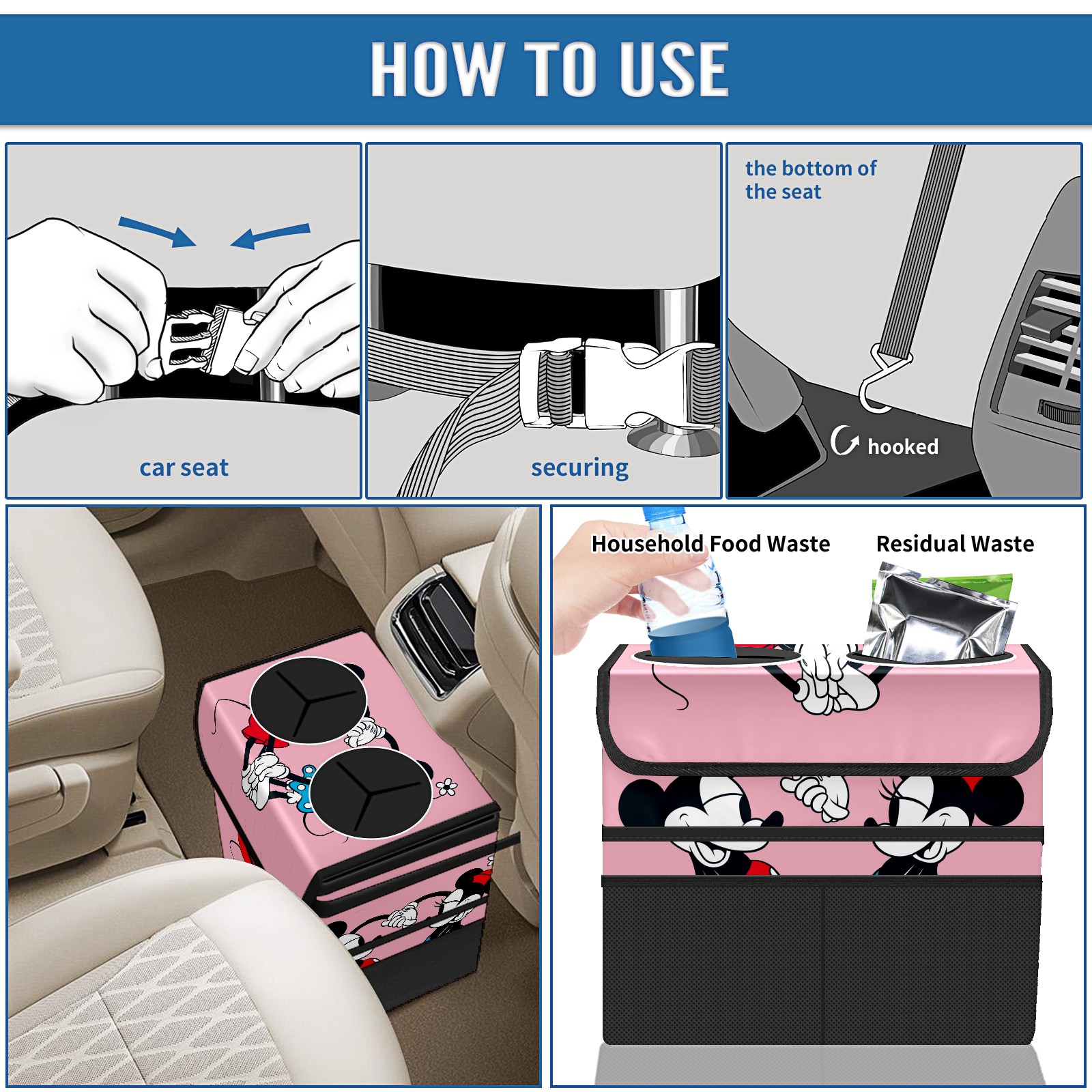 Car Trash Can with Lid, Portable Hanging Automotive Garbage Bin for Vehicles, Leakproof Waste Bag Container for SUV Truck Van Interior Auto Travel Road Trips(Mickey Mouse And Minnie Valentine's Day)