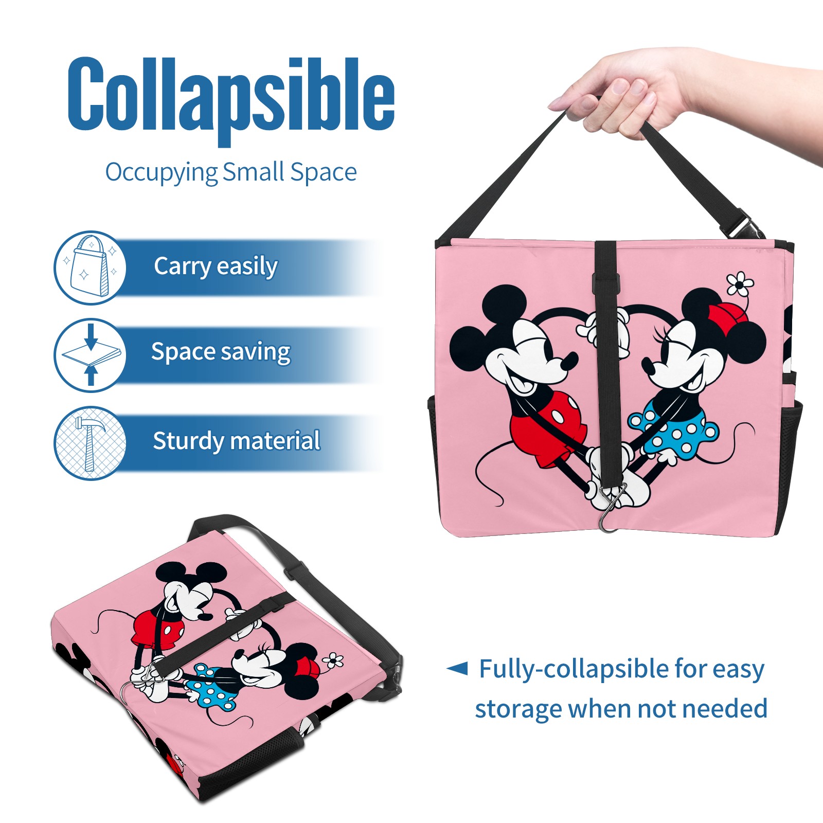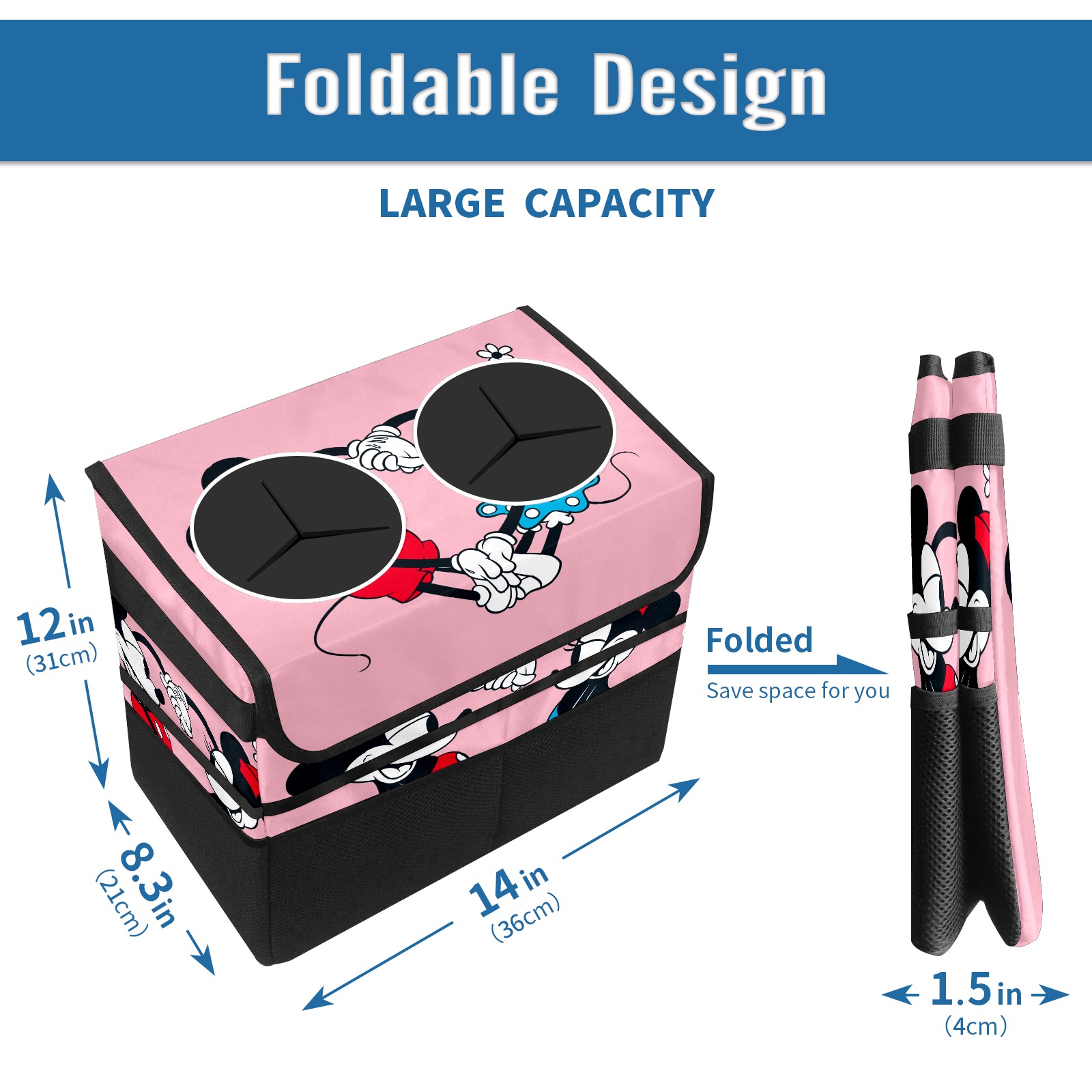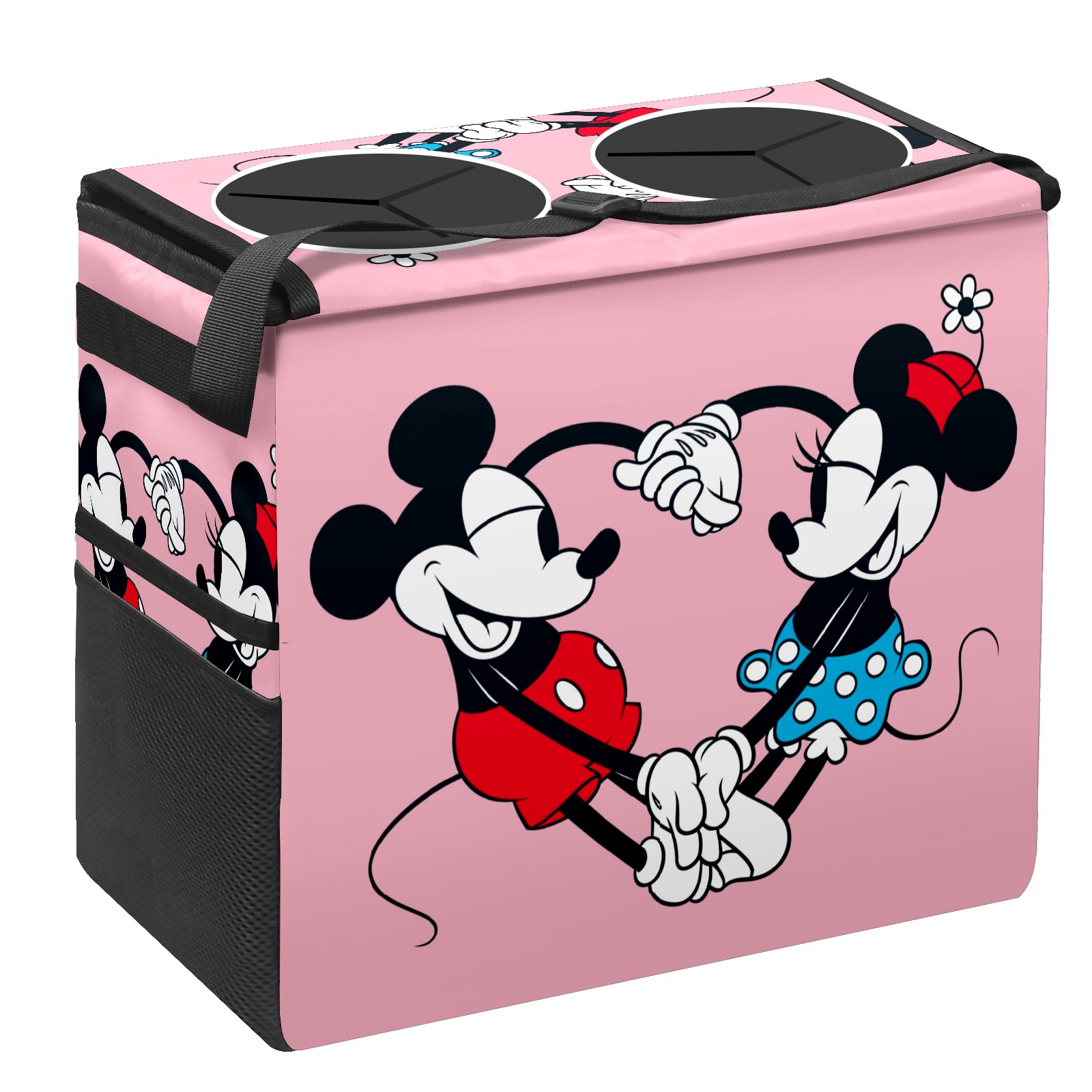 Car Trash Can with Lid, Portable Hanging Automotive Garbage Bin for Vehicles, Leakproof Waste Bag Container for SUV Truck Van Interior Auto Travel Road Trips(Mickey Mouse And Minnie Valentine's Day)