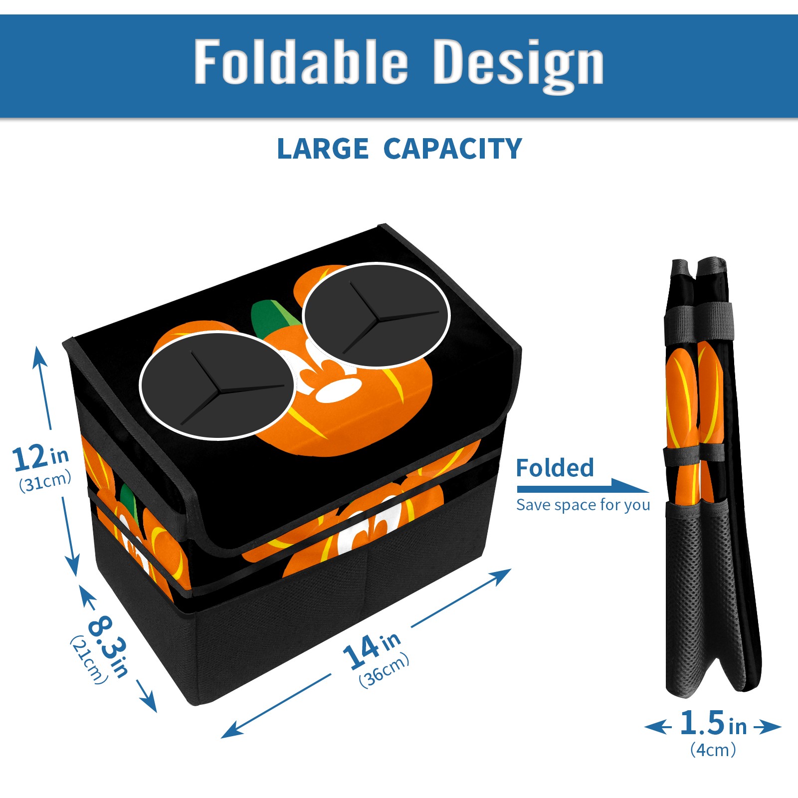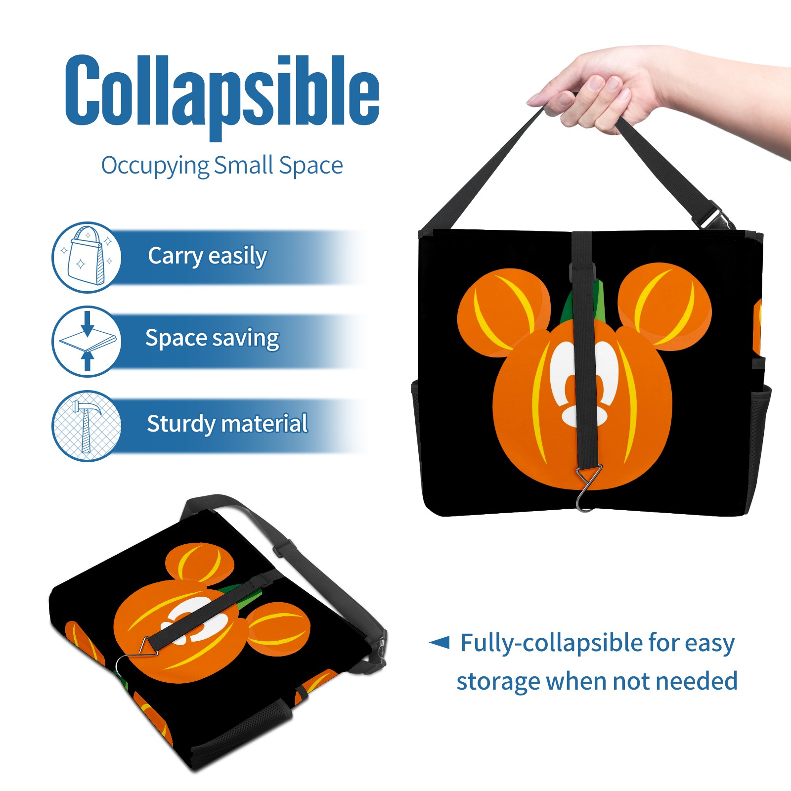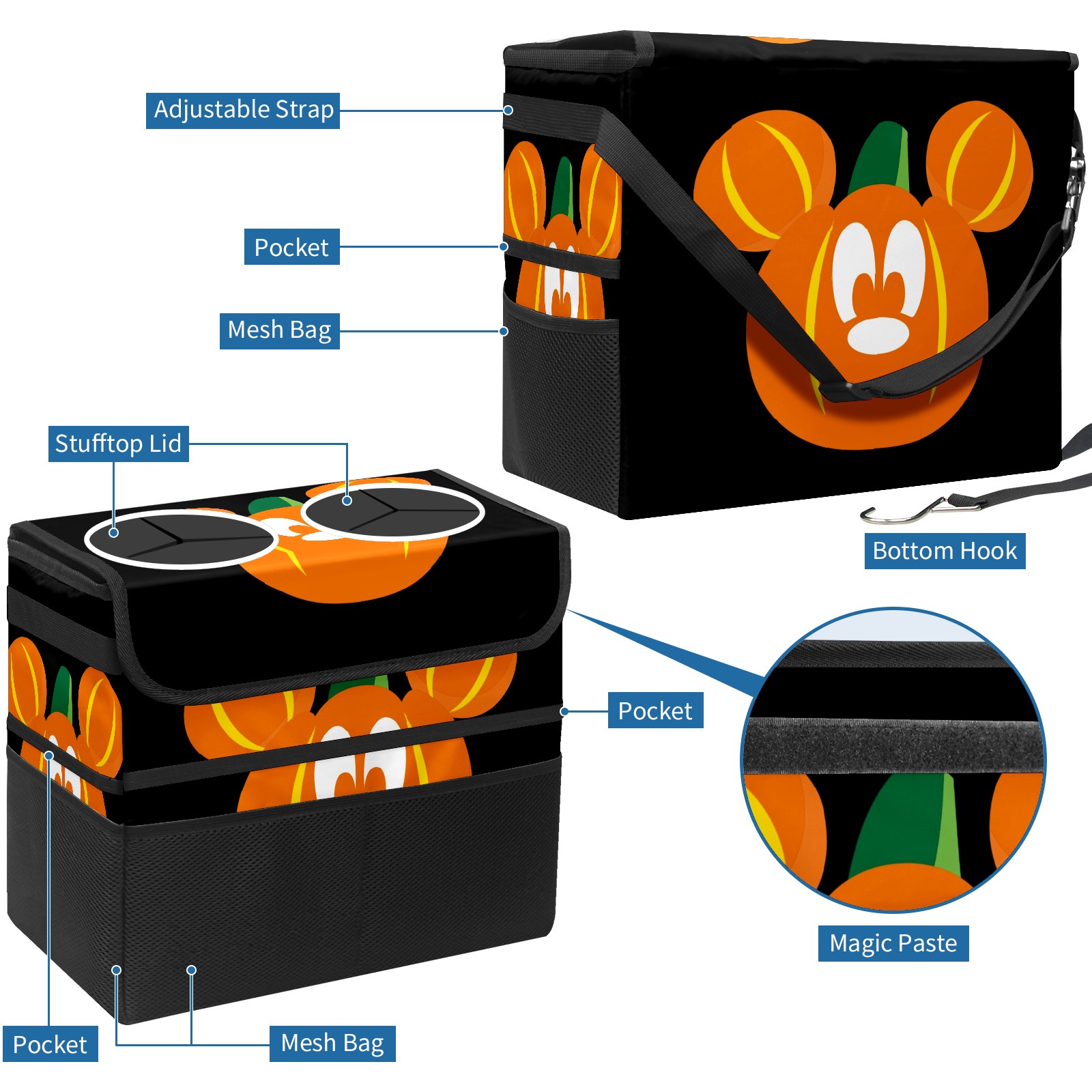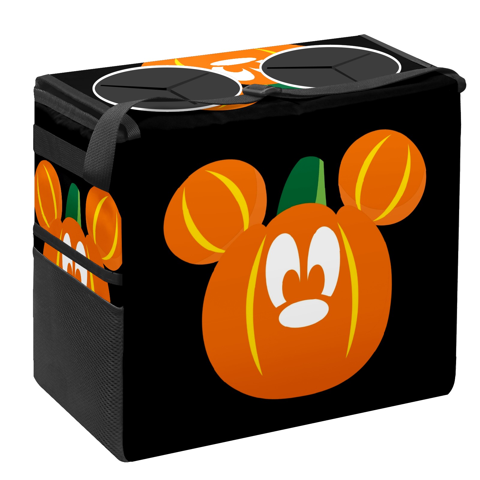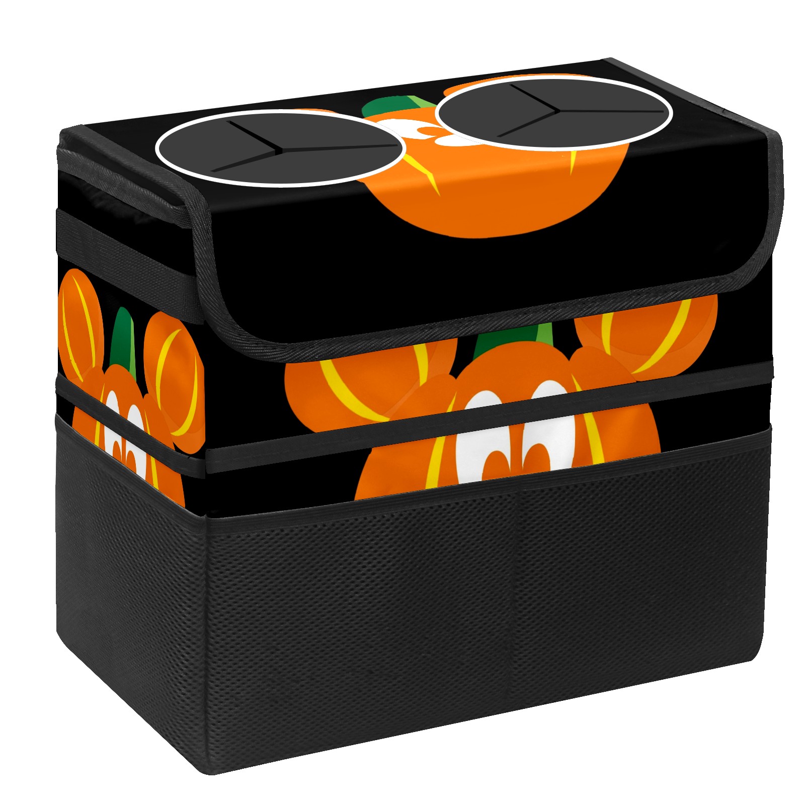 Car Trash Can with Lid, Portable Hanging Automotive Garbage Bin for Vehicles, Leakproof Waste Bag Container for SUV Truck Van Interior Auto Travel Road Trips(Mickey Mouse Pumpkin)