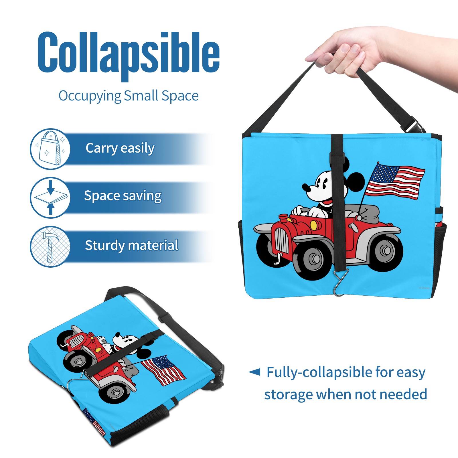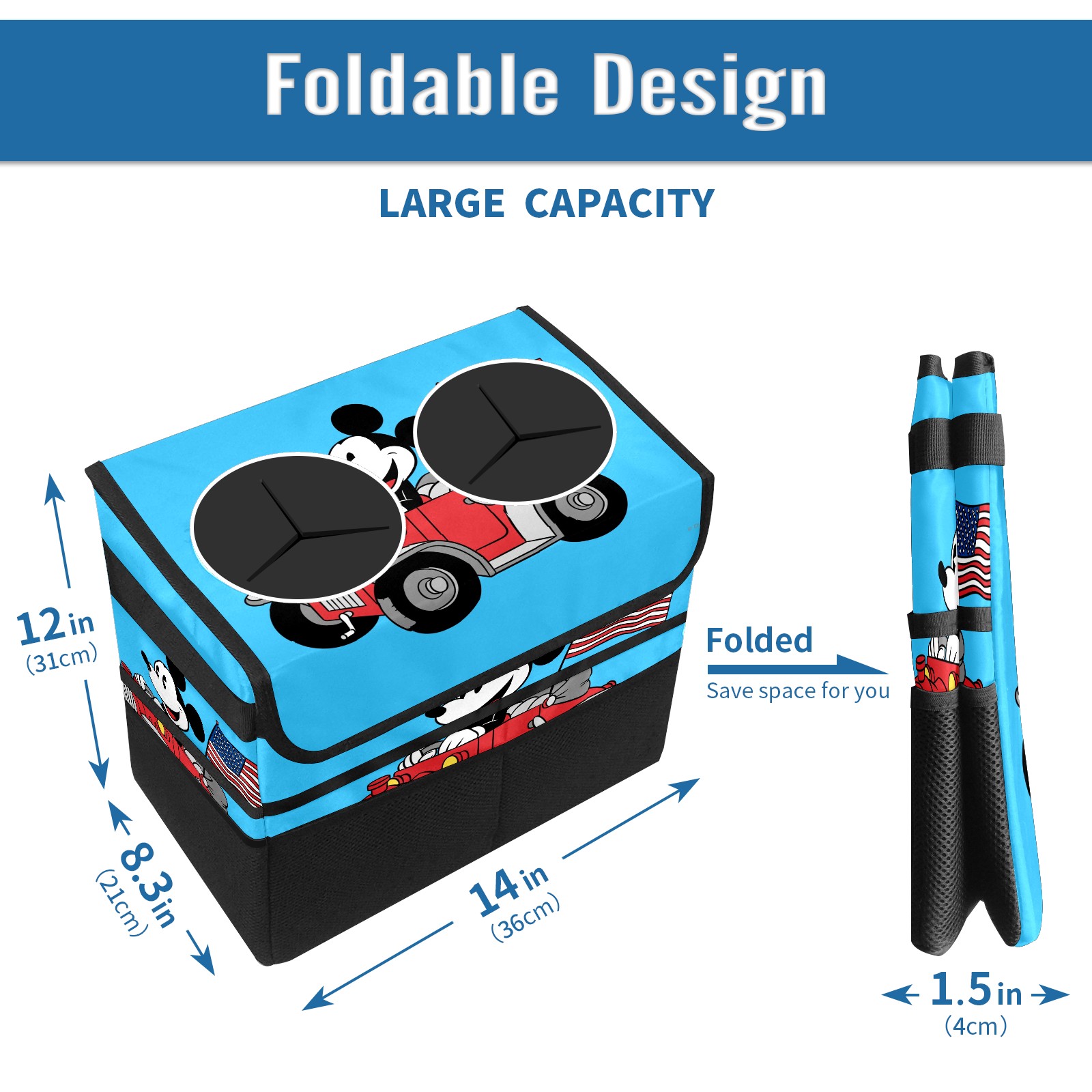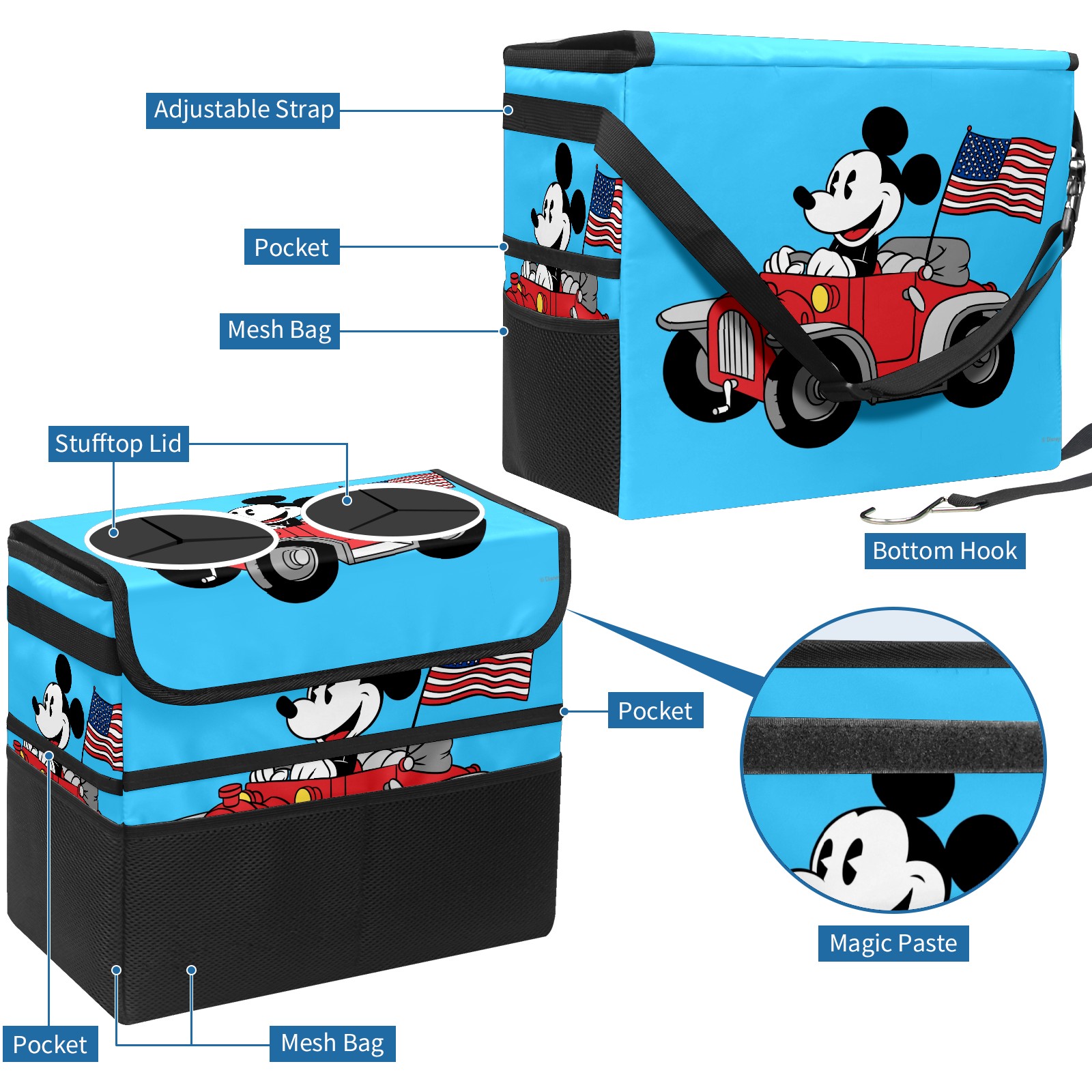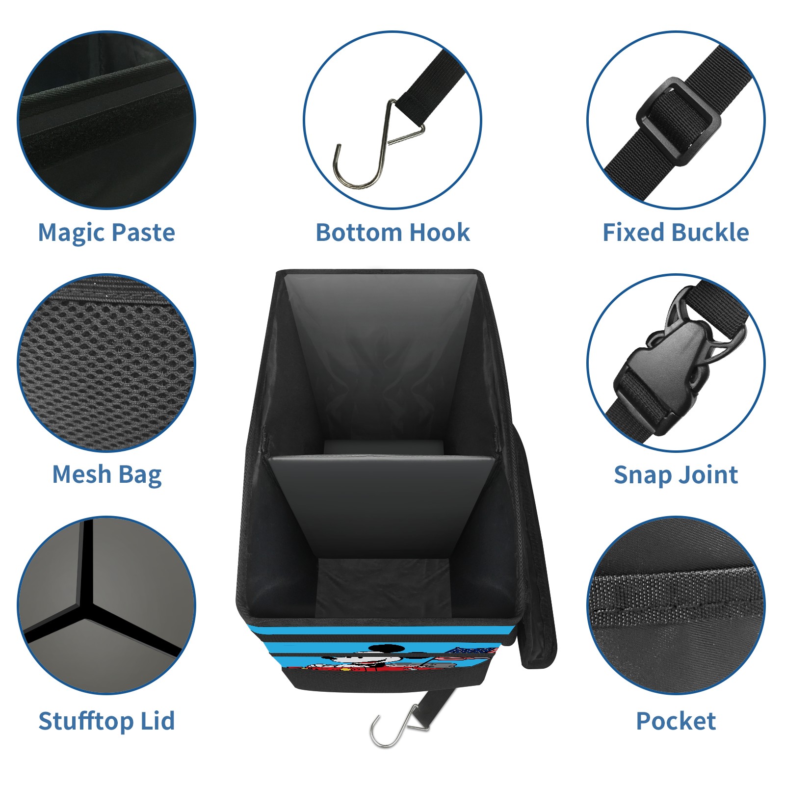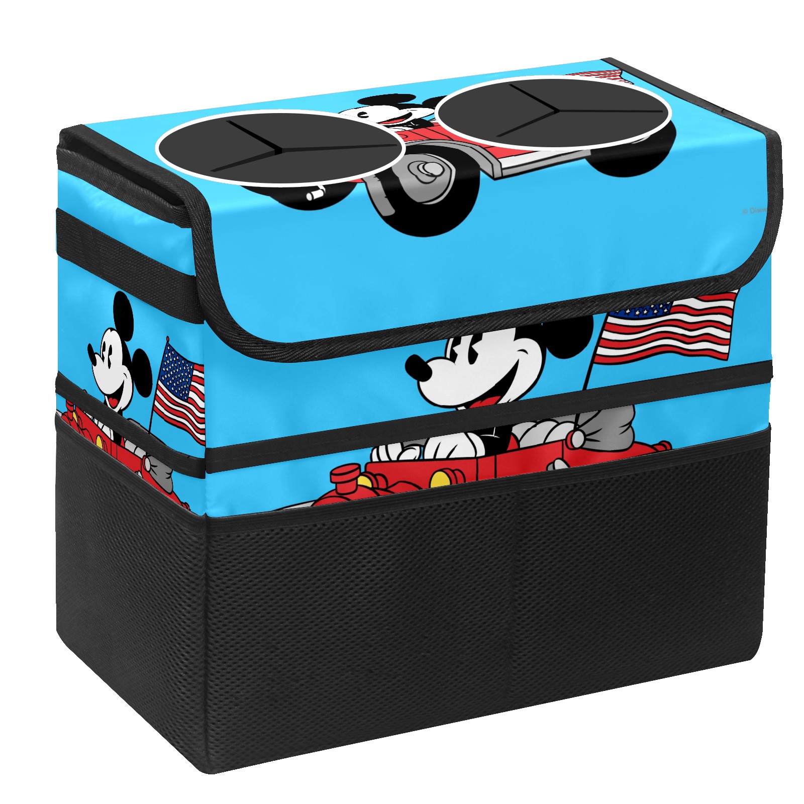 Car Trash Can with Lid, Portable Hanging Automotive Garbage Bin for Vehicles, Leakproof Waste Bag Container for SUV Truck Van Interior Auto Travel Road Trips(Holiday Mickey Mouse)