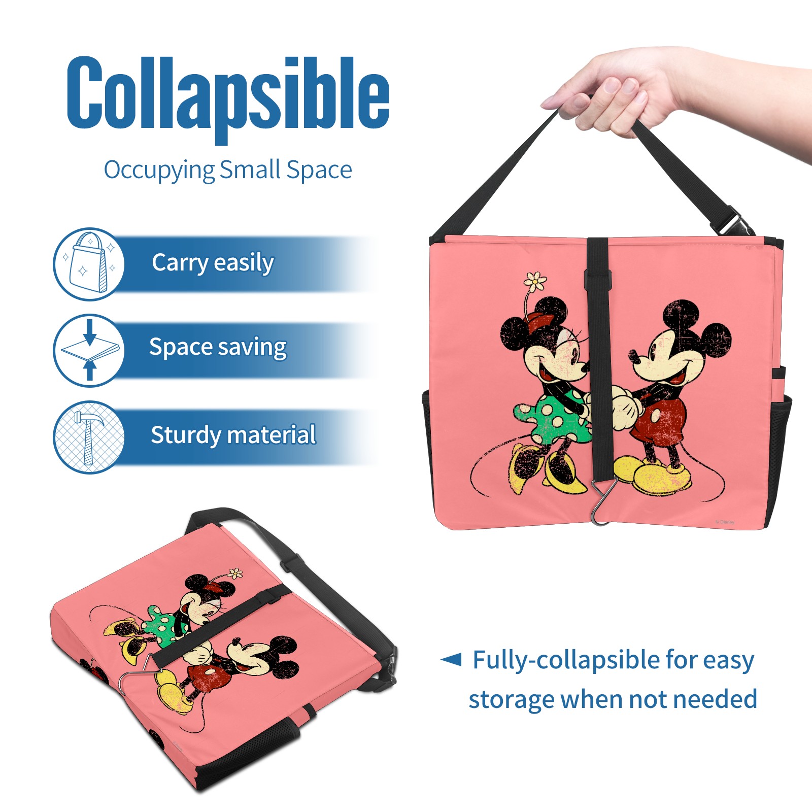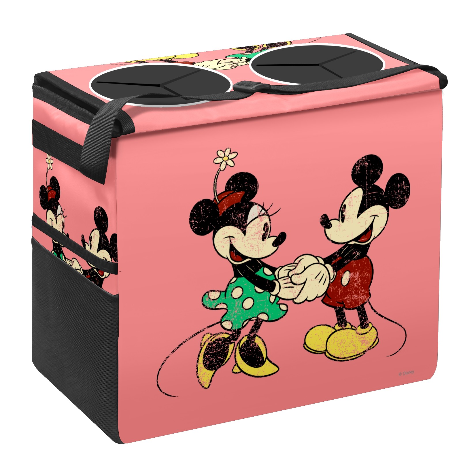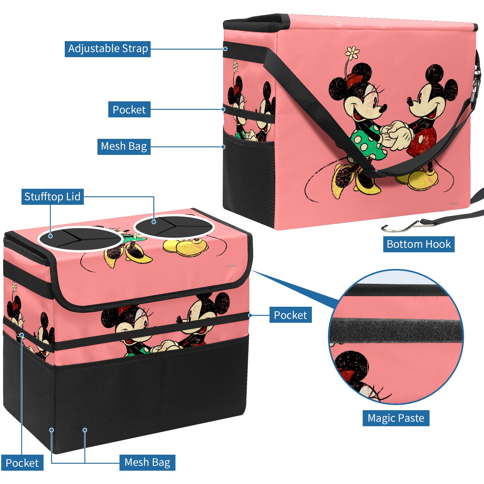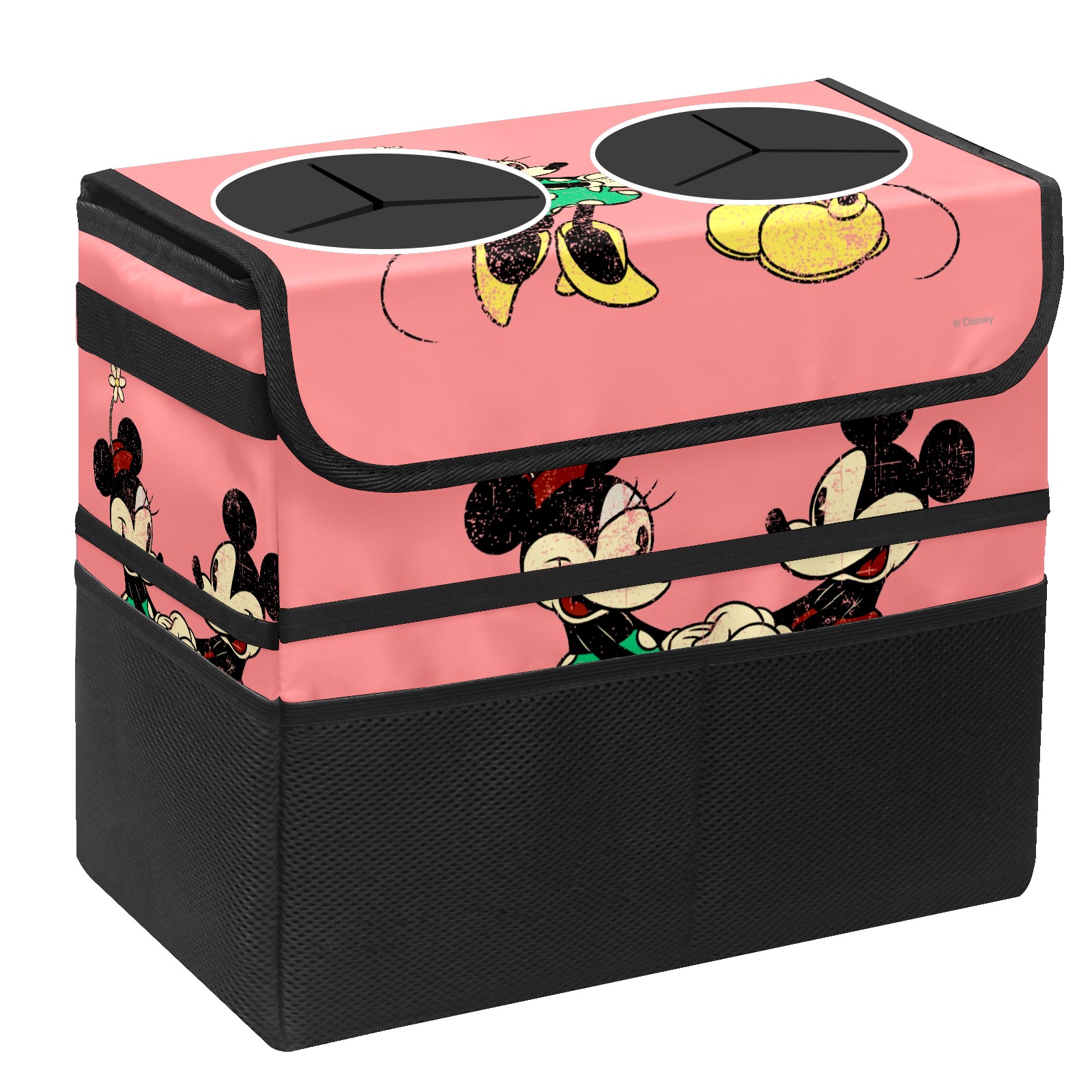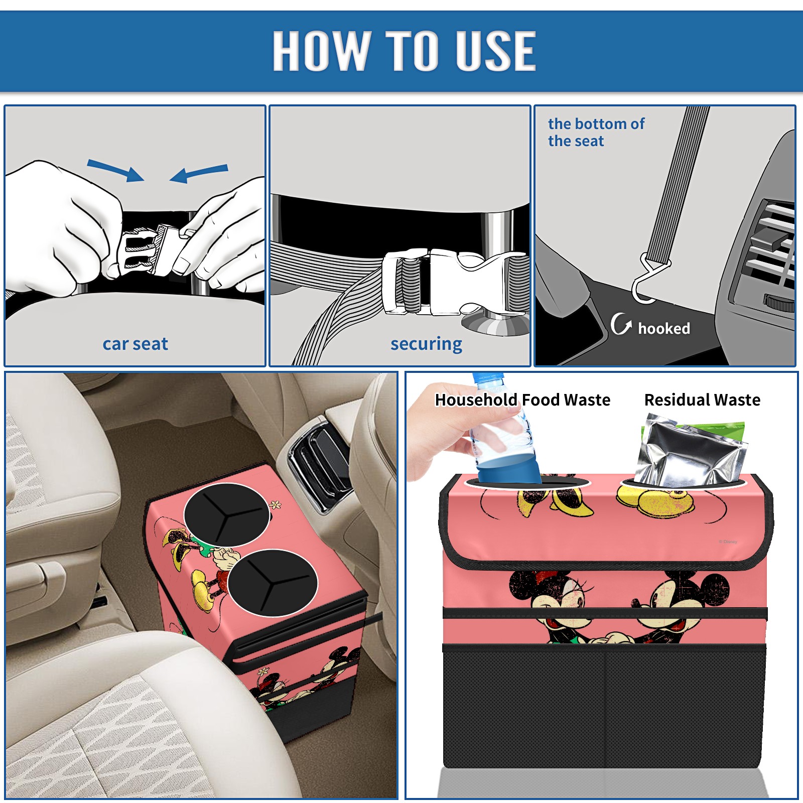 Car Trash Can with Lid, Portable Hanging Automotive Garbage Bin for Vehicles, Leakproof Waste Bag Container for SUV Truck Van Interior Auto Travel Road Trips(Pink Vintage Minnie Mickey Mouse Pattern)