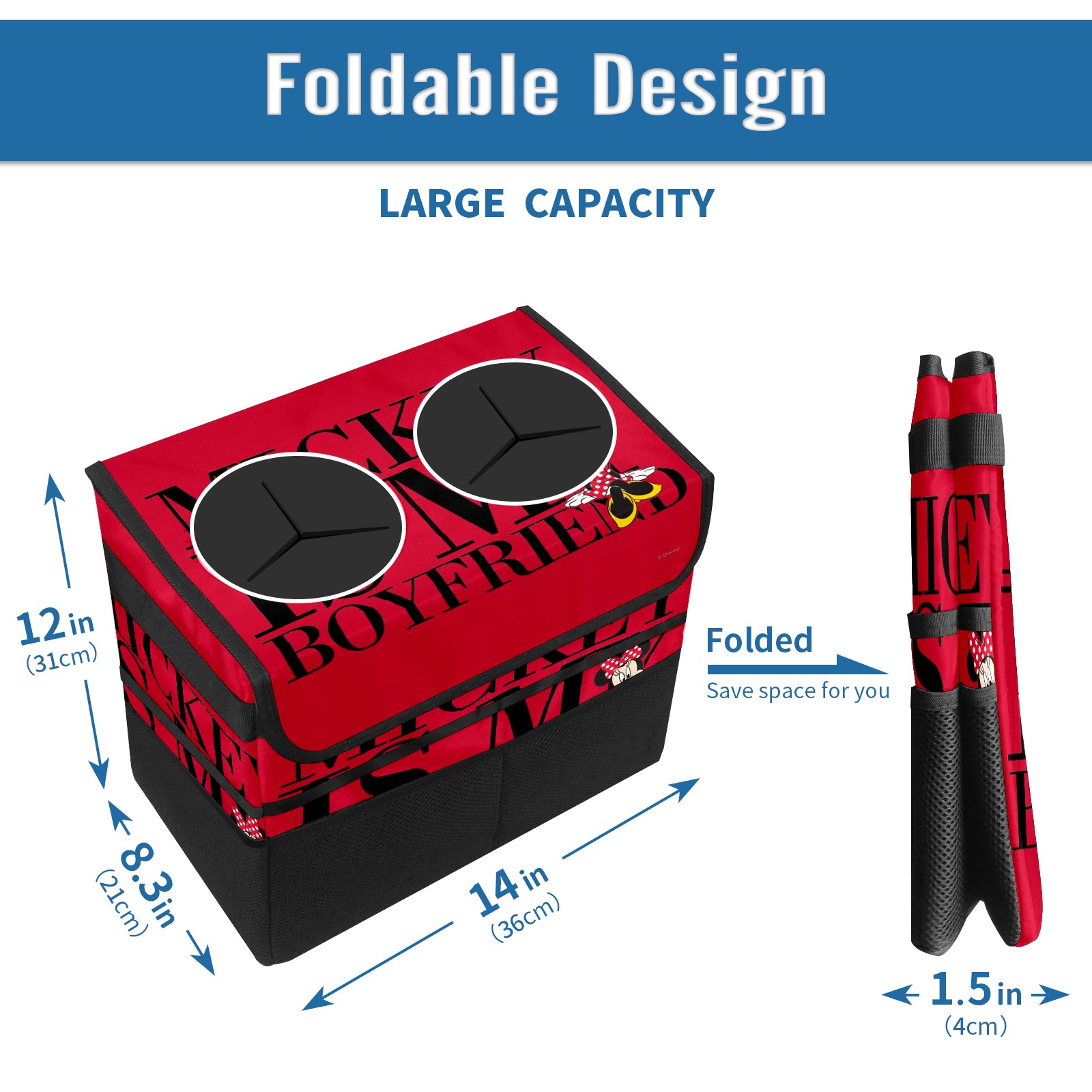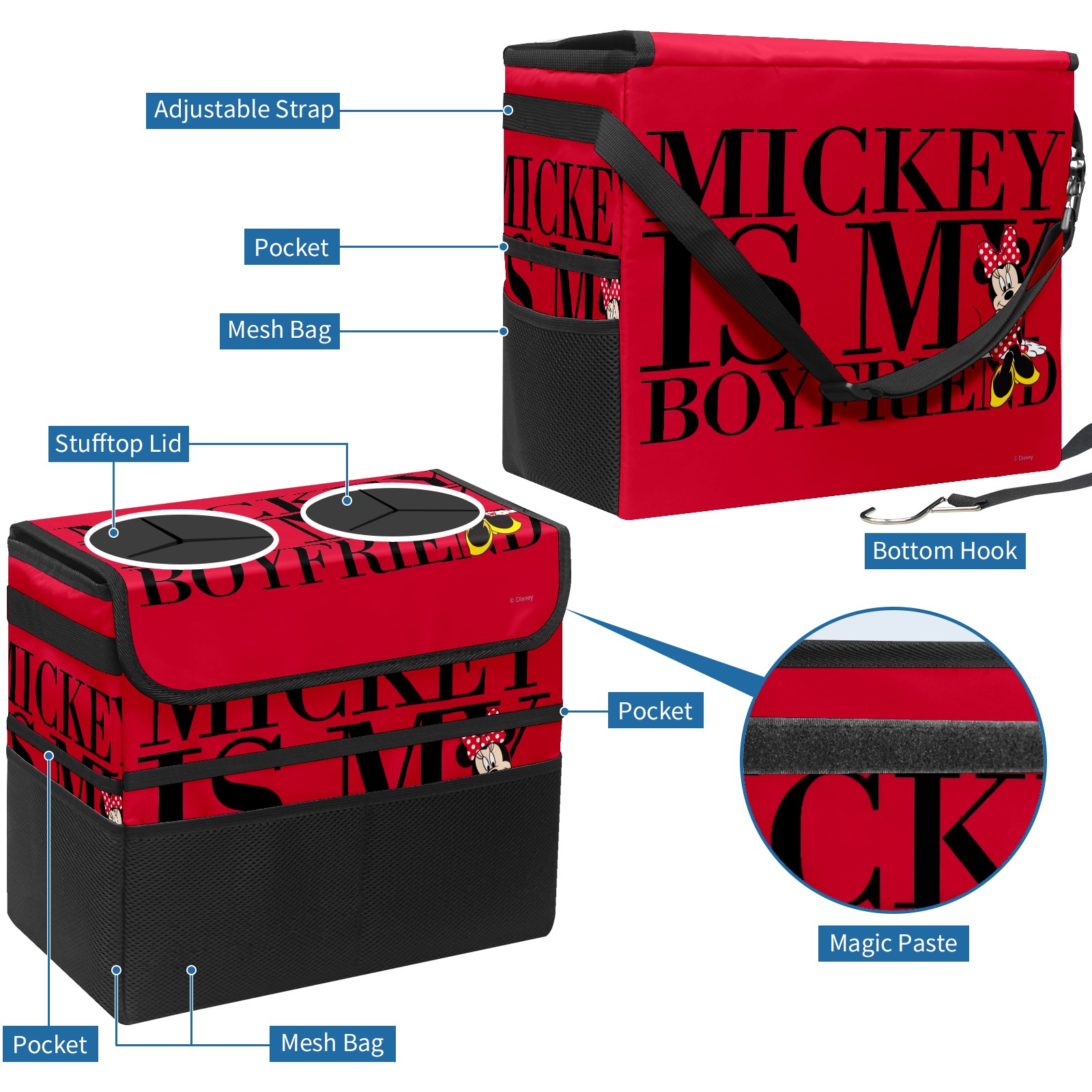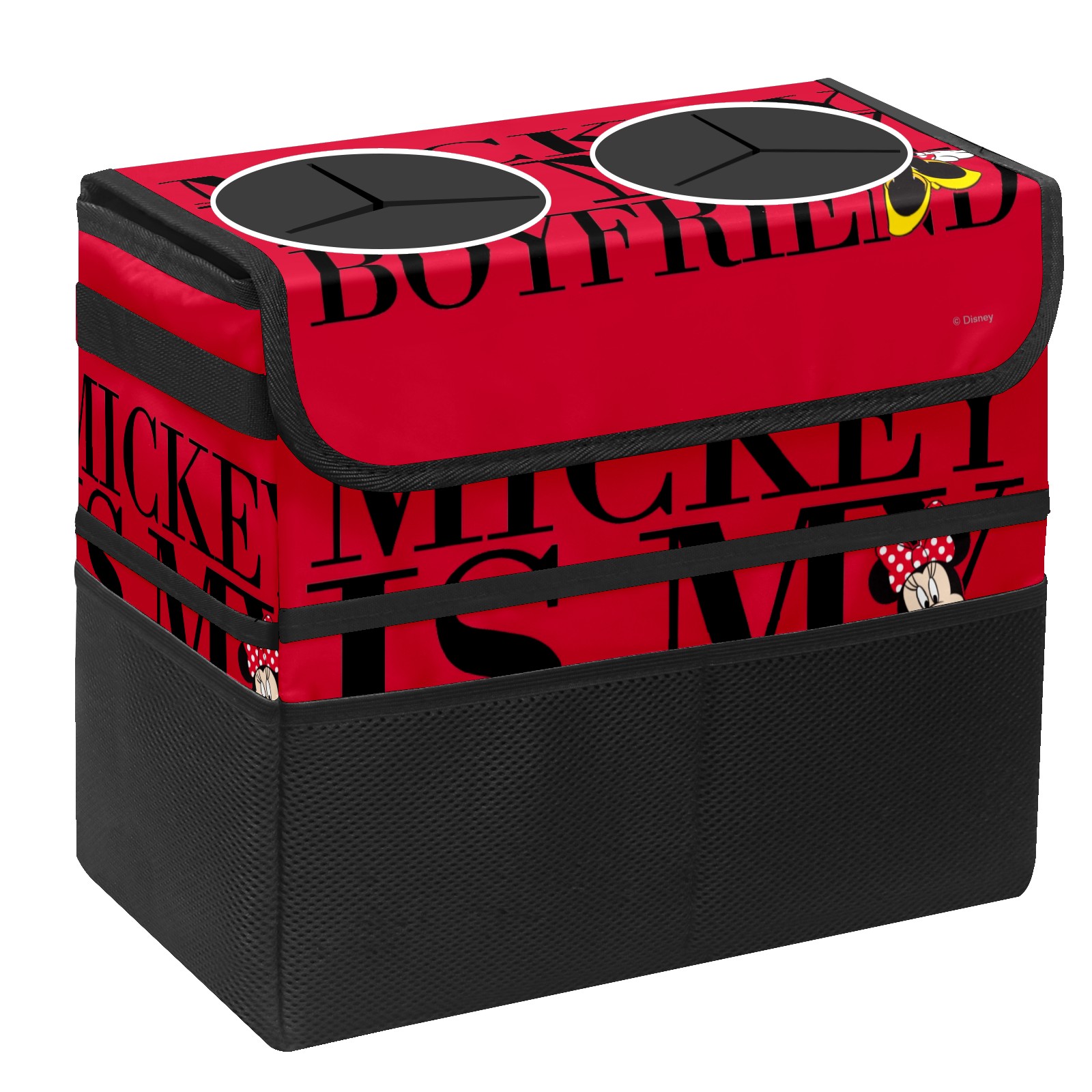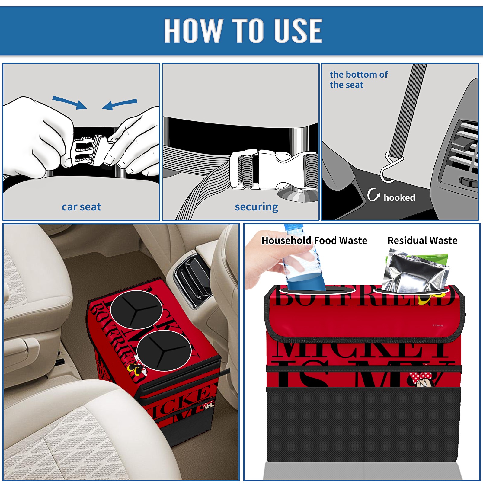 Car Trash Can with Lid, Portable Hanging Automotive Garbage Bin for Vehicles, Leakproof Waste Bag Container for SUV Truck Van Interior Auto Travel Road Trips(Red Minnie Mouse Mickey Is My Boyfriend)