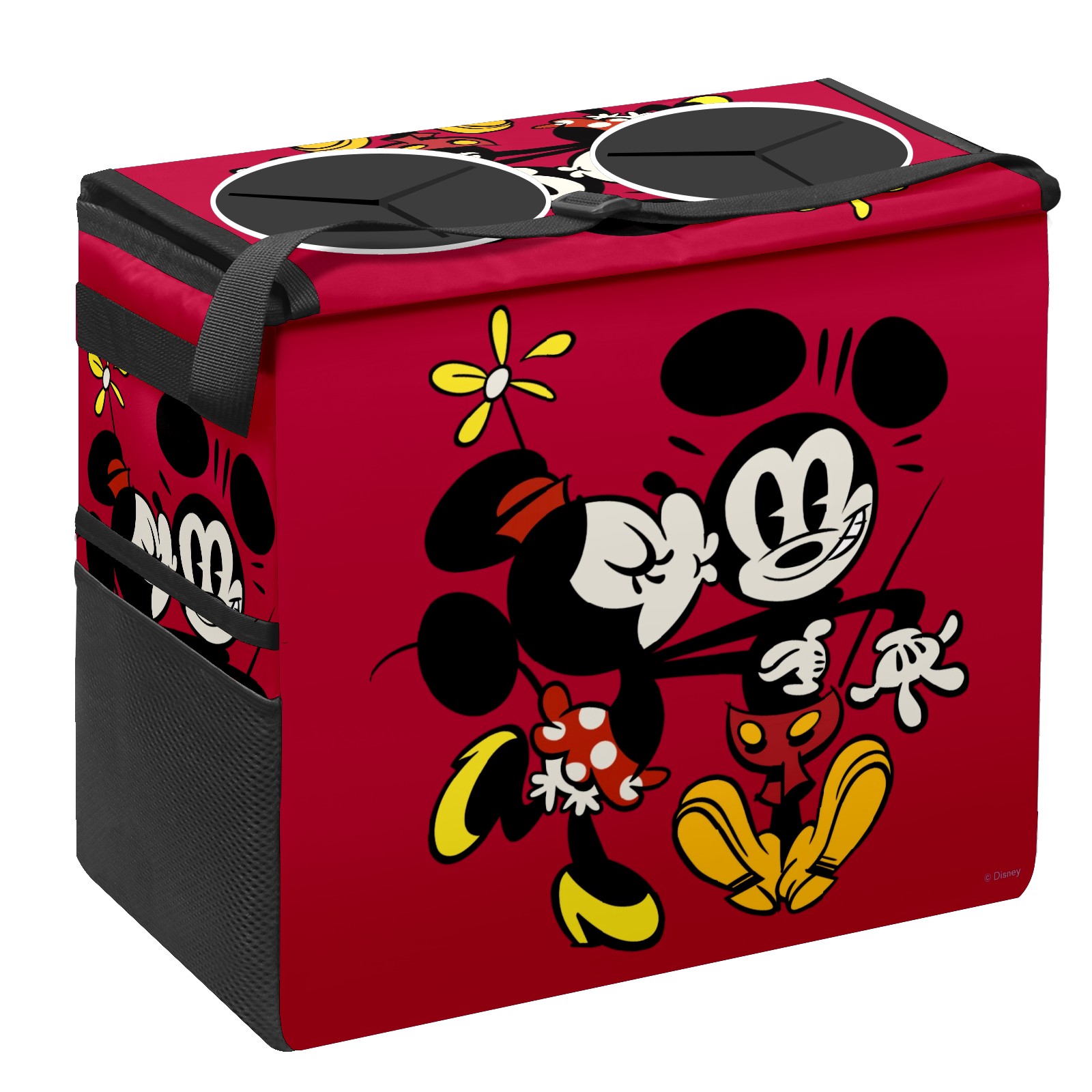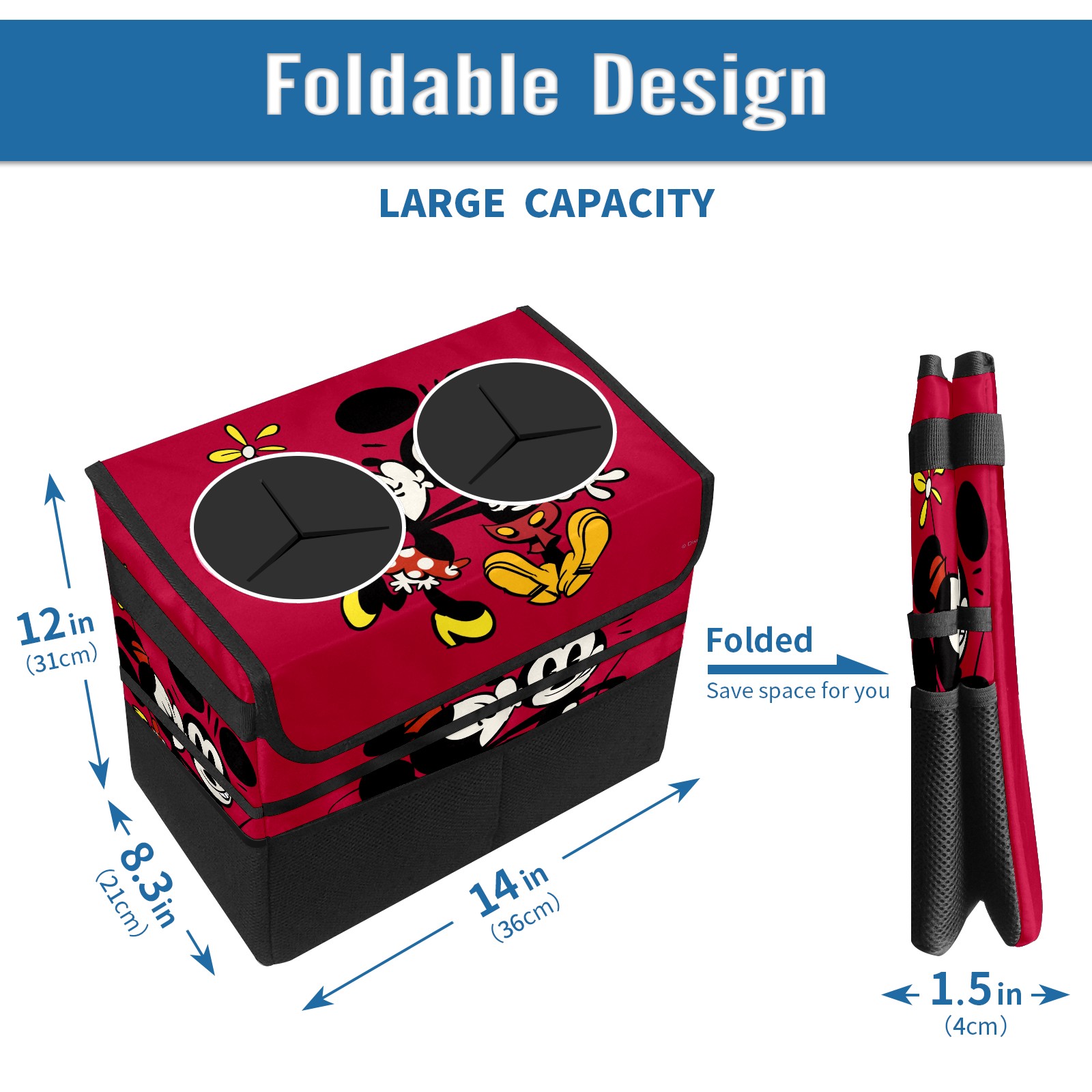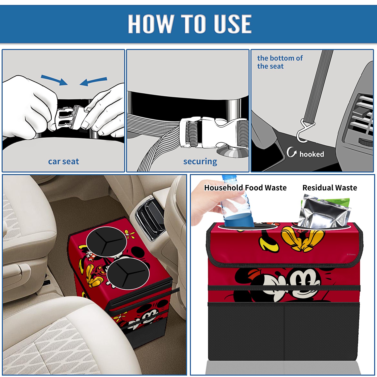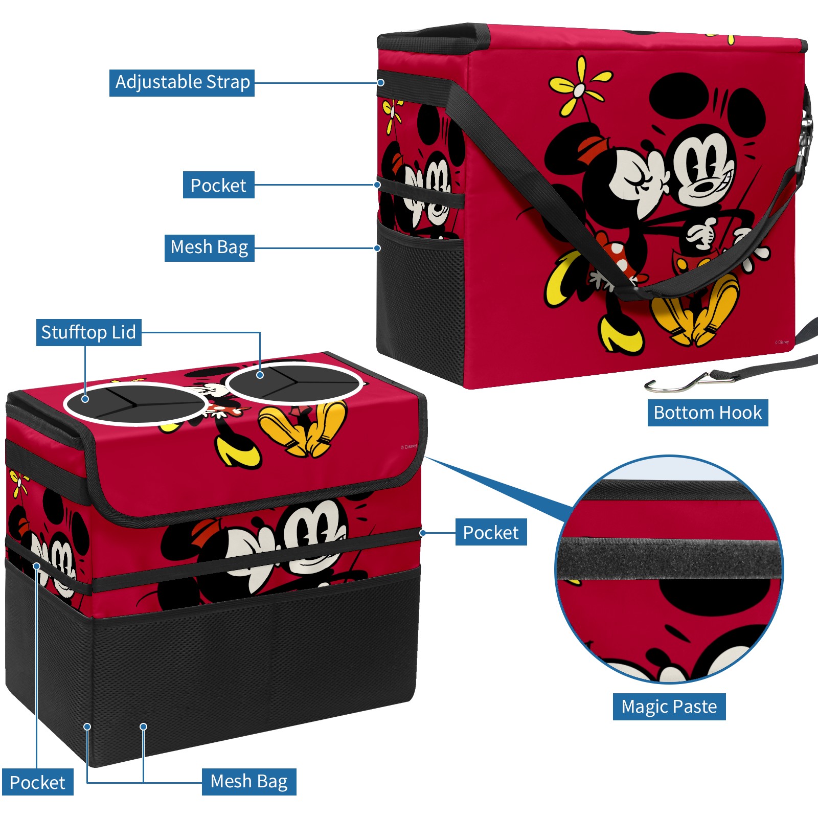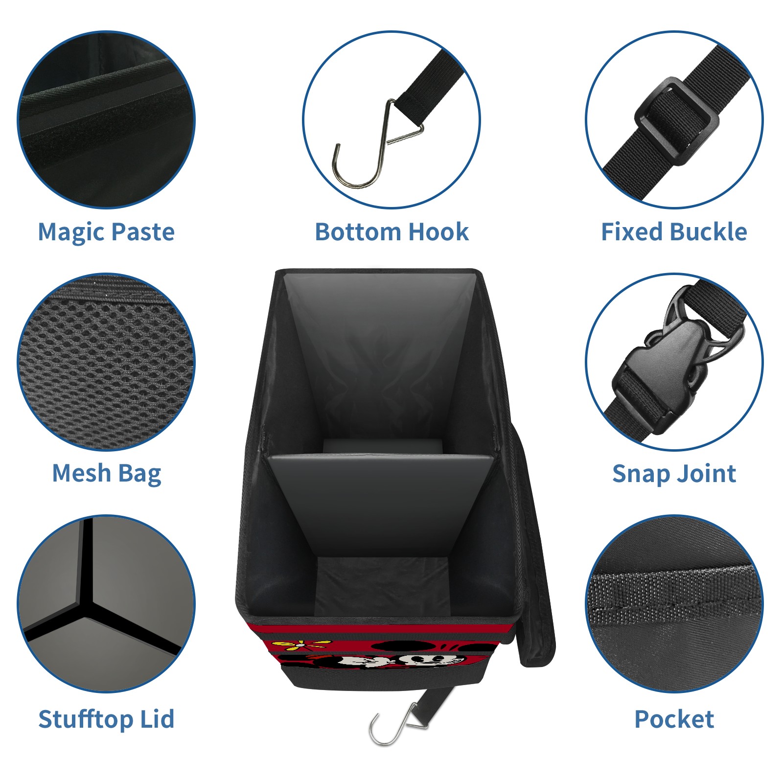 Car Trash Can with Lid, Portable Hanging Automotive Garbage Bin for Vehicles, Leakproof Waste Bag Container for SUV Truck Van Interior Auto Travel Road Trips(Minnie Kissing Mickey Mouse)