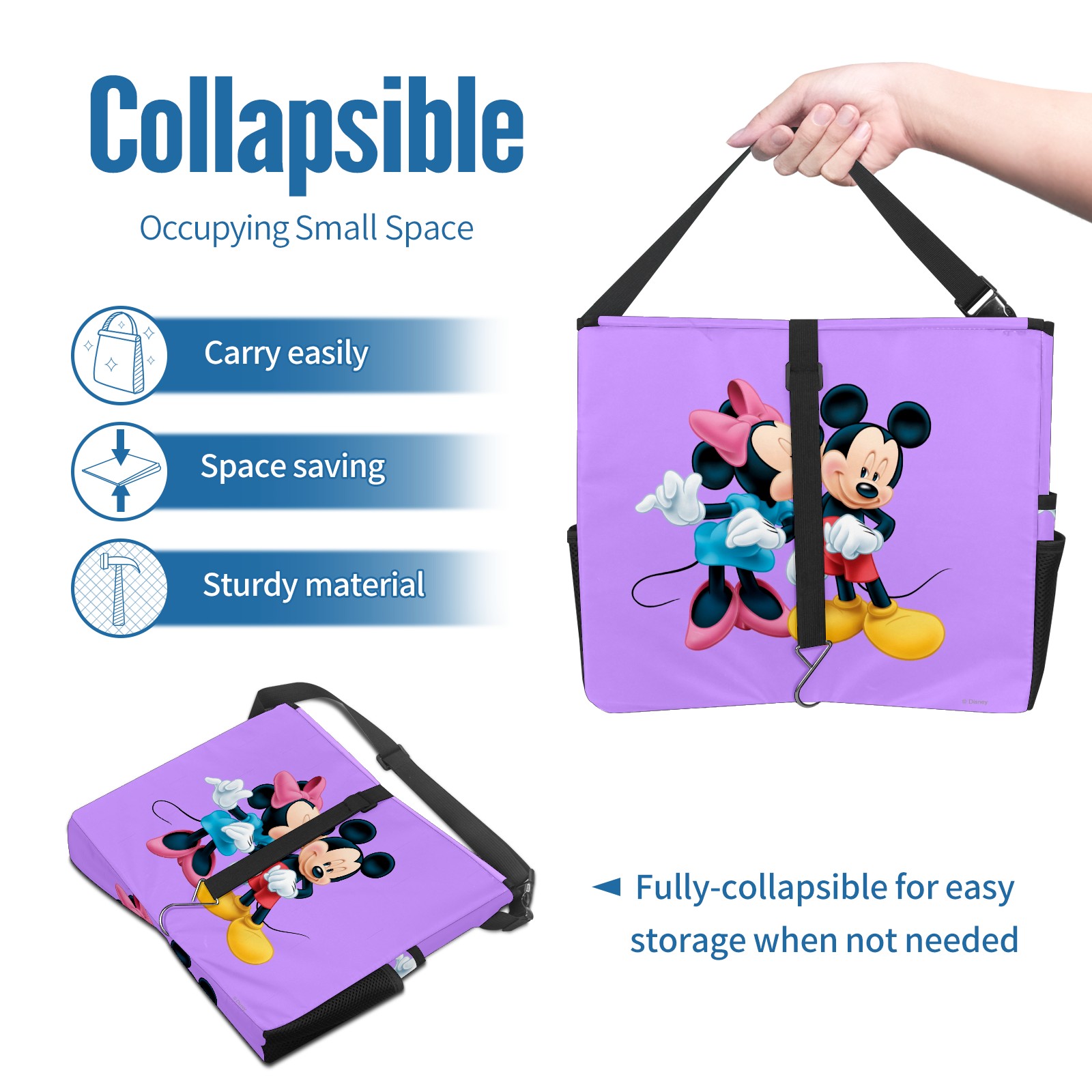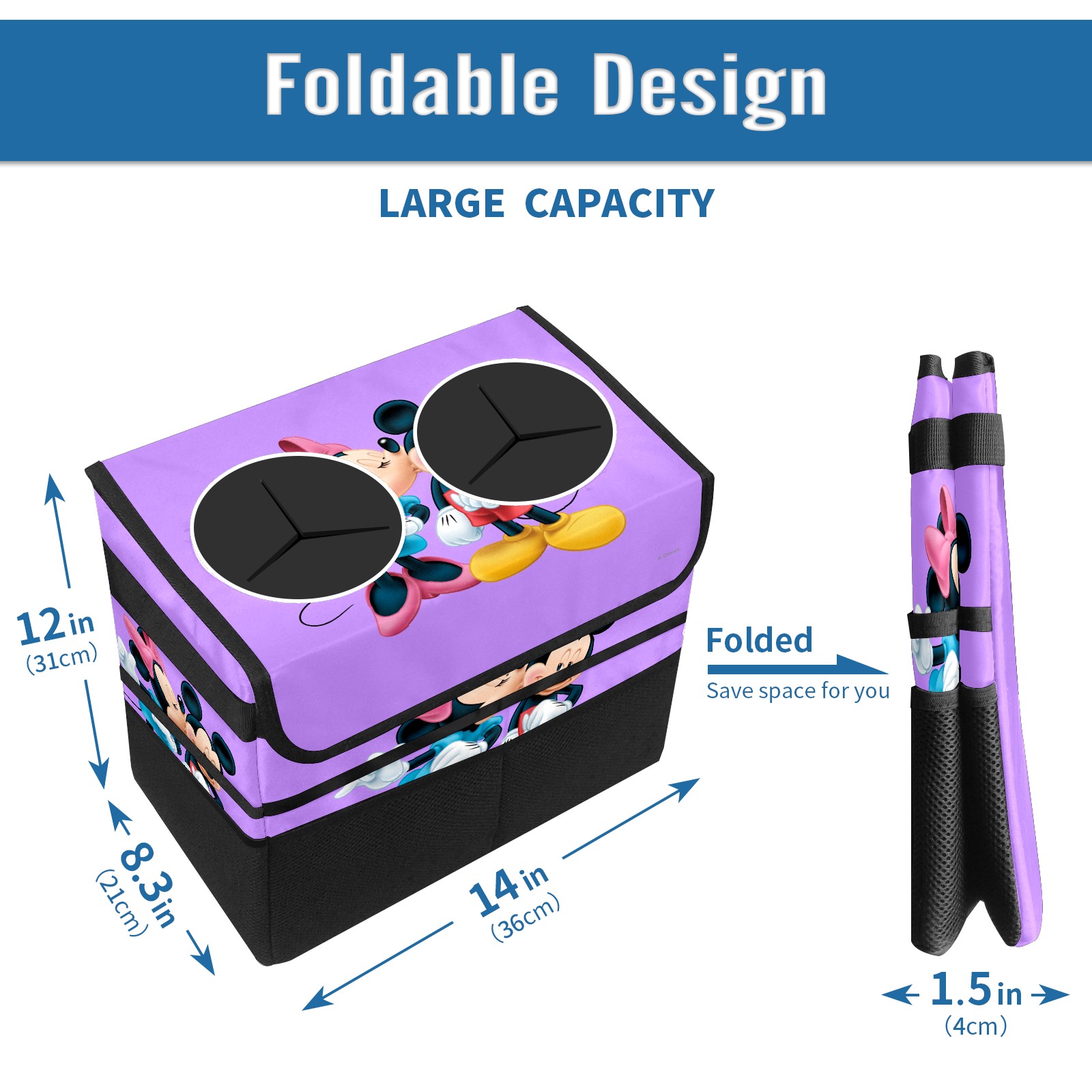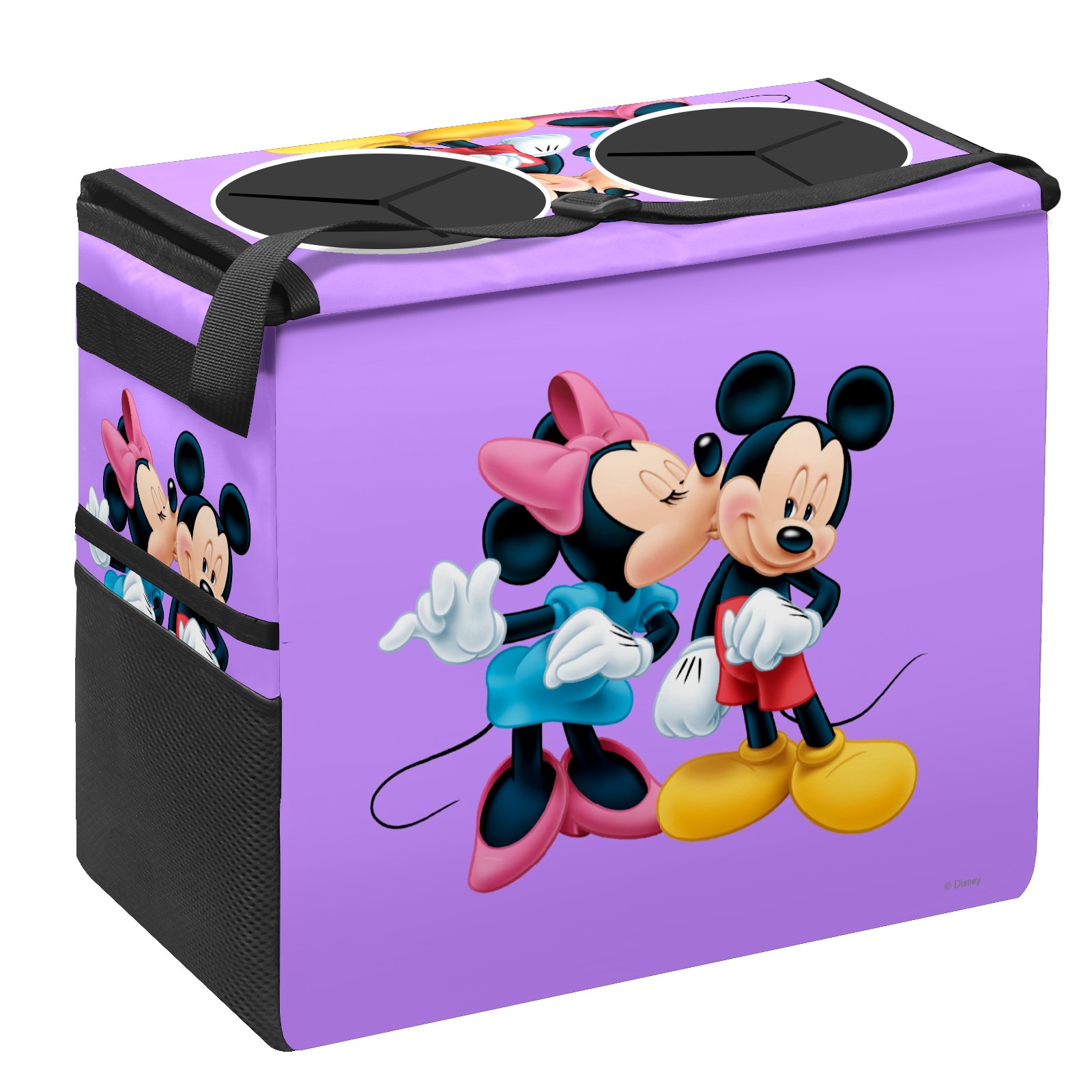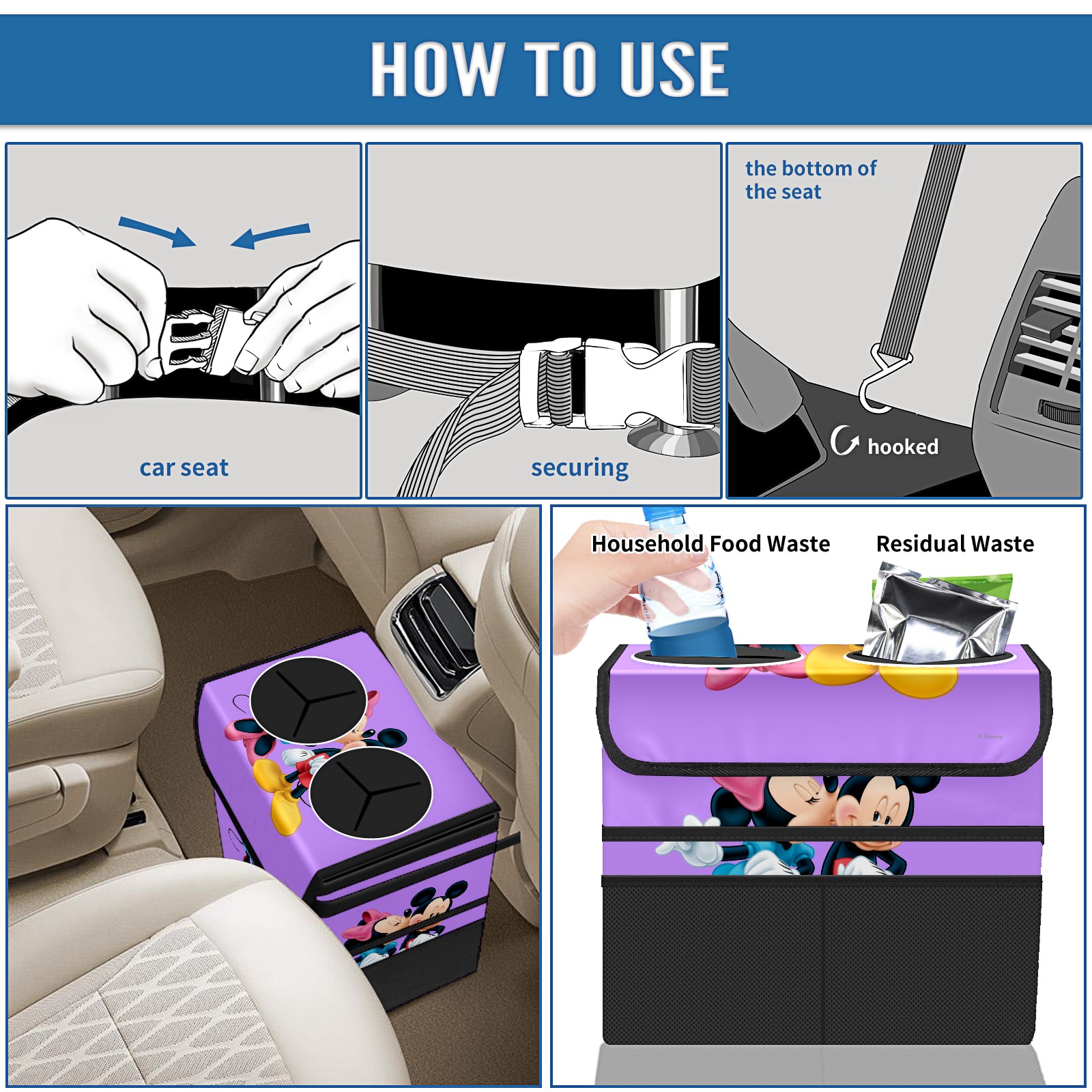 Car Trash Can with Lid, Portable Hanging Automotive Garbage Bin for Vehicles, Leakproof Waste Bag Container for SUV Truck Van Interior Auto Travel Road Trips(Minnie Kissing Mickey Mouse Purple)
