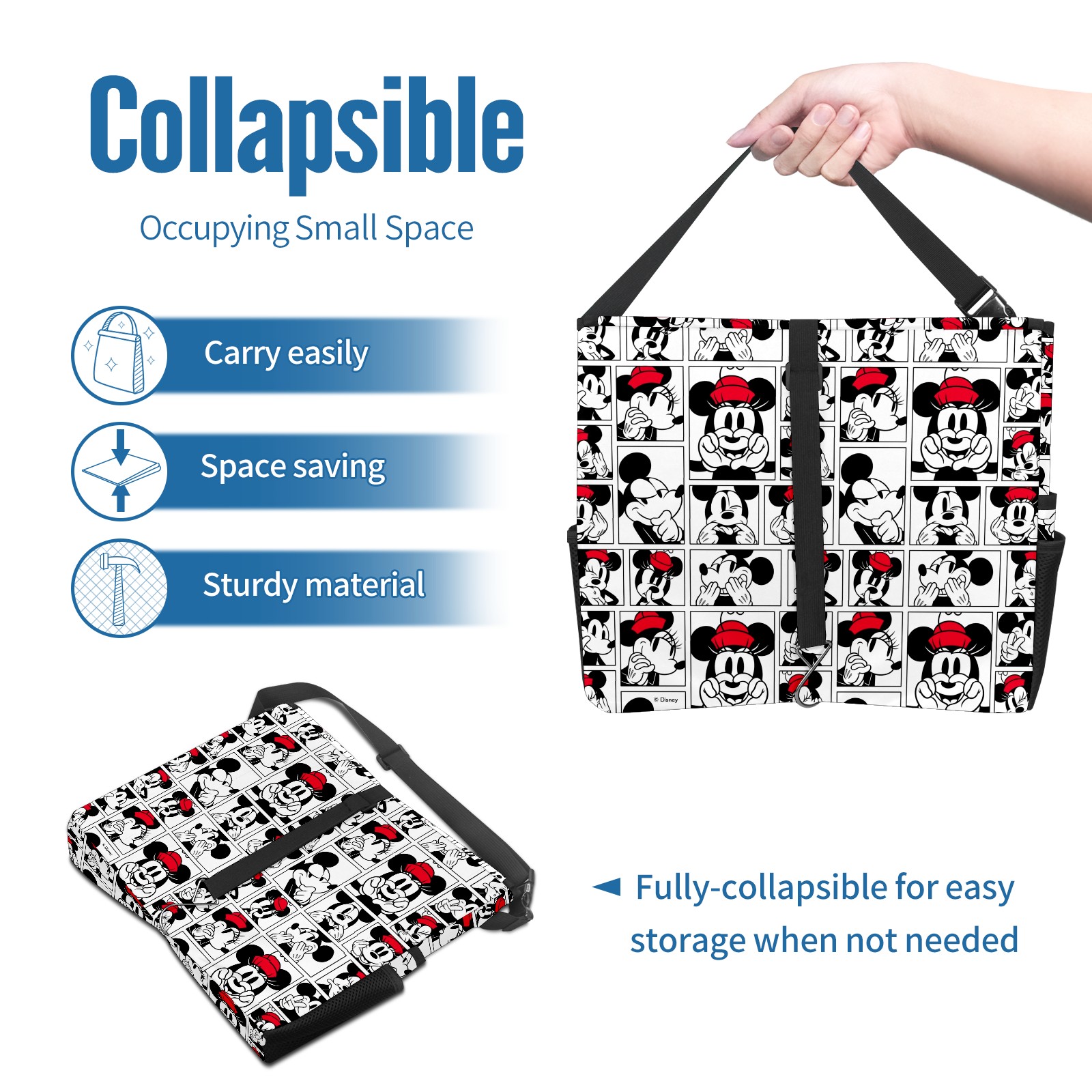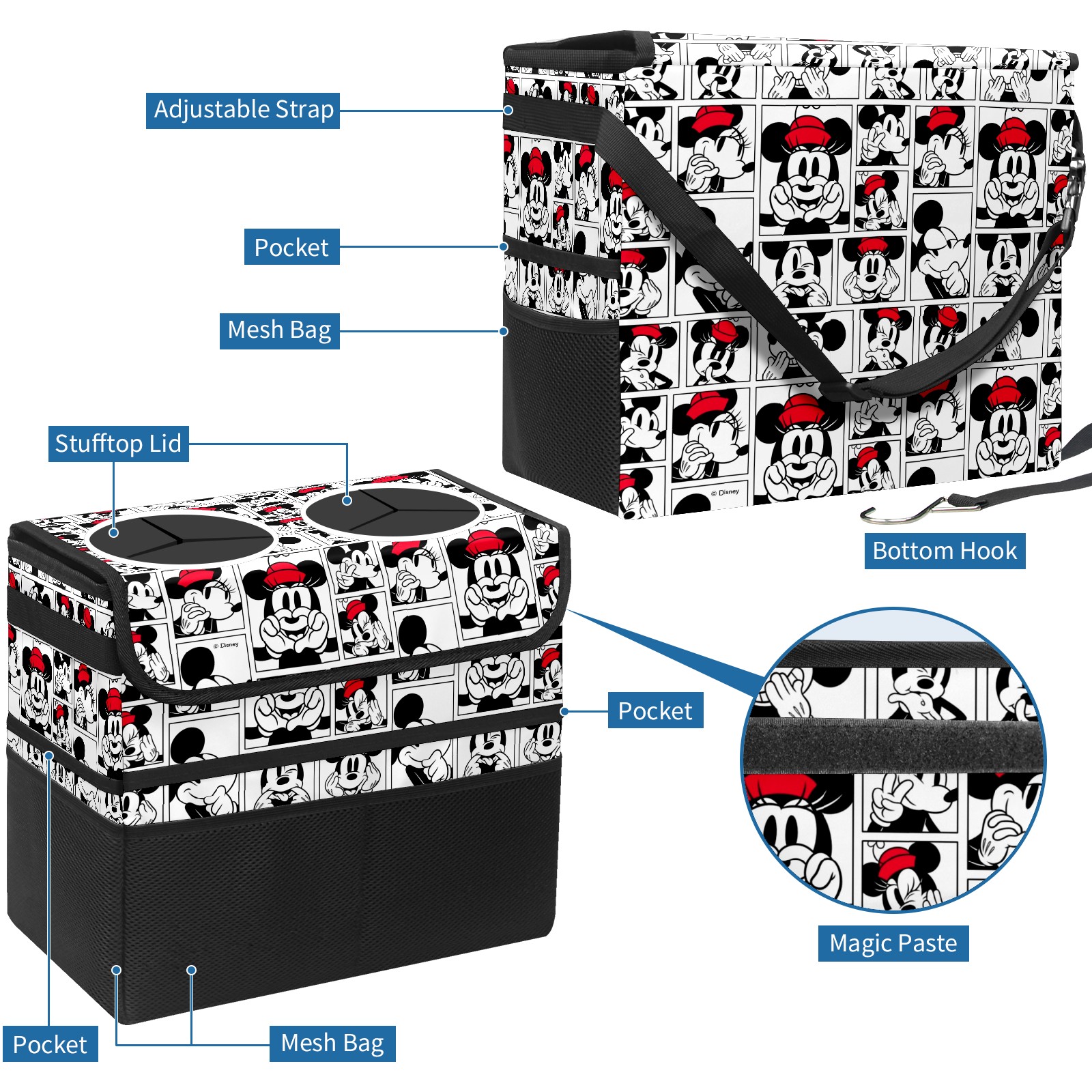 Car Trash Can with Lid, Portable Hanging Automotive Garbage Bin for Vehicles, Leakproof Waste Bag Container for SUV Truck Van Interior Auto Travel Road Trips(Mickey Mouse Pattern)