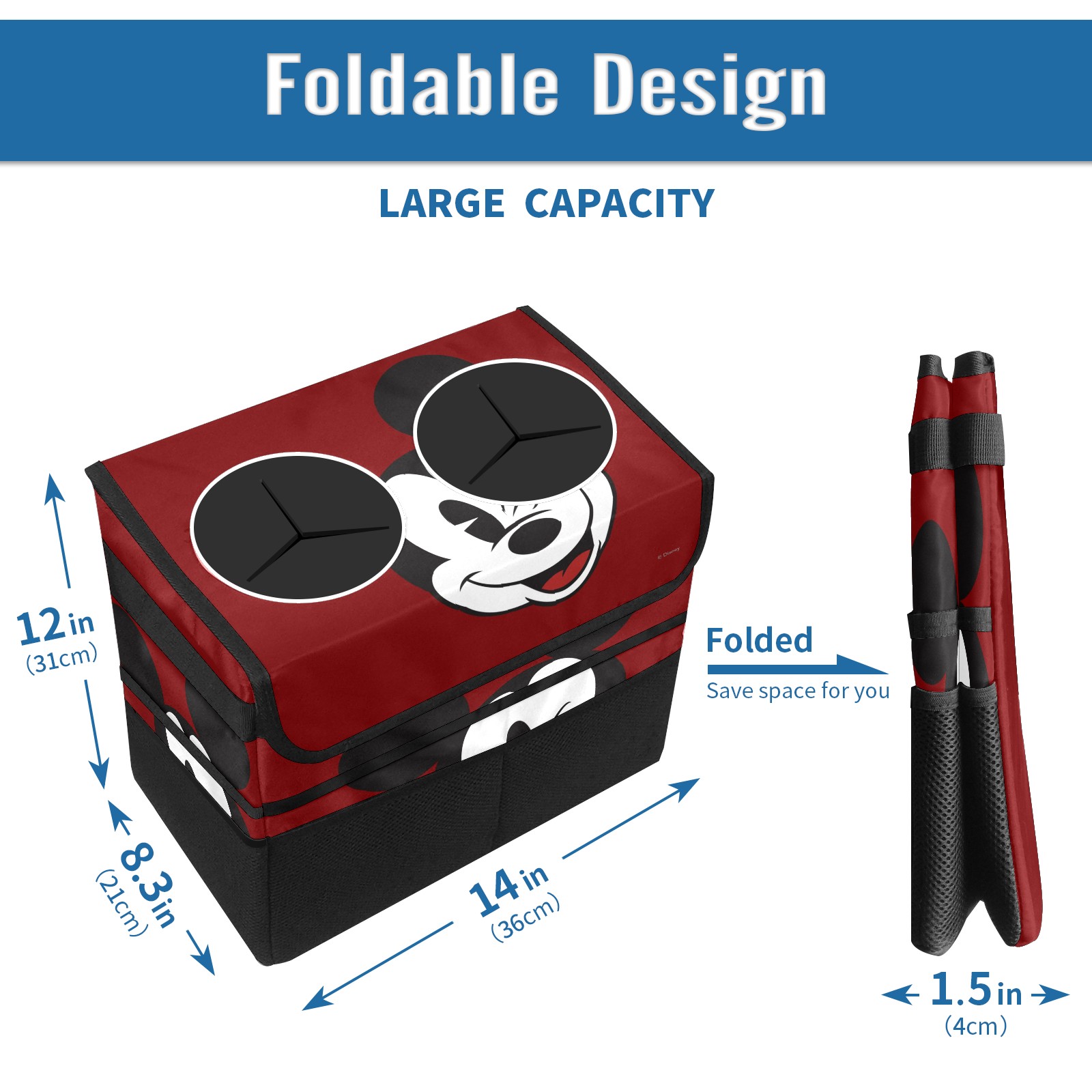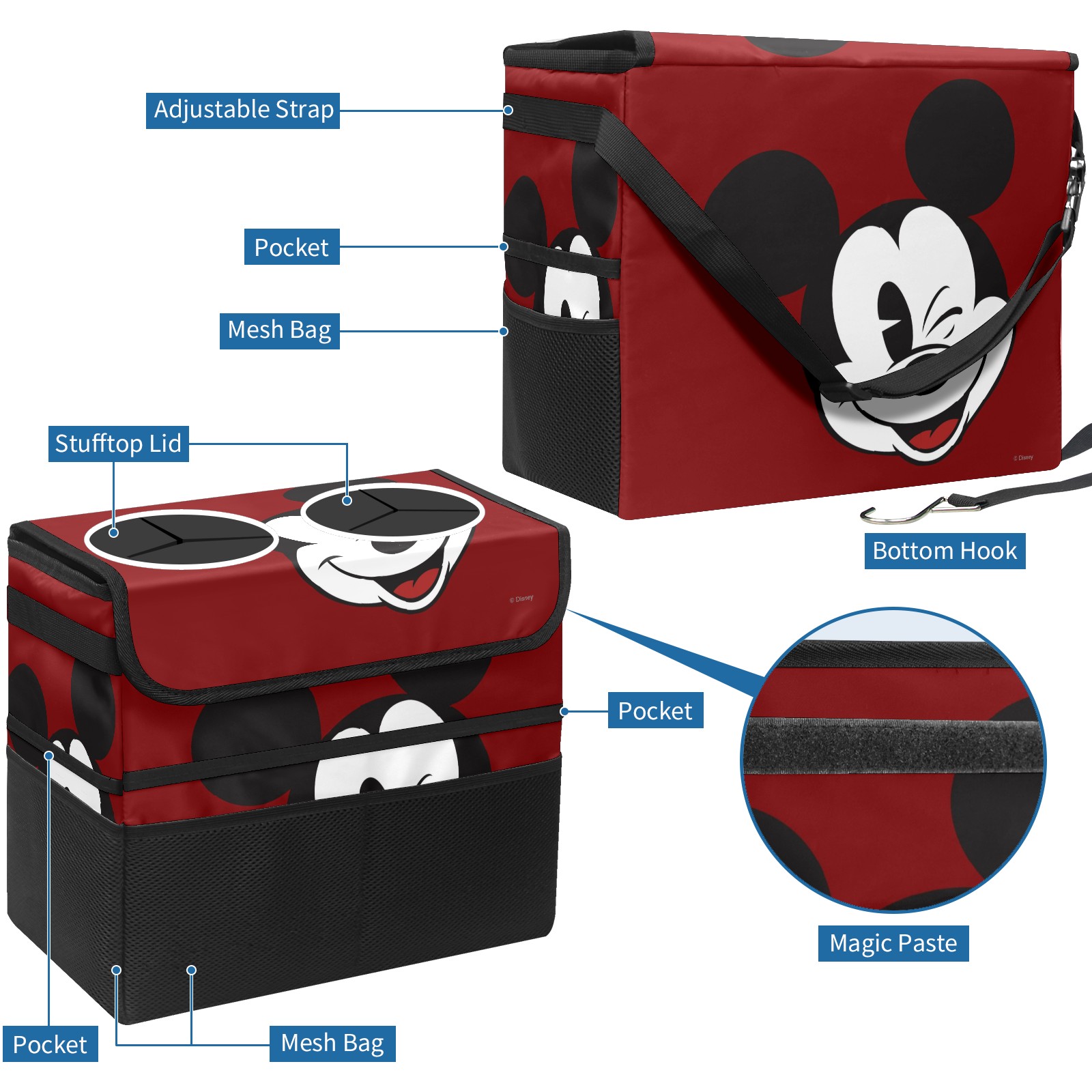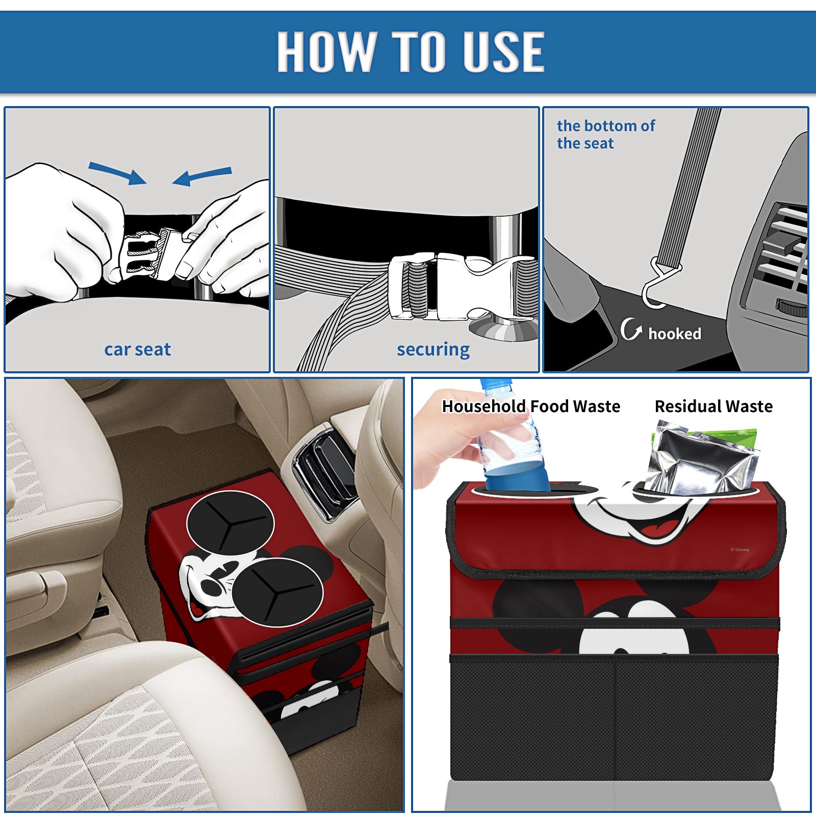Car Trash Can with Lid, Portable Hanging Automotive Garbage Bin for Vehicles, Leakproof Waste Bag Container for SUV Truck Van Interior Auto Travel Road Trips(Classic Wink Mickey Mouse Red)