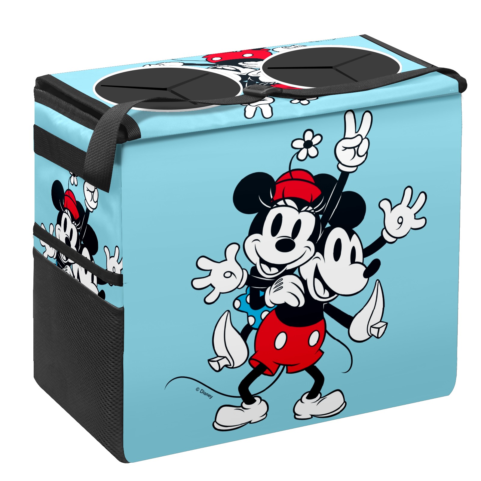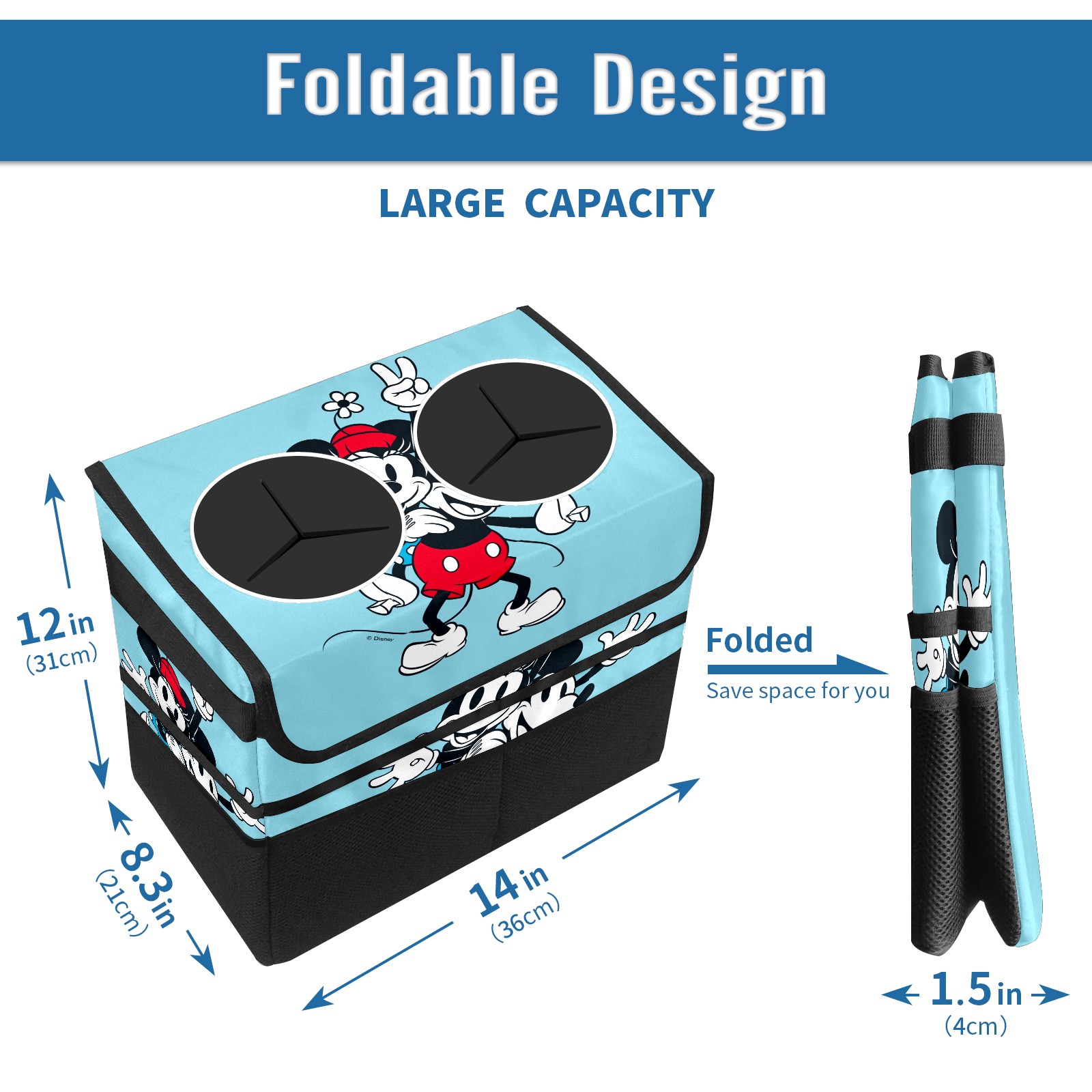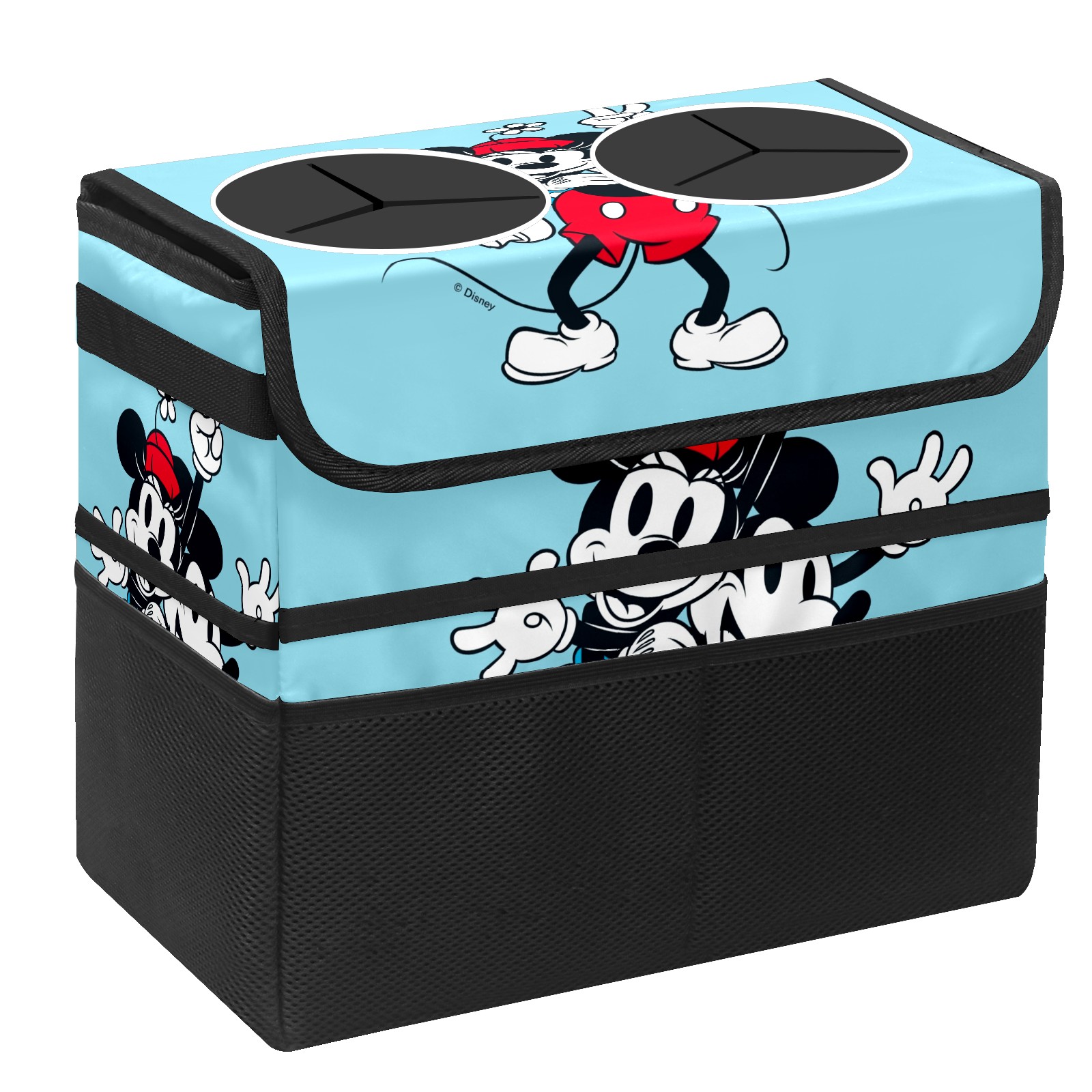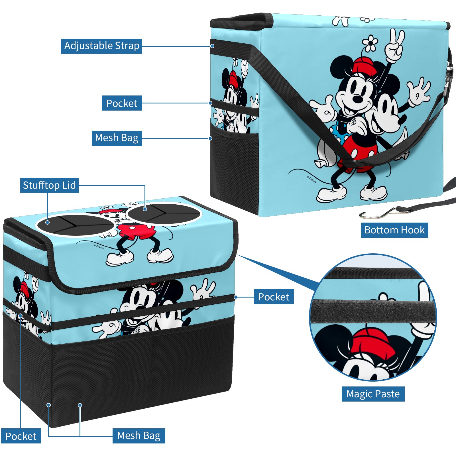 Car Trash Can with Lid, Portable Hanging Automotive Garbage Bin for Vehicles, Leakproof Waste Bag Container for SUV Truck Van Interior Auto Travel Road Trips(Blue Minnie Mickey Mouse Pattern)