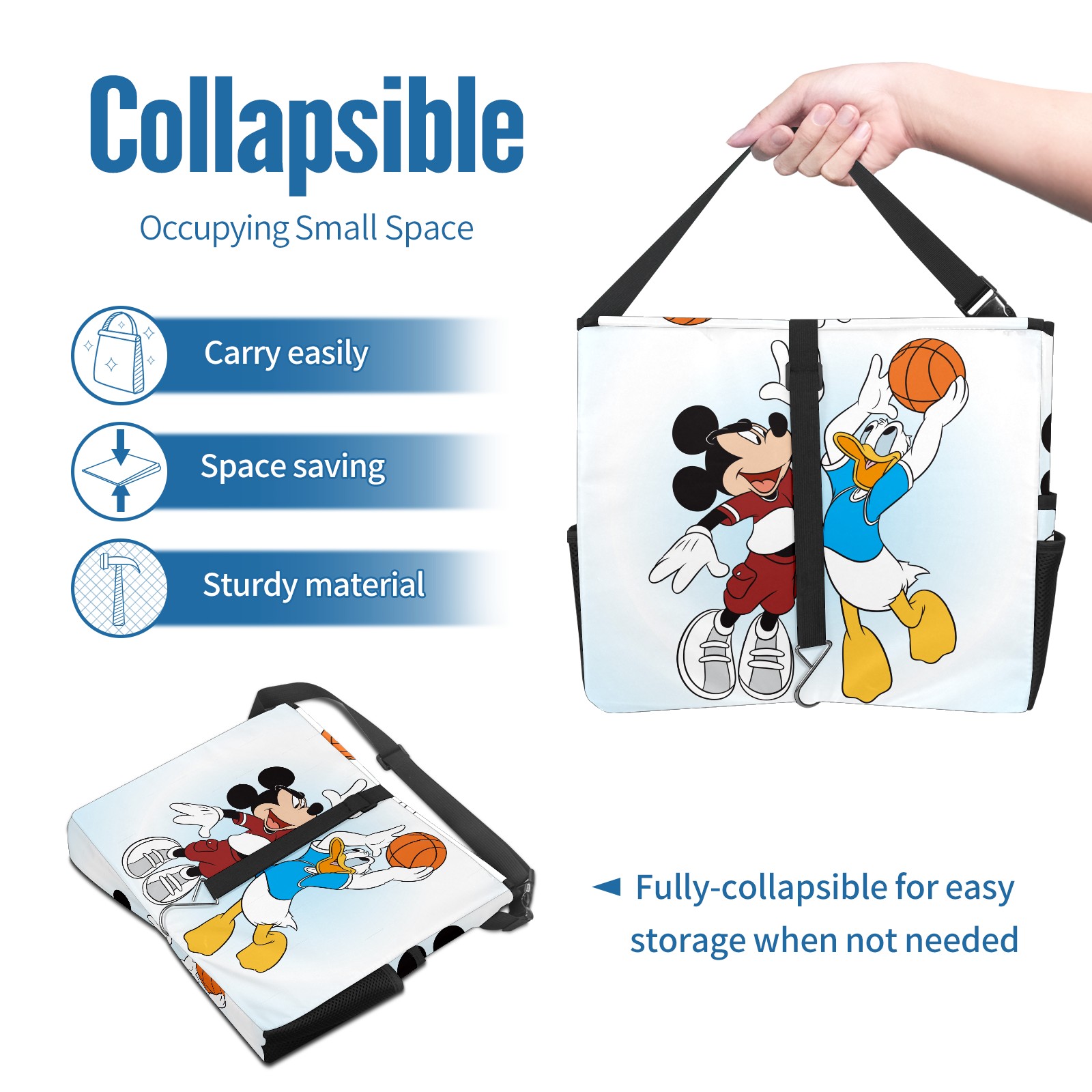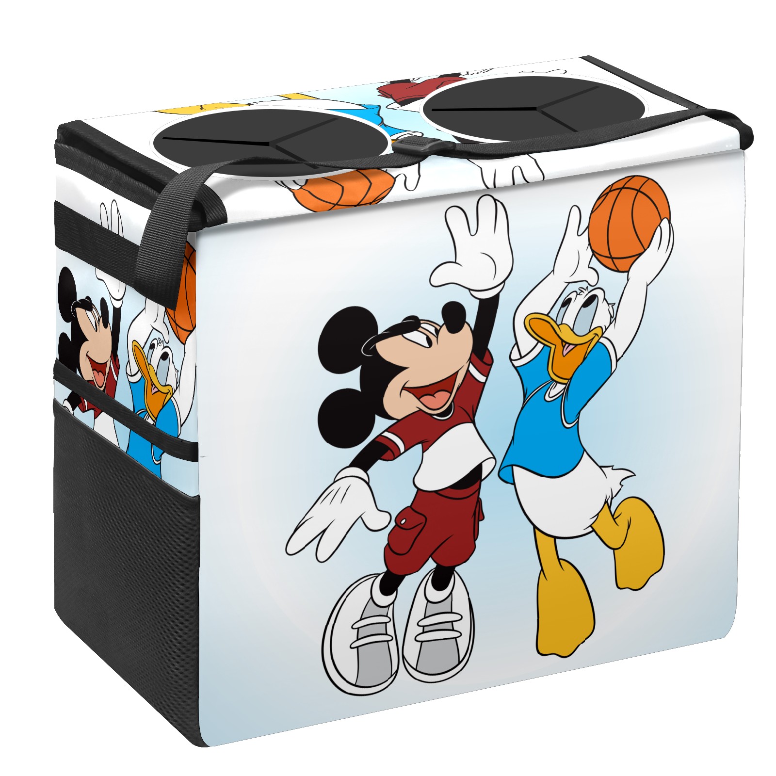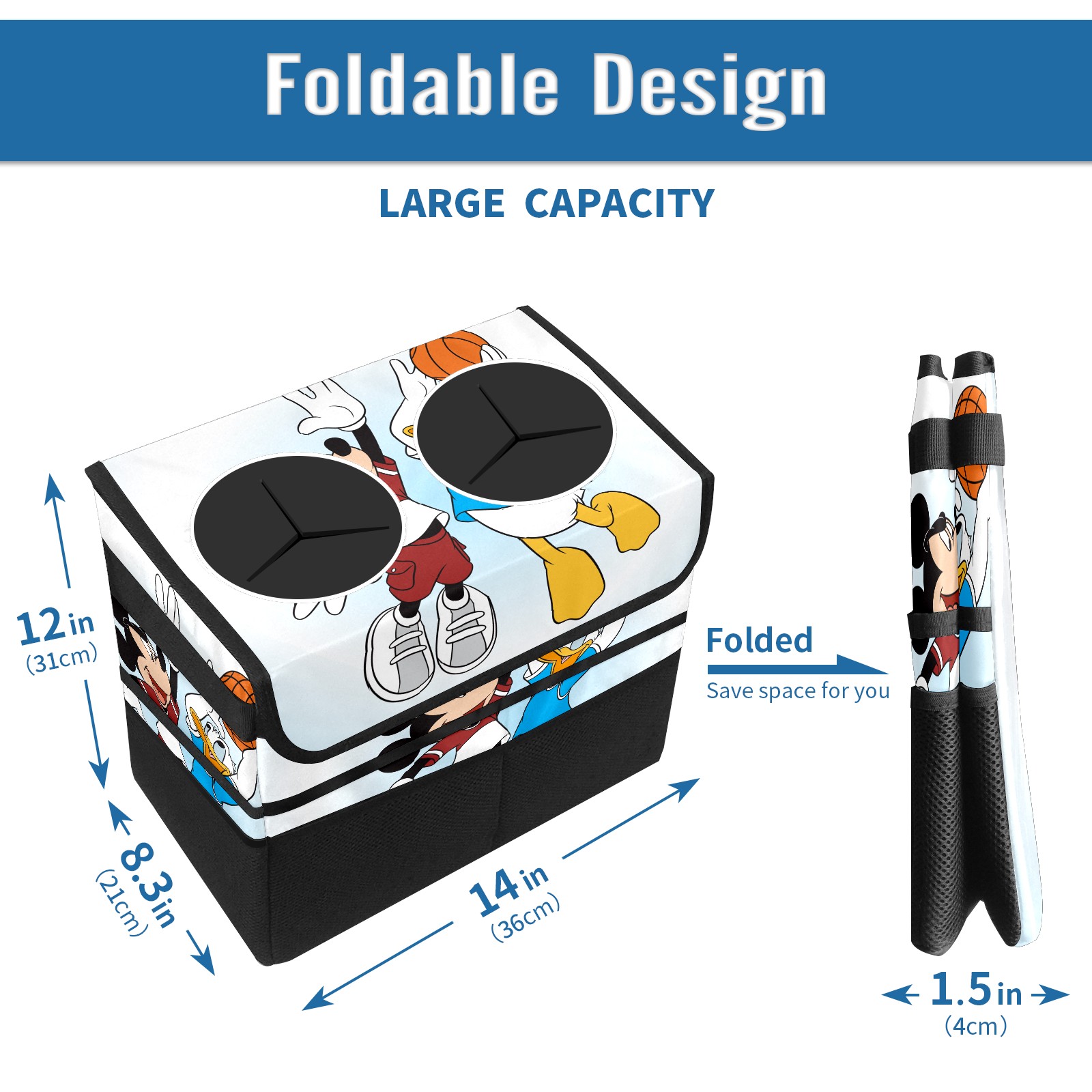 Car Trash Can with Lid, Portable Hanging Automotive Garbage Bin for Vehicles, Leakproof Waste Bag Container for SUV Truck Van Interior Auto Travel Road Trips(Mickey Mouse And Donald Duck)