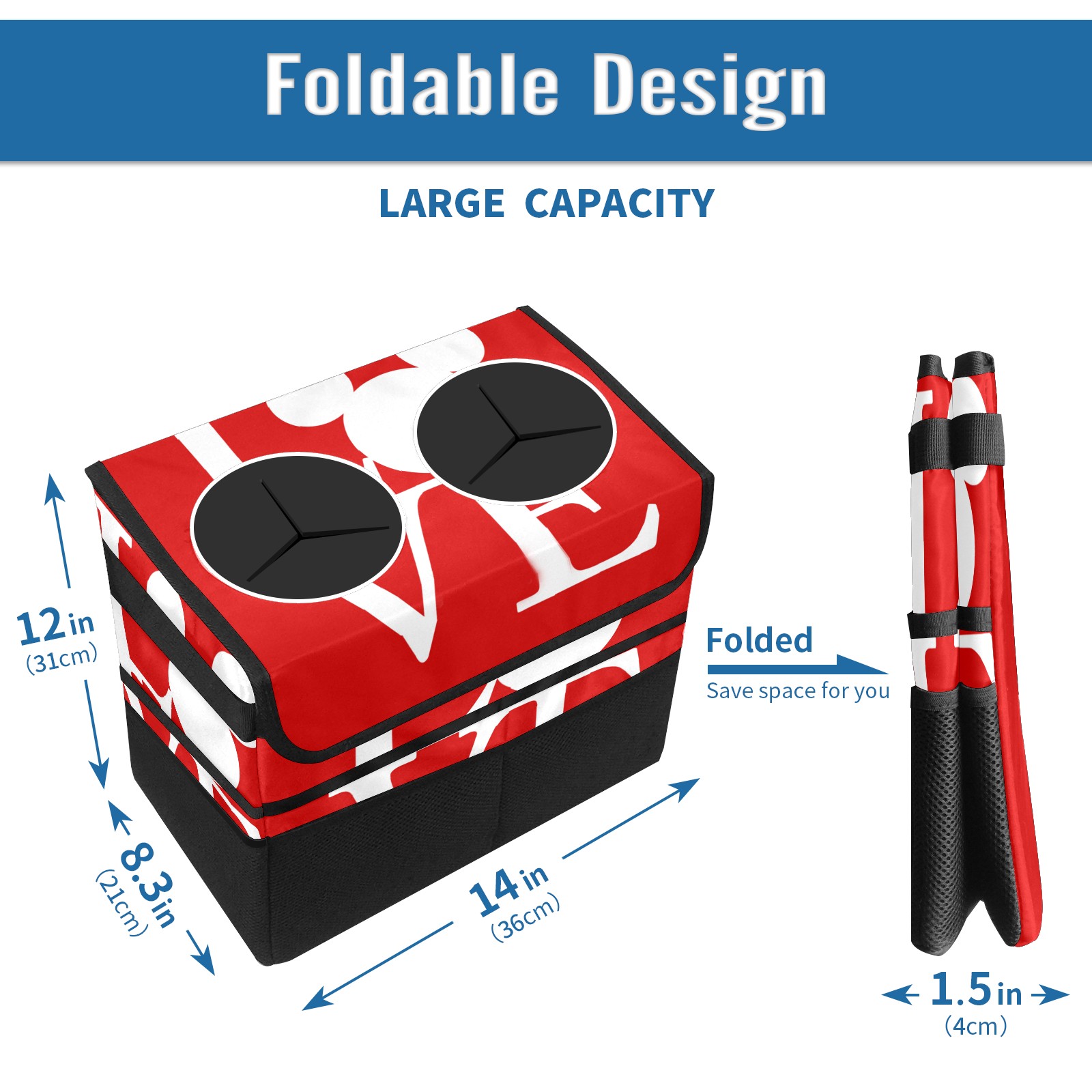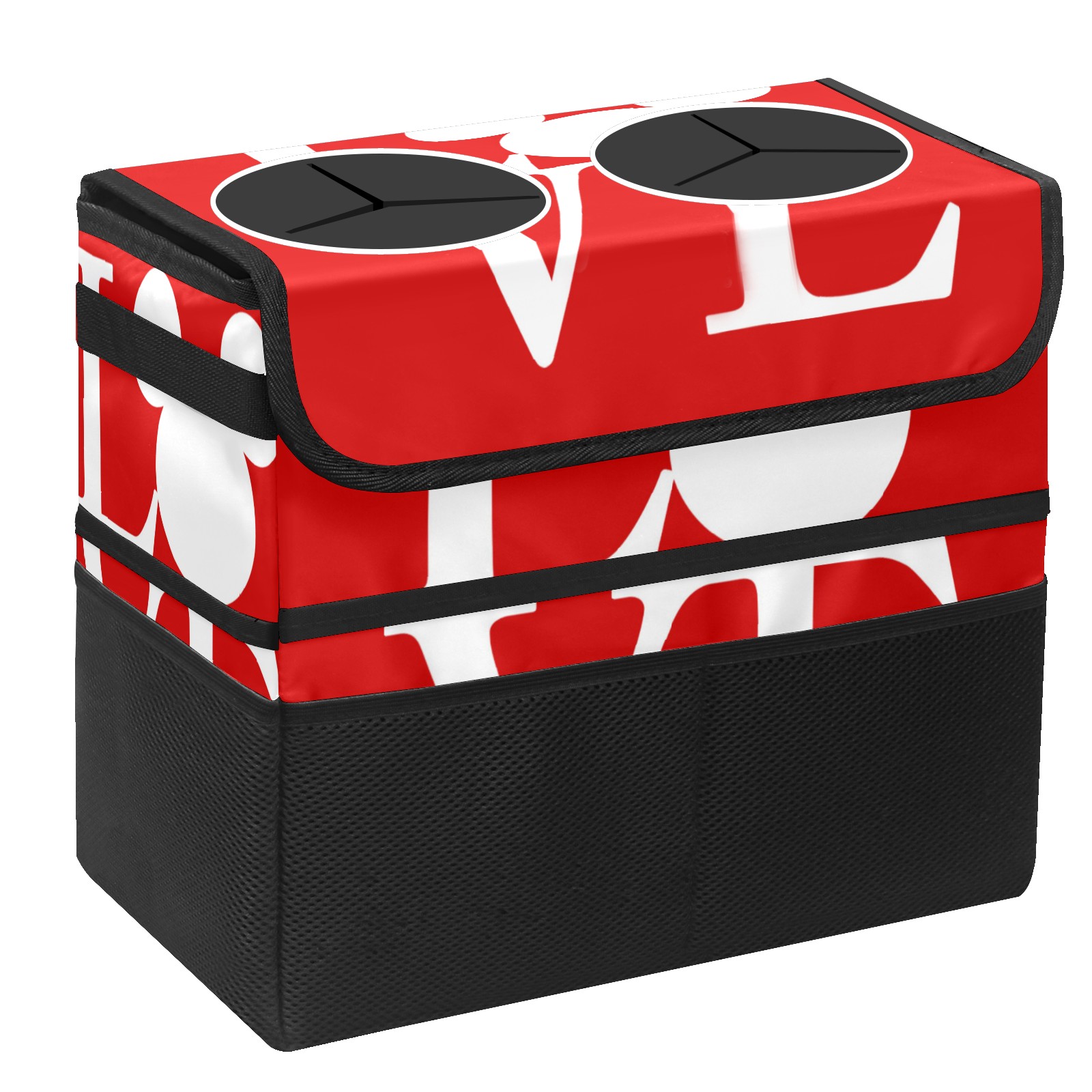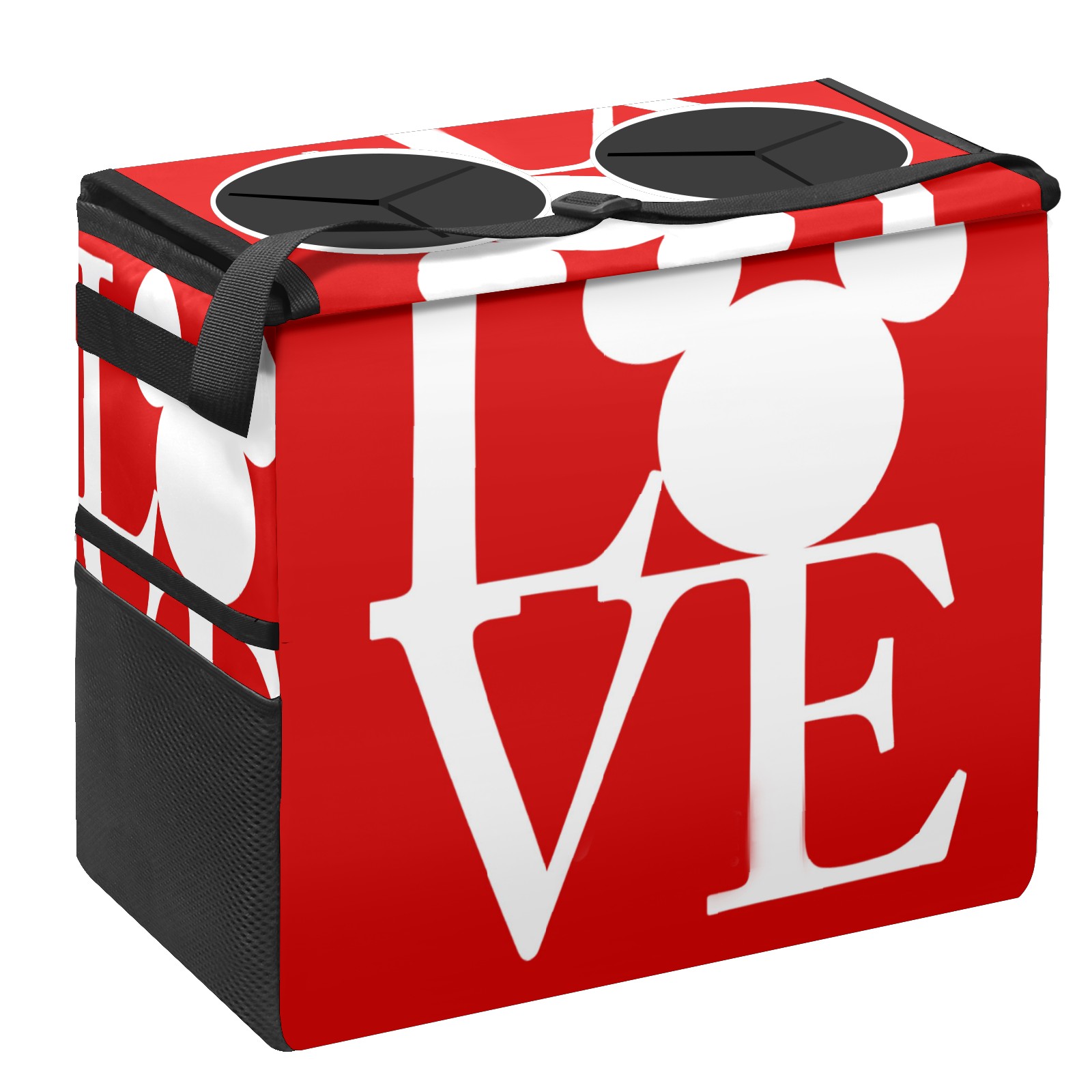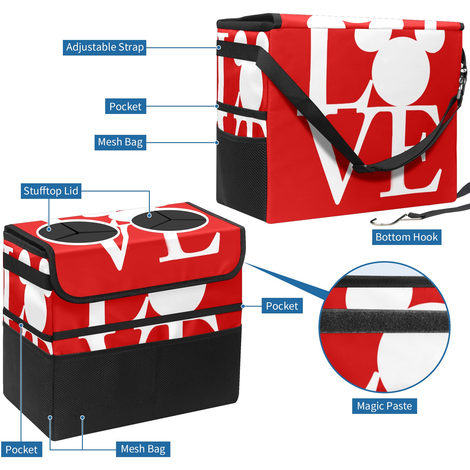 Car Trash Can with Lid, Portable Hanging Automotive Garbage Bin for Vehicles, Leakproof Waste Bag Container for SUV Truck Van Interior Auto Travel Road Trips(Mickey Mouse LOVE Valentine's Day Red)