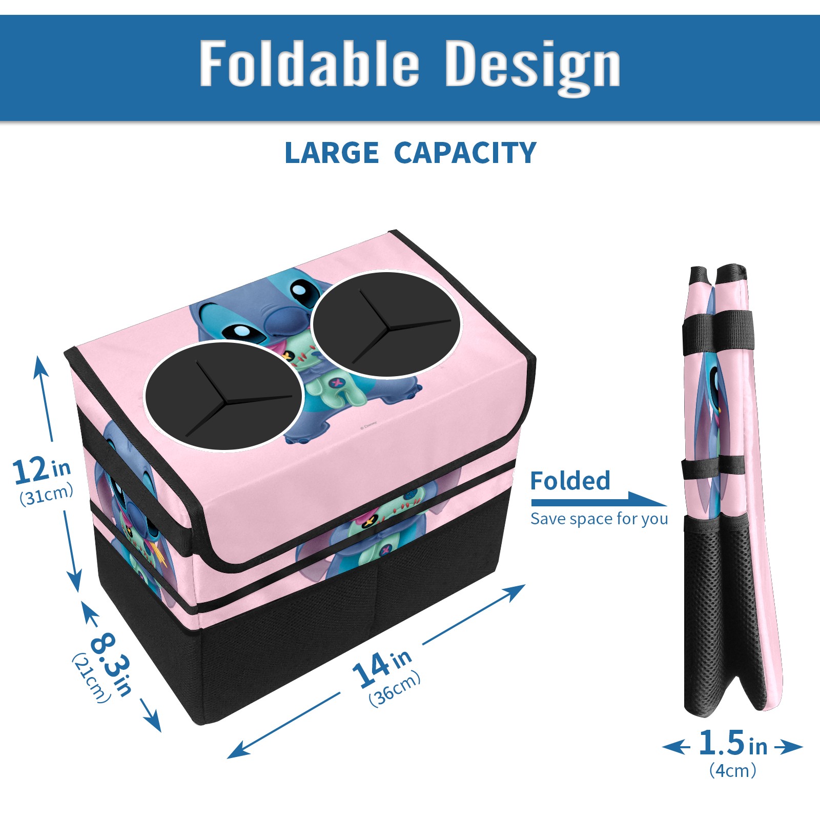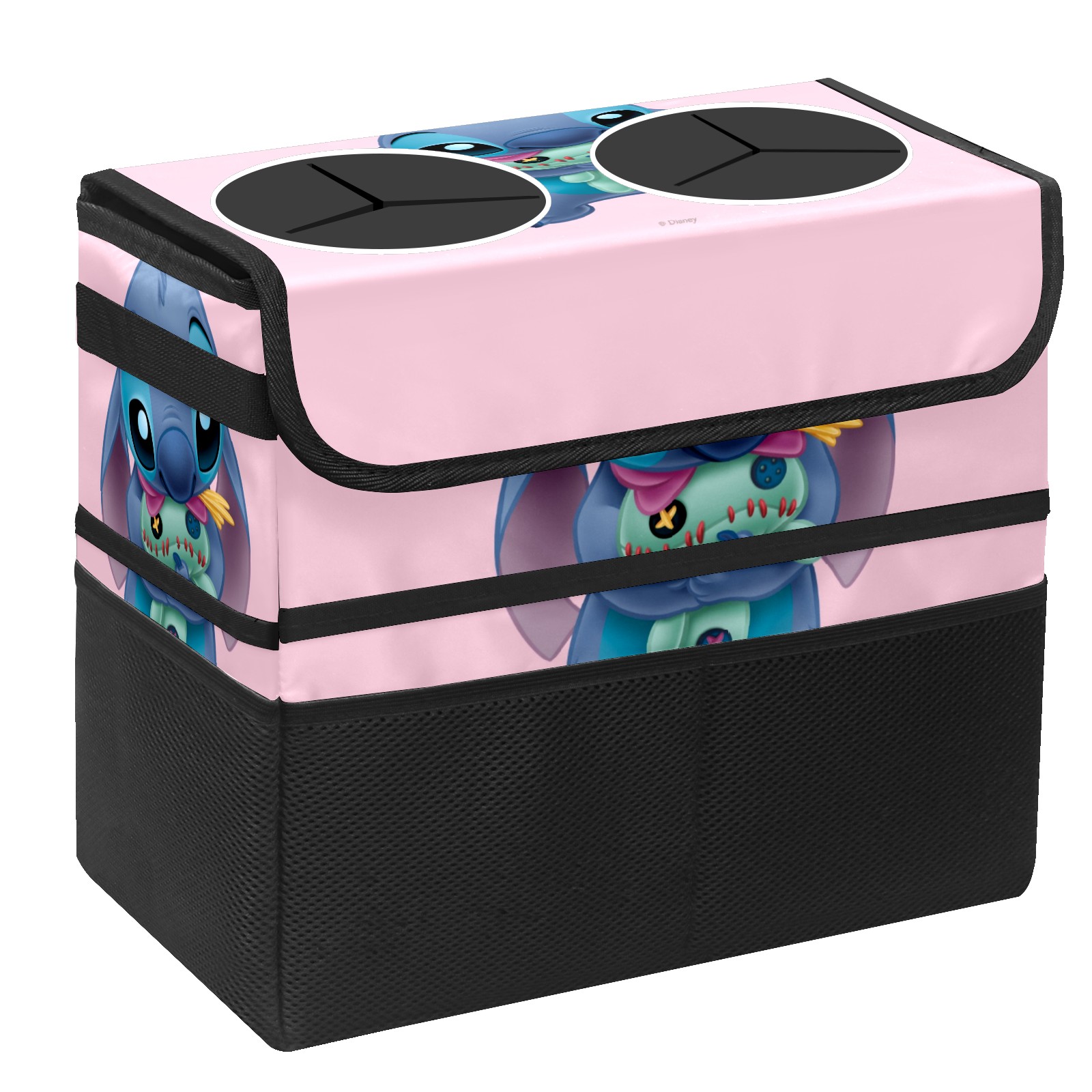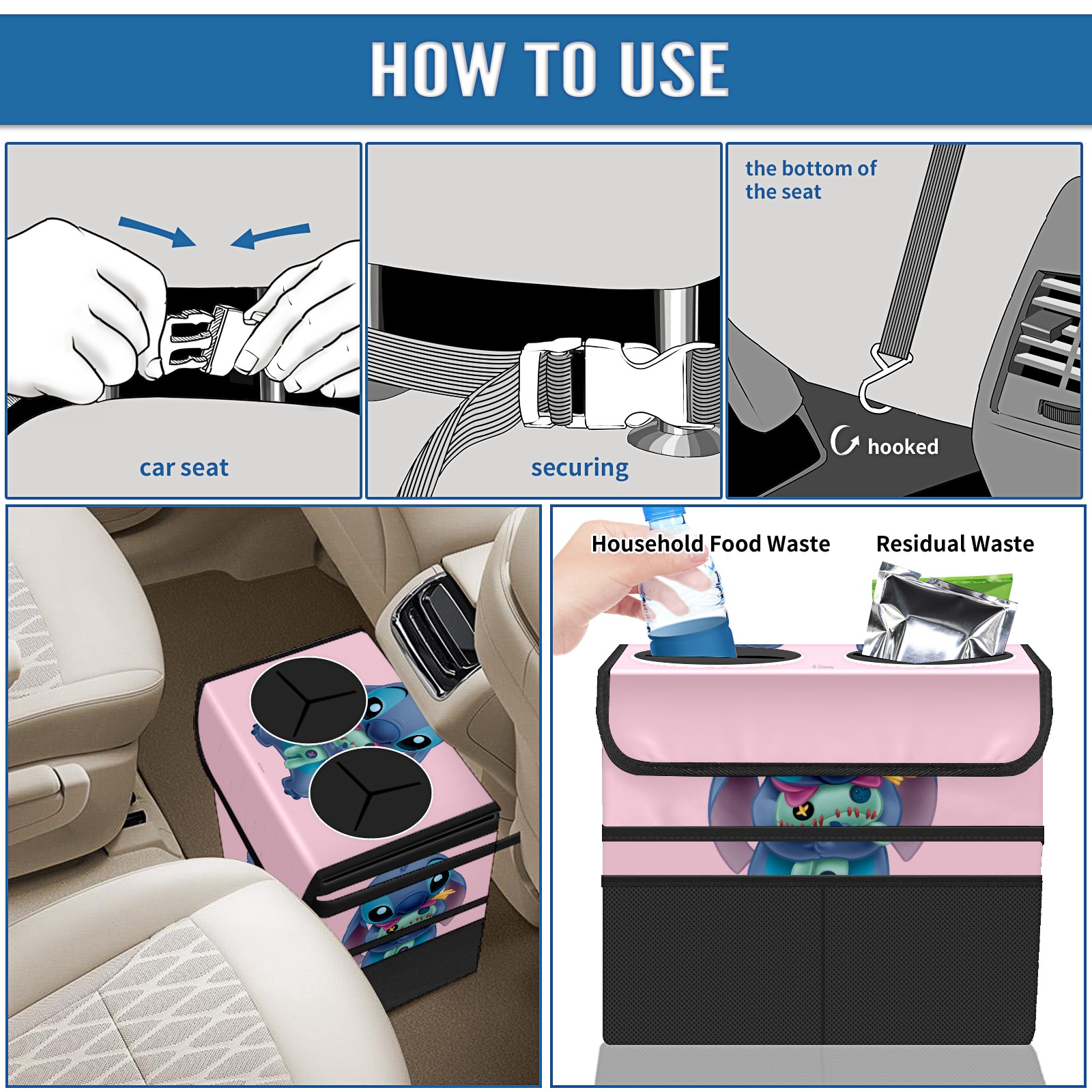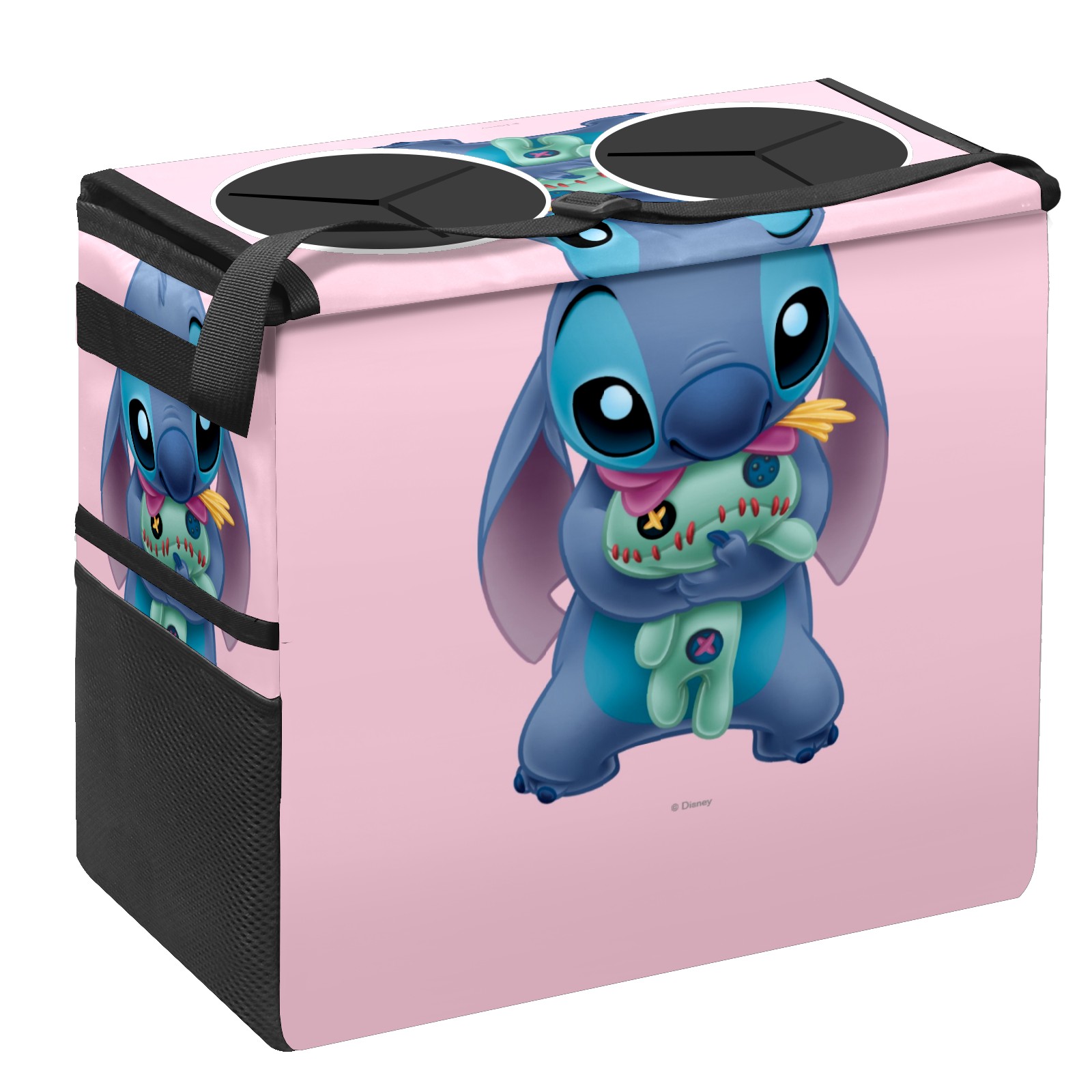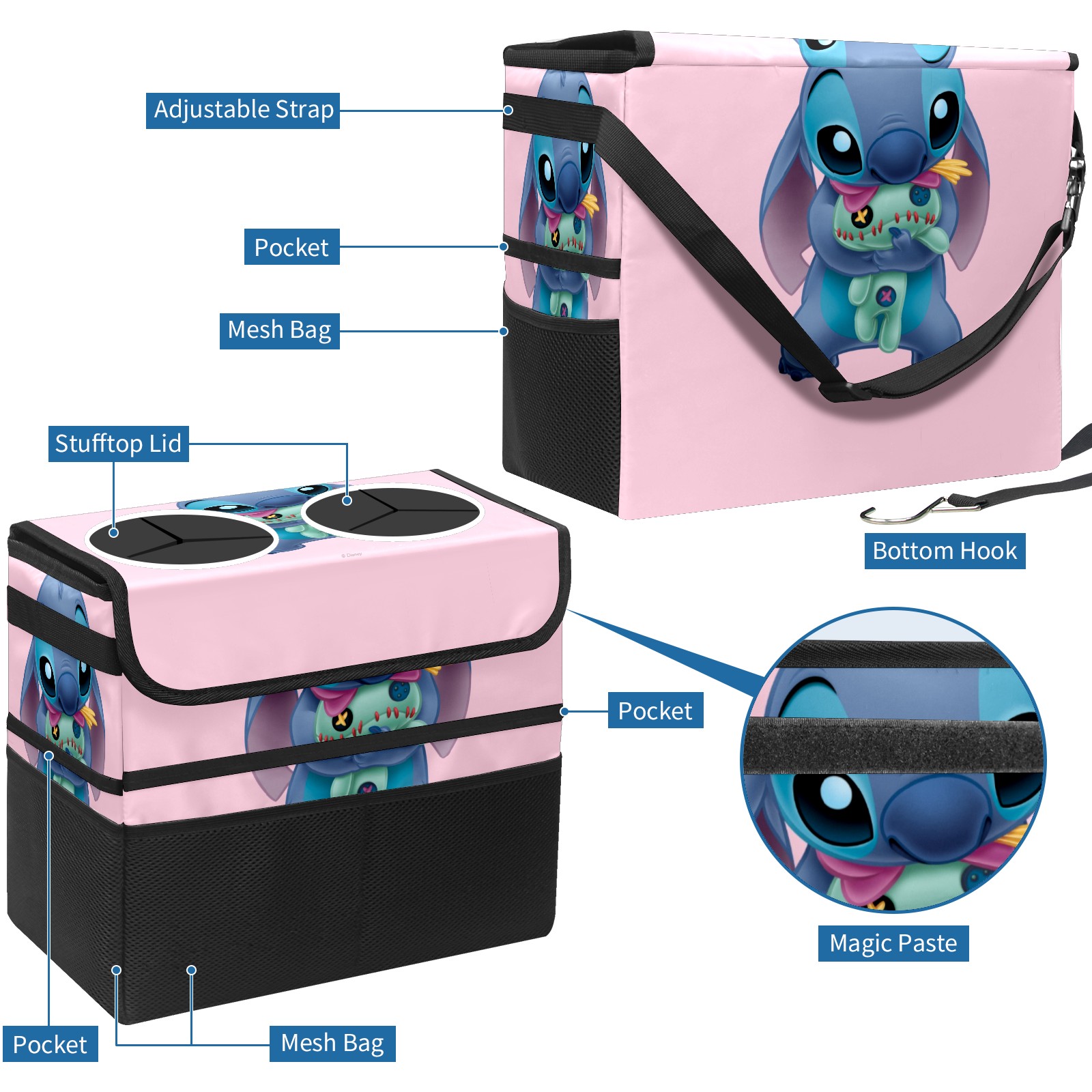 Car Trash Can with Lid, Portable Hanging Automotive Garbage Bin for Vehicles, Leakproof Waste Bag Container for SUV Truck Van Interior Auto Travel Road Trips(Lilo Stich Stitch With Ugly Doll Pink)