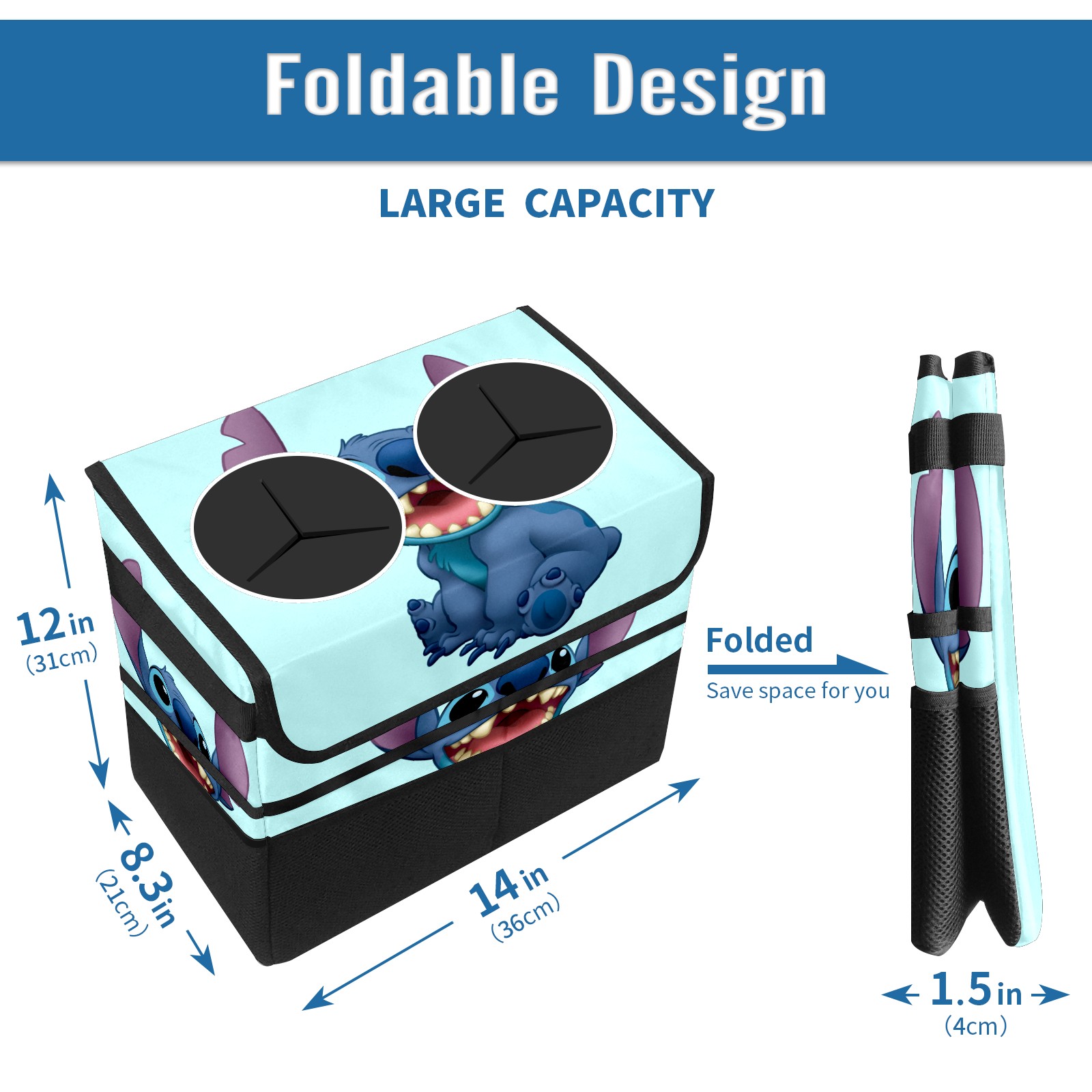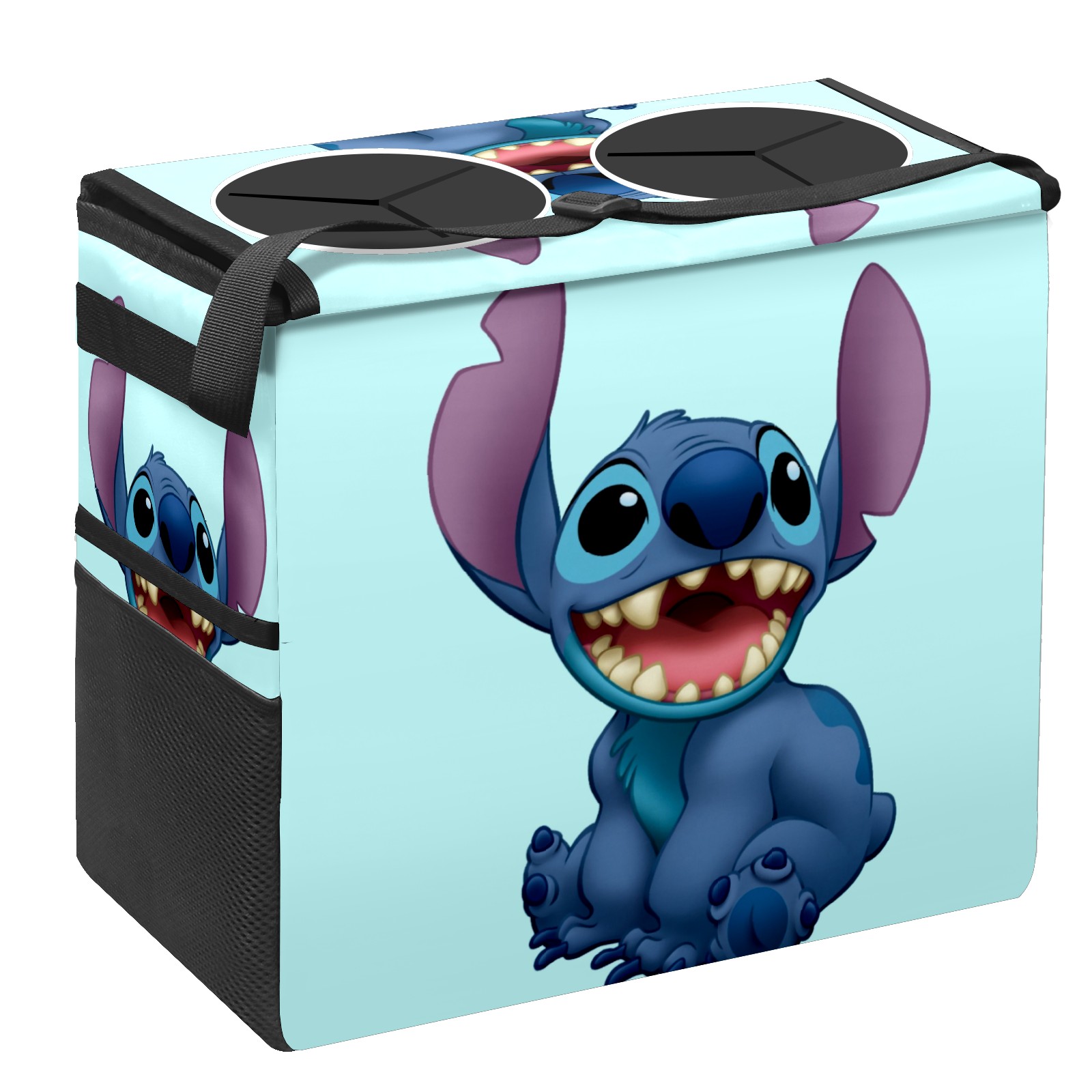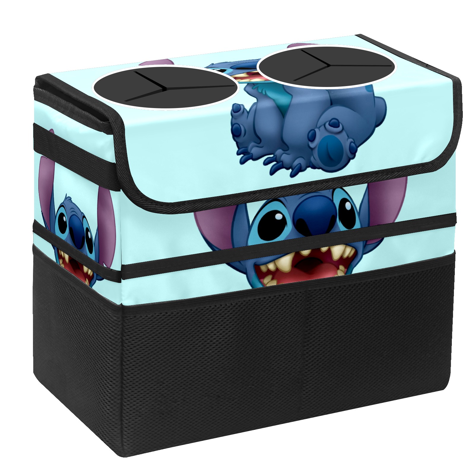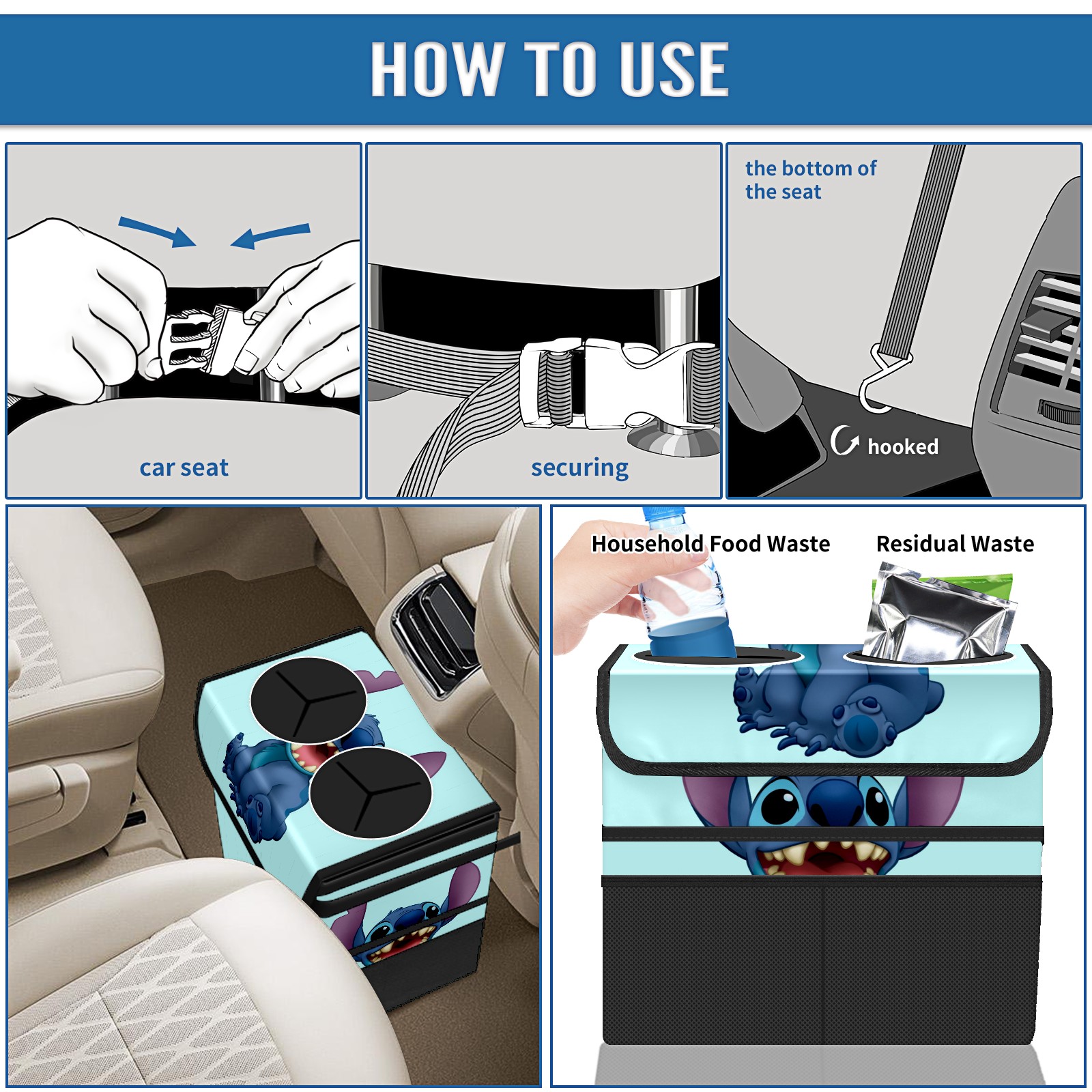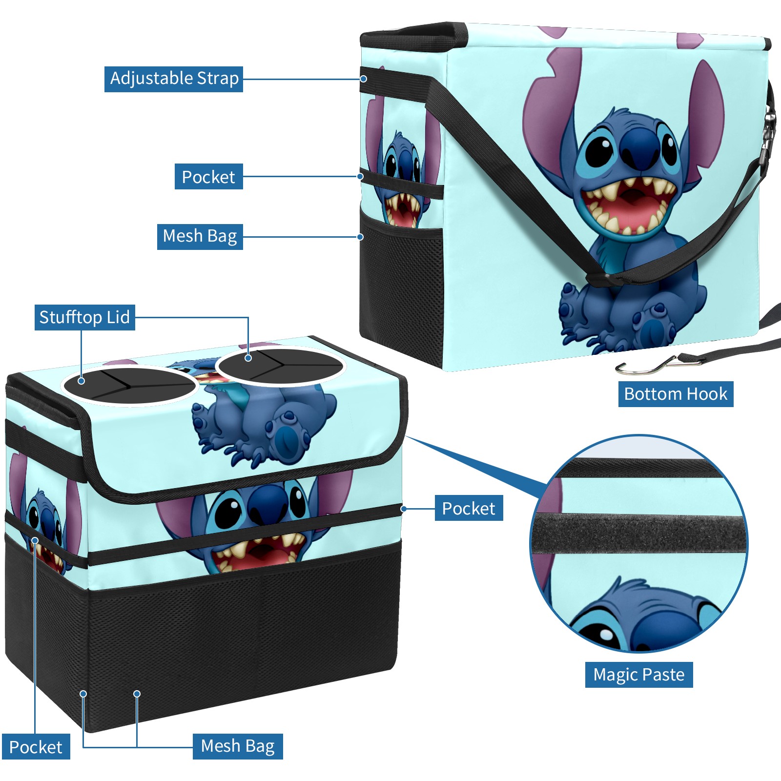 Car Trash Can with Lid, Portable Hanging Automotive Garbage Bin for Vehicles, Leakproof Waste Bag Container for SUV Truck Van Interior Auto Travel Road Trips(Lilo Stitch)