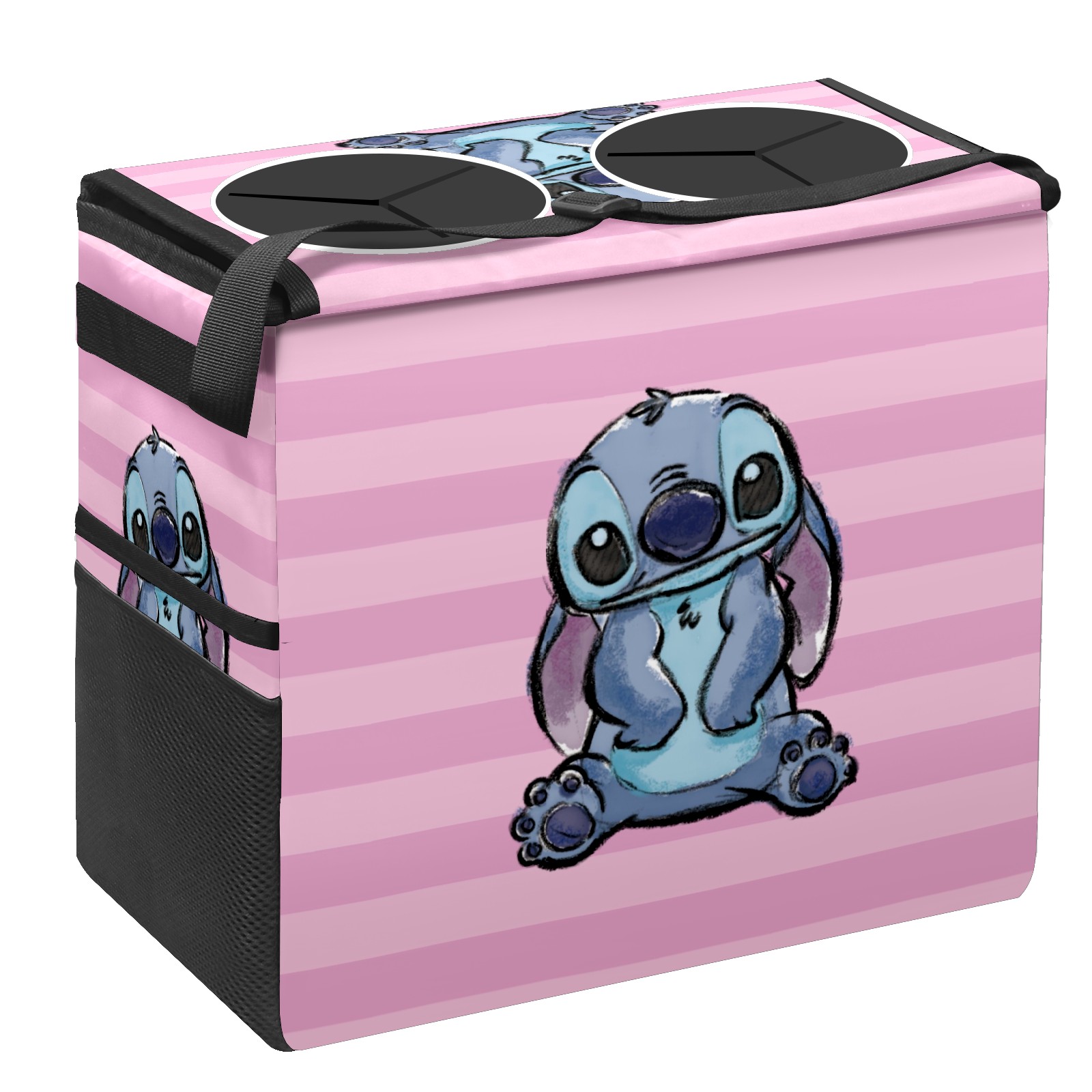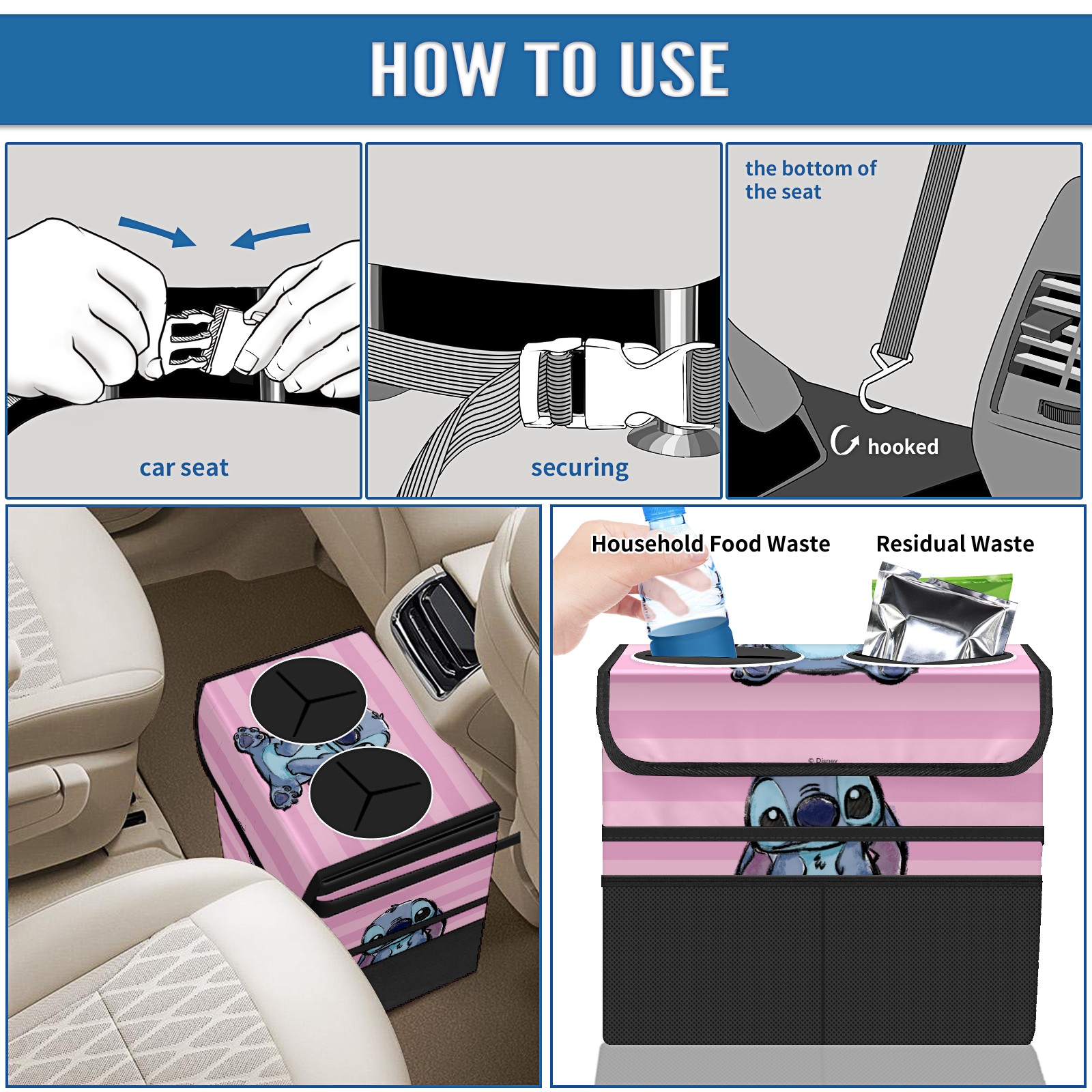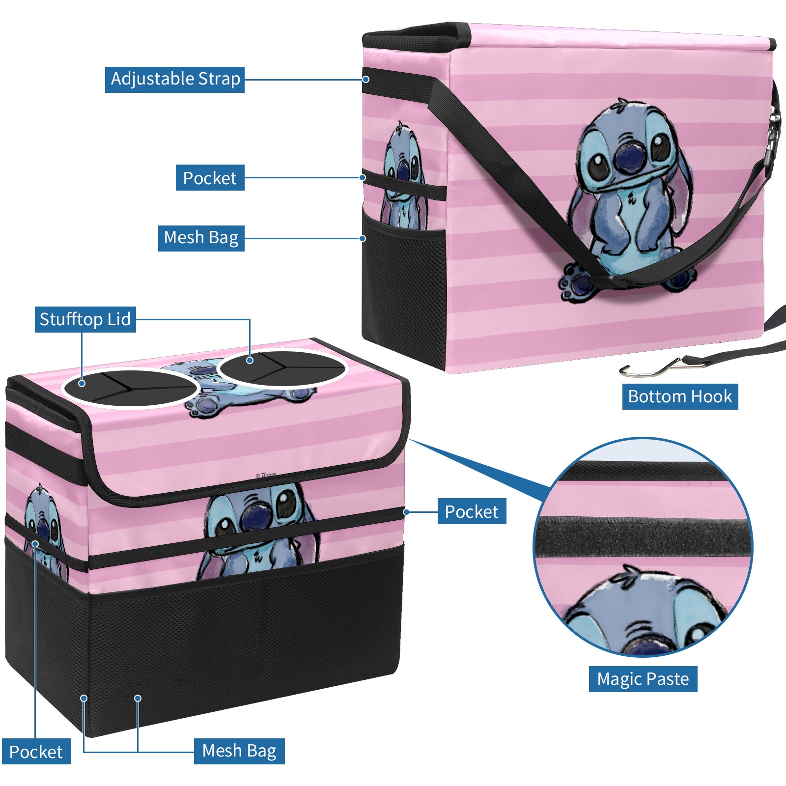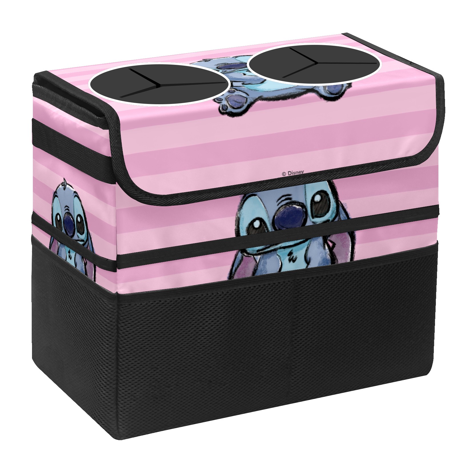 Car Trash Can with Lid, Portable Hanging Automotive Garbage Bin for Vehicles, Leakproof Waste Bag Container for SUV Truck Van Interior Auto Travel Road Trips(Pink Lilo Stitch Stitch Sketch)