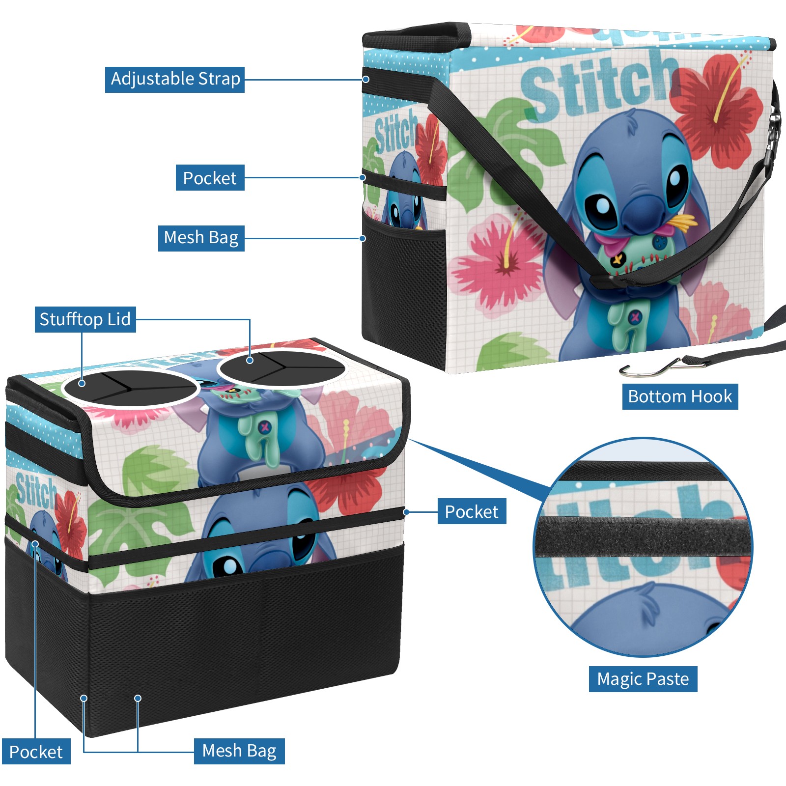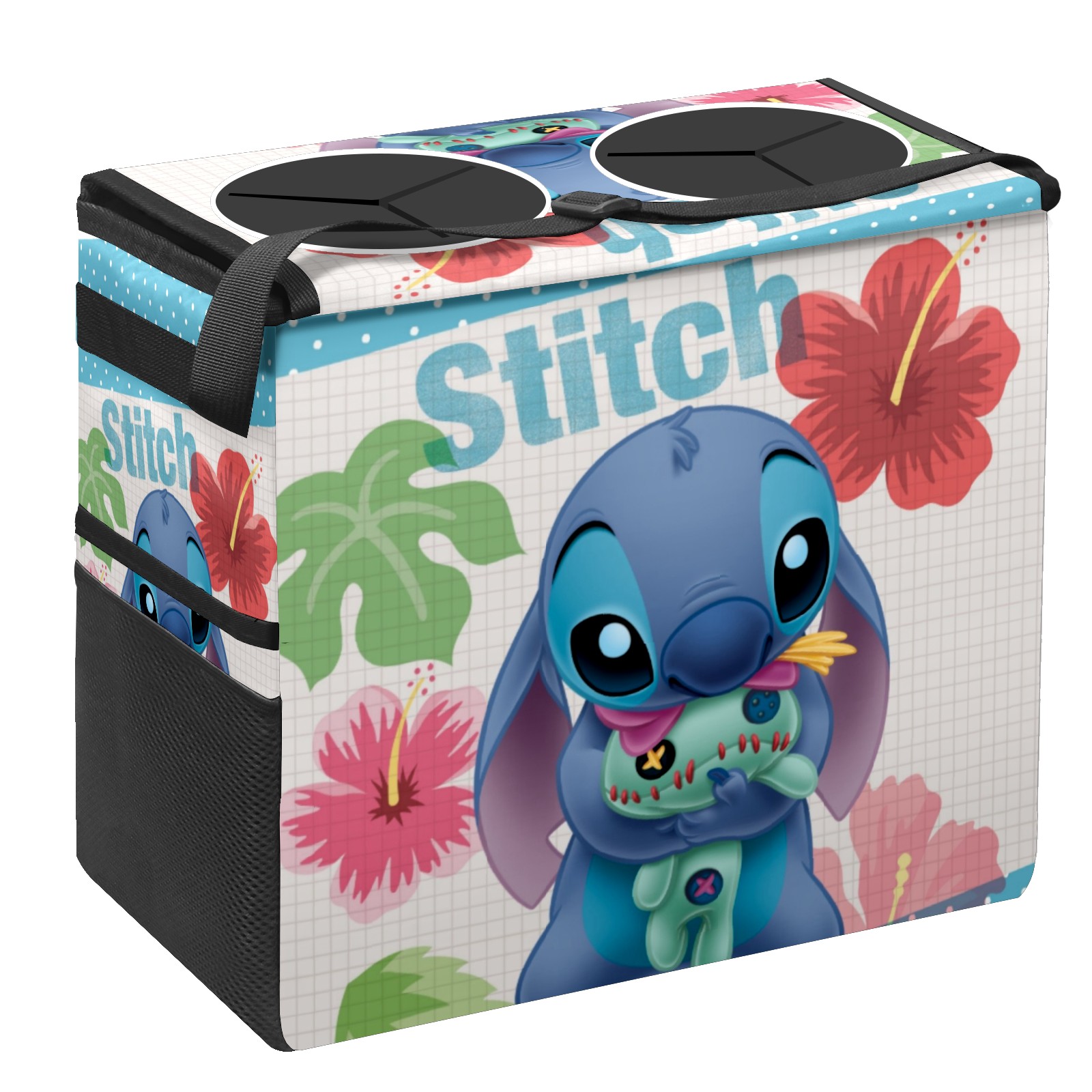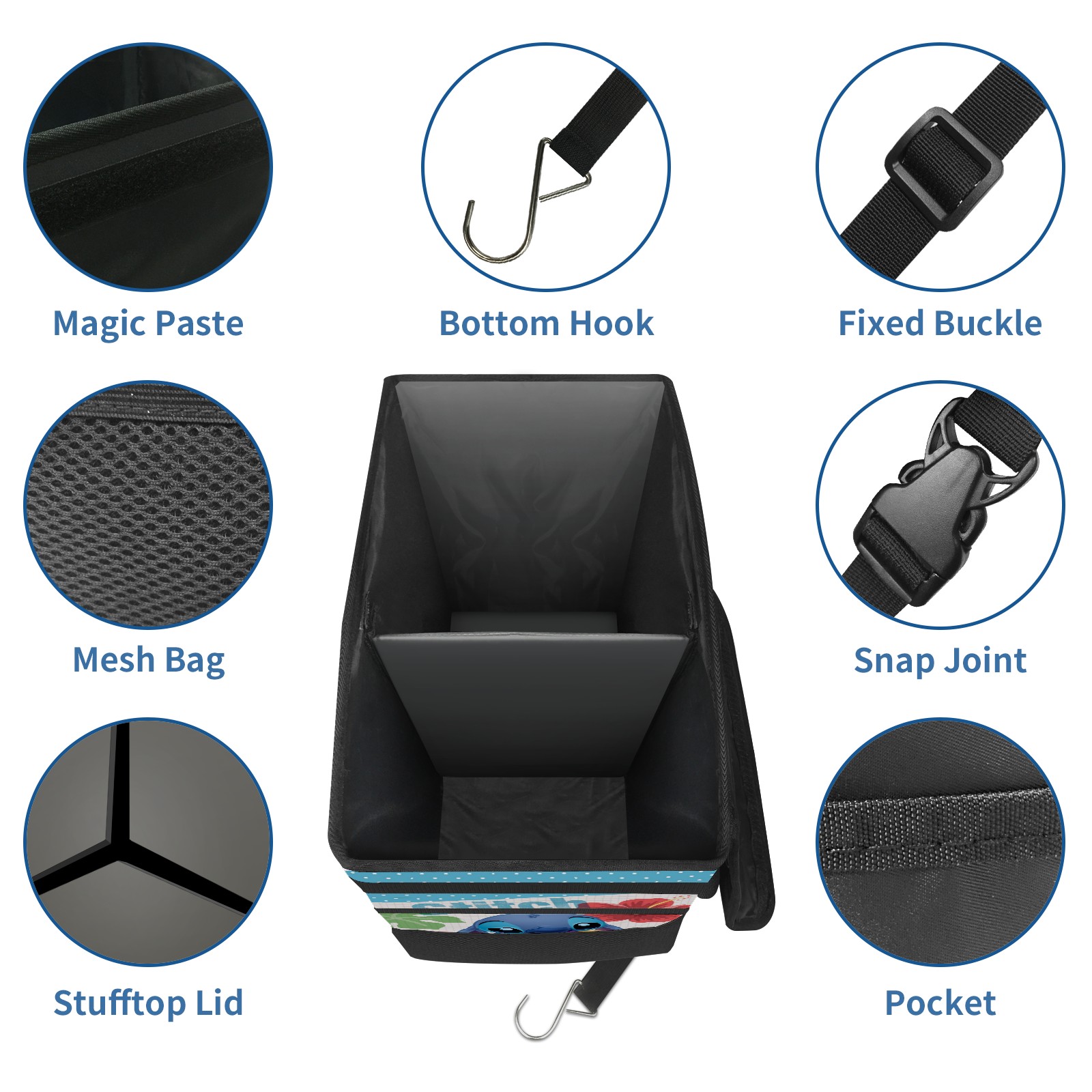 Car Trash Can with Lid, Portable Hanging Automotive Garbage Bin for Vehicles, Leakproof Waste Bag Container for SUV Truck Van Interior Auto Travel Road Trips(Lilo Stich Stitch With Ugly Doll)