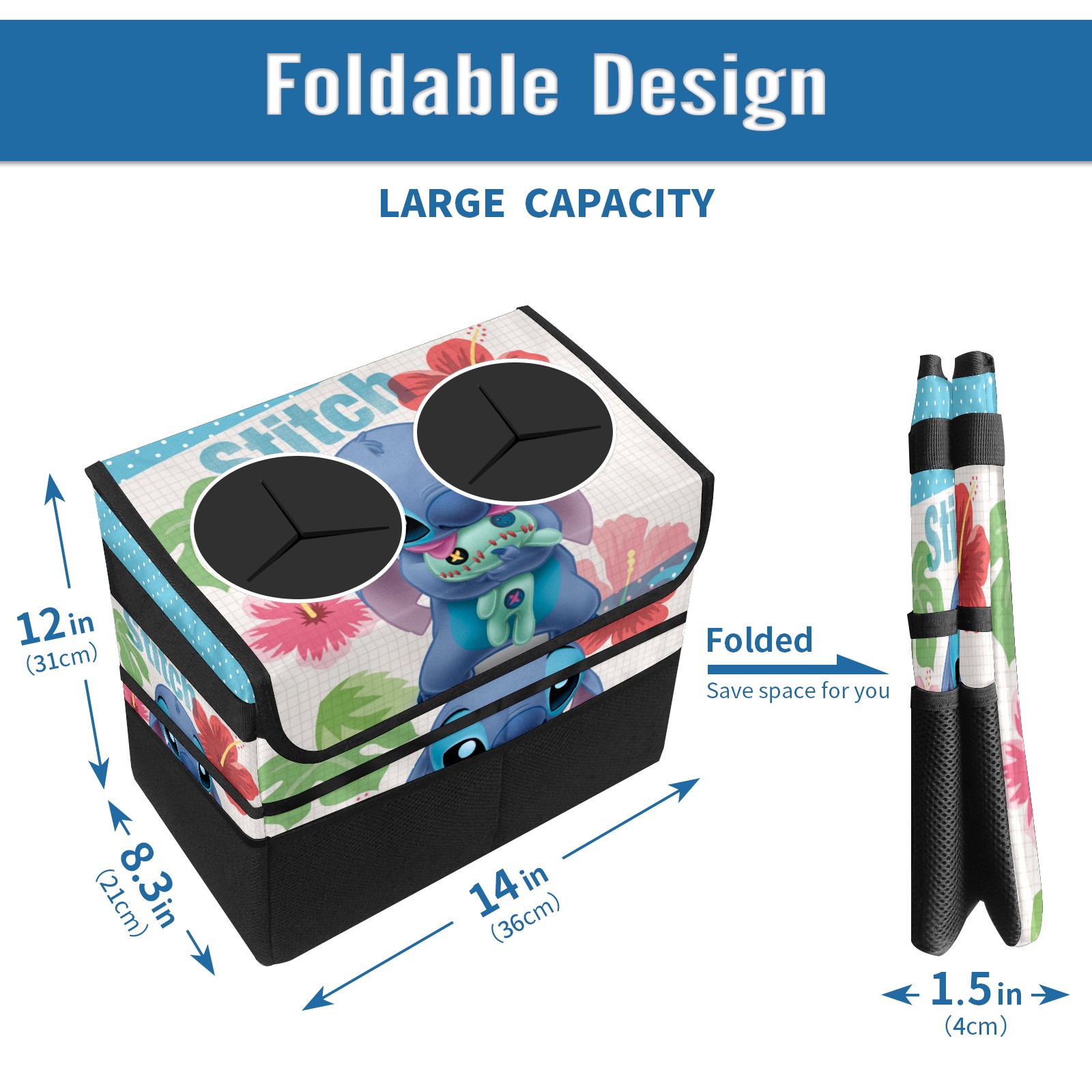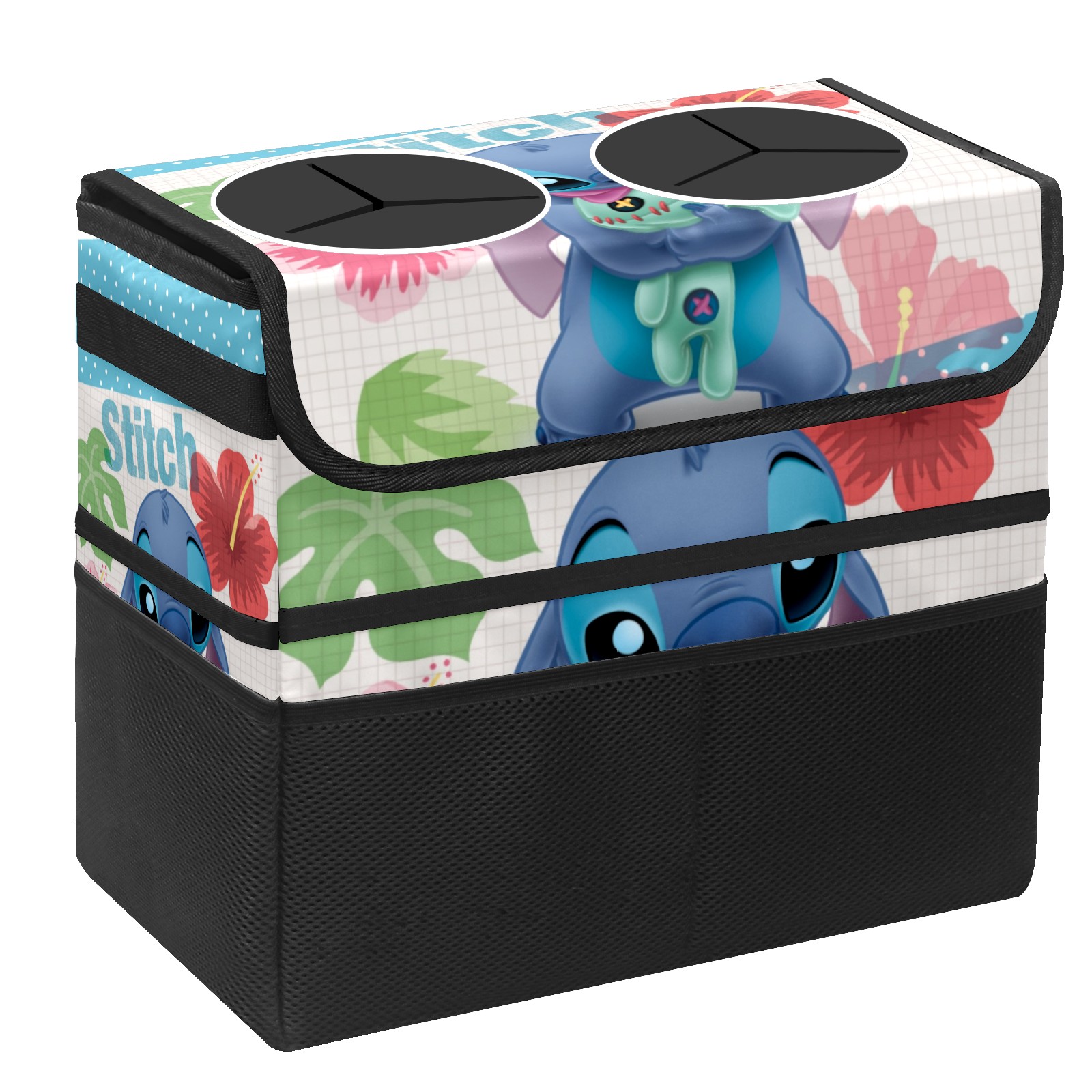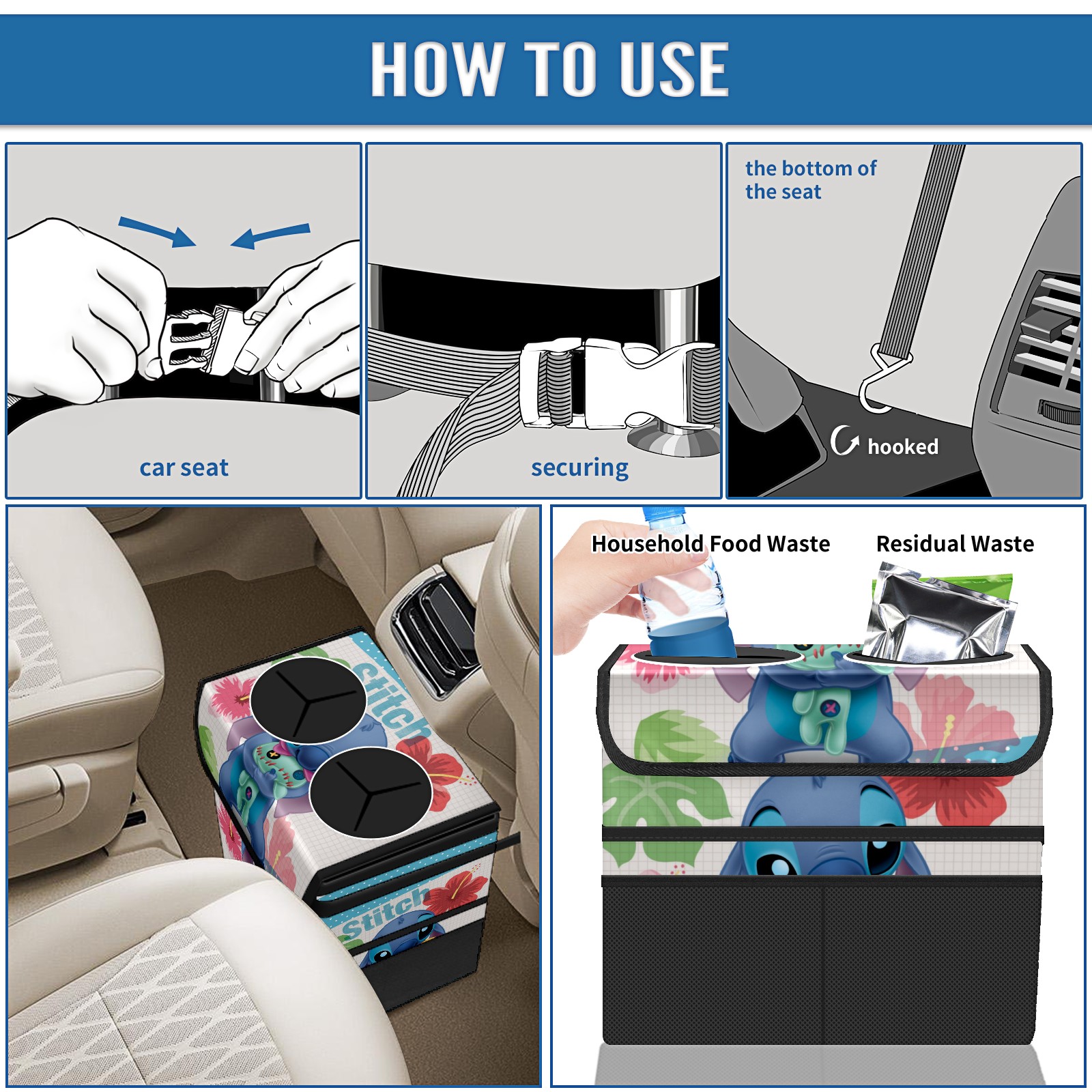 Car Trash Can with Lid, Portable Hanging Automotive Garbage Bin for Vehicles, Leakproof Waste Bag Container for SUV Truck Van Interior Auto Travel Road Trips(Lilo Stich Stitch With Ugly Doll)