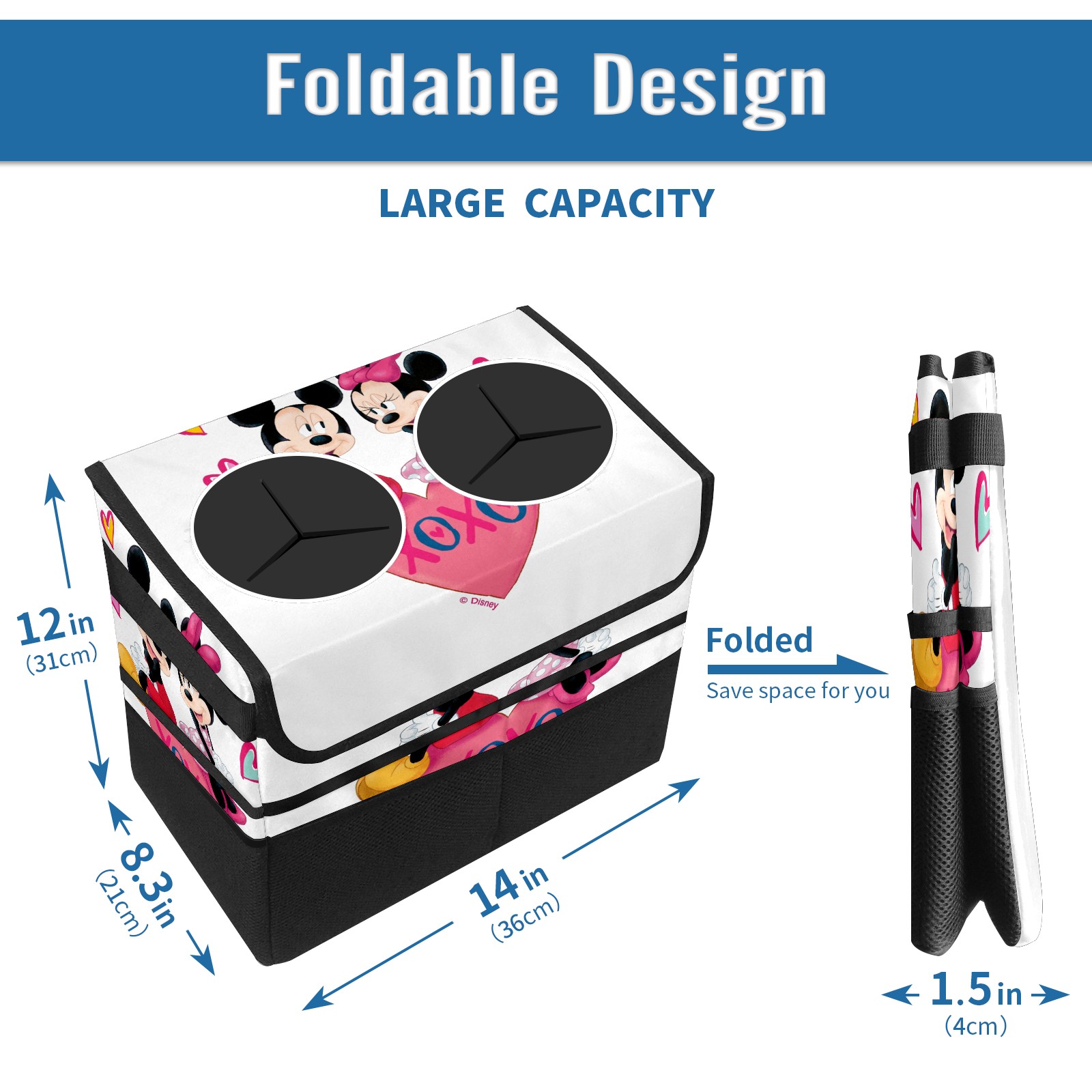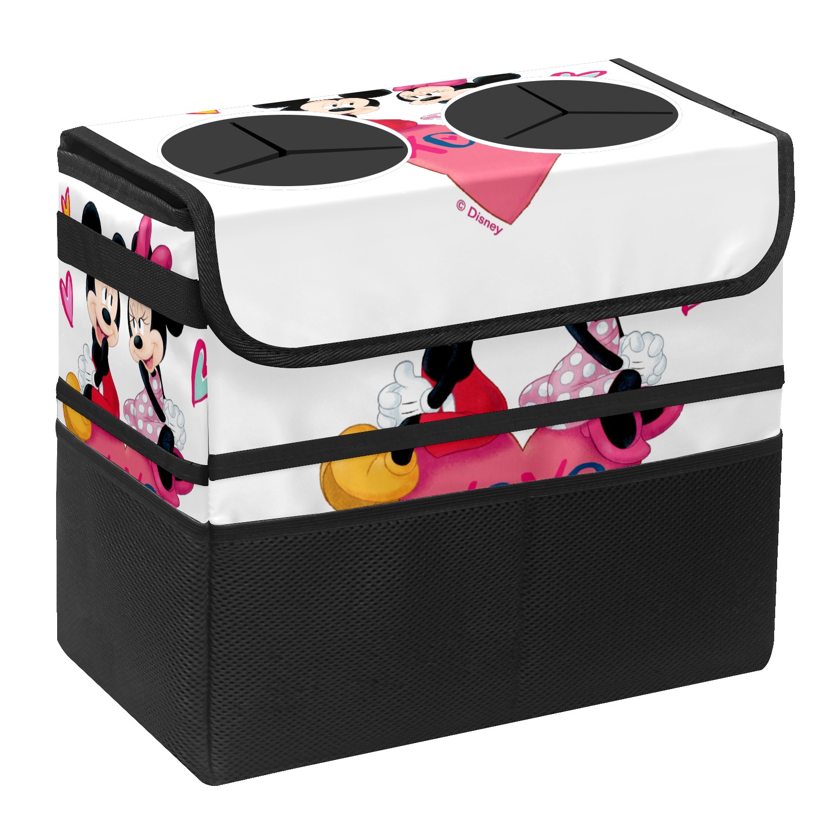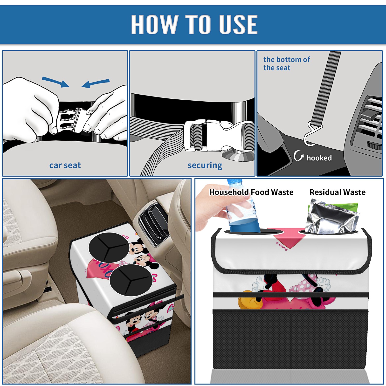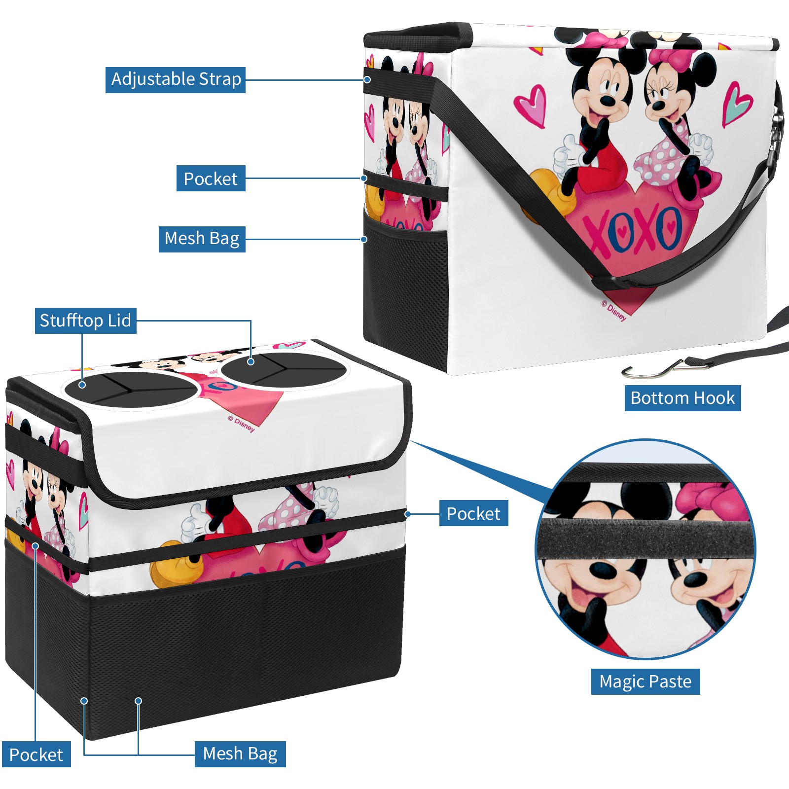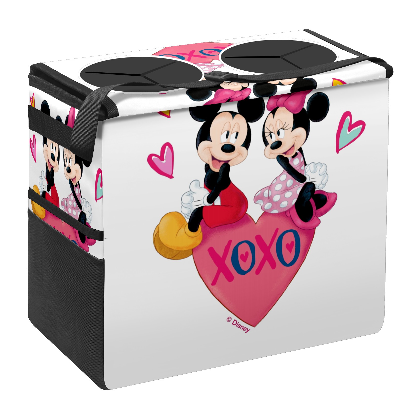 Car Trash Can with Lid, Portable Hanging Automotive Garbage Bin for Vehicles, Leakproof Waste Bag Container for SUV Truck Van Interior Auto Travel Road Trips(Mickey Minnie Valentine's Day)