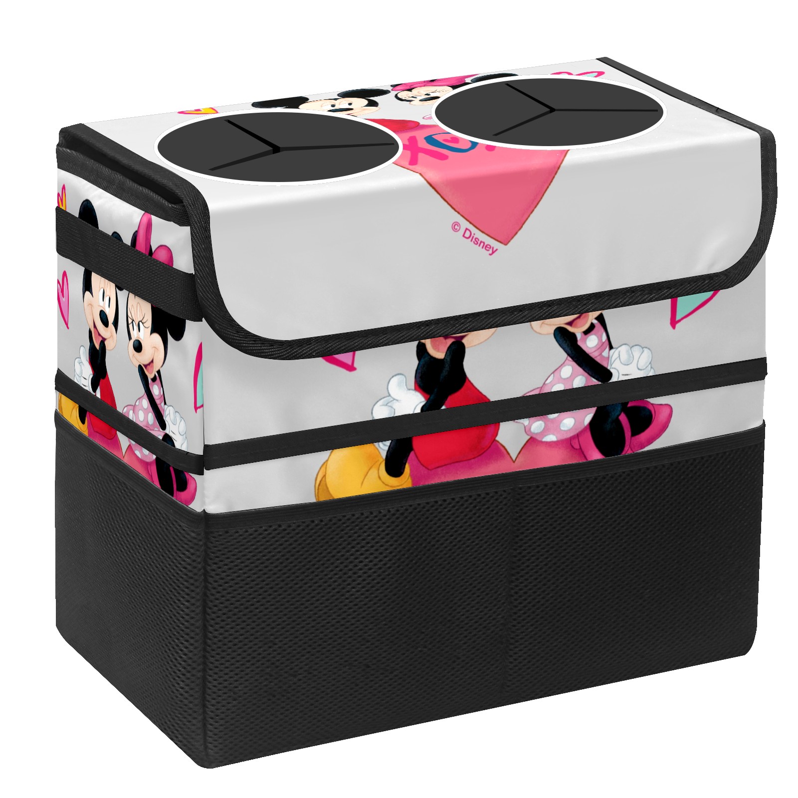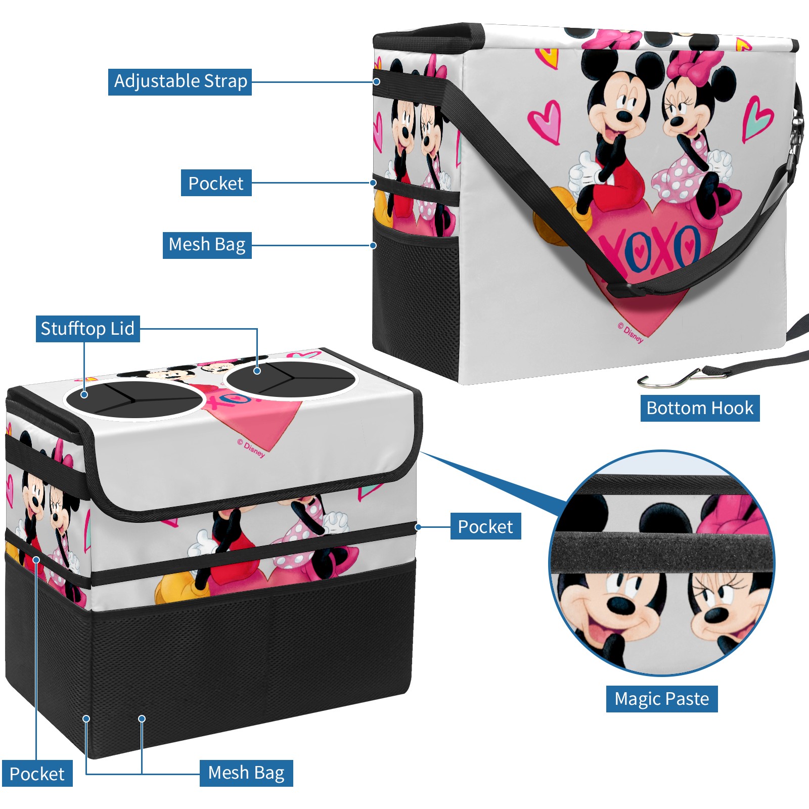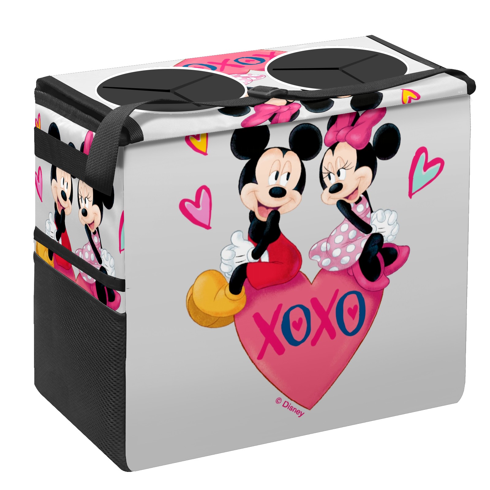 Car Trash Can with Lid, Portable Hanging Automotive Garbage Bin for Vehicles, Leakproof Waste Bag Container for SUV Truck Van Interior Auto Travel Road Trips(Mickey Minnie Valentine's Day Grey)