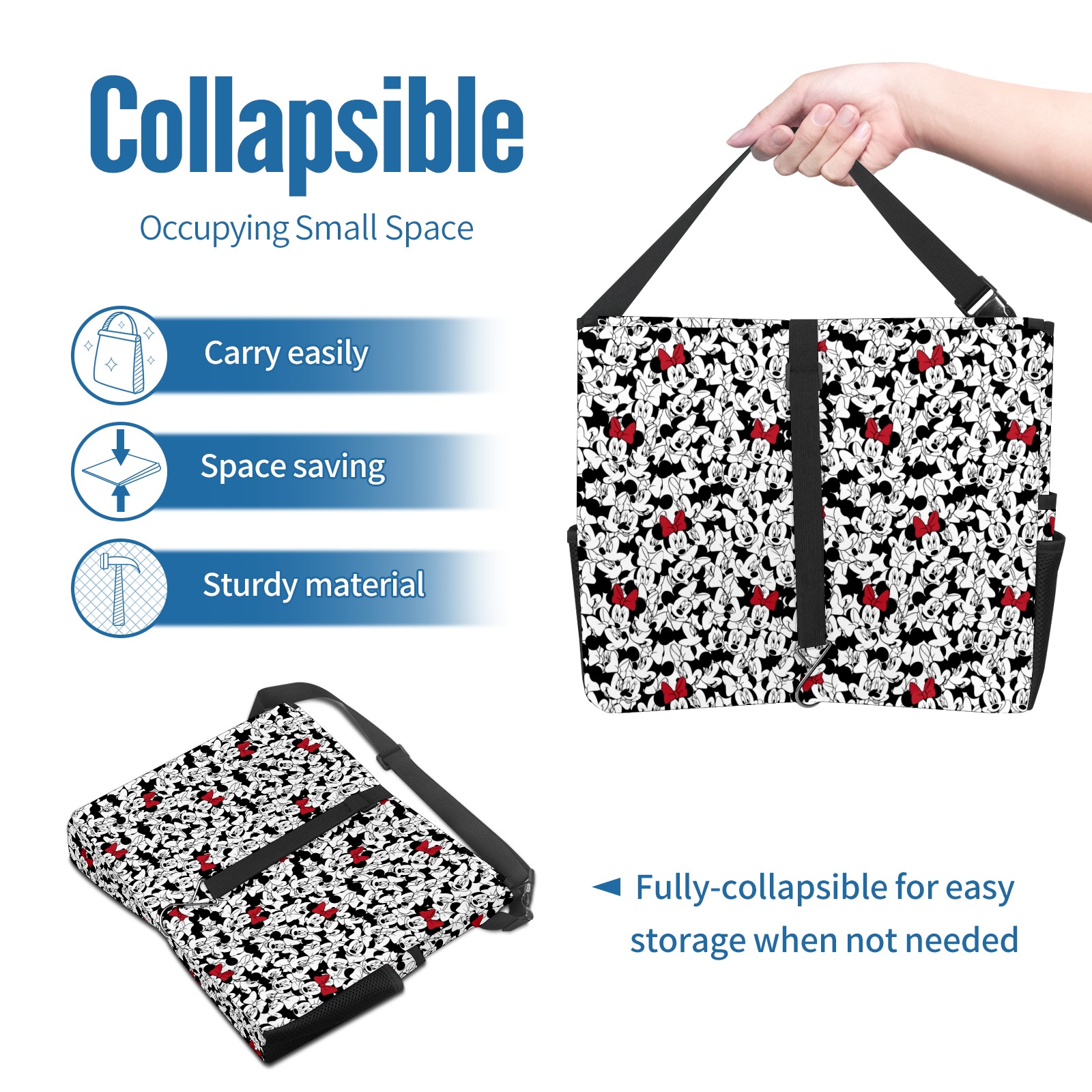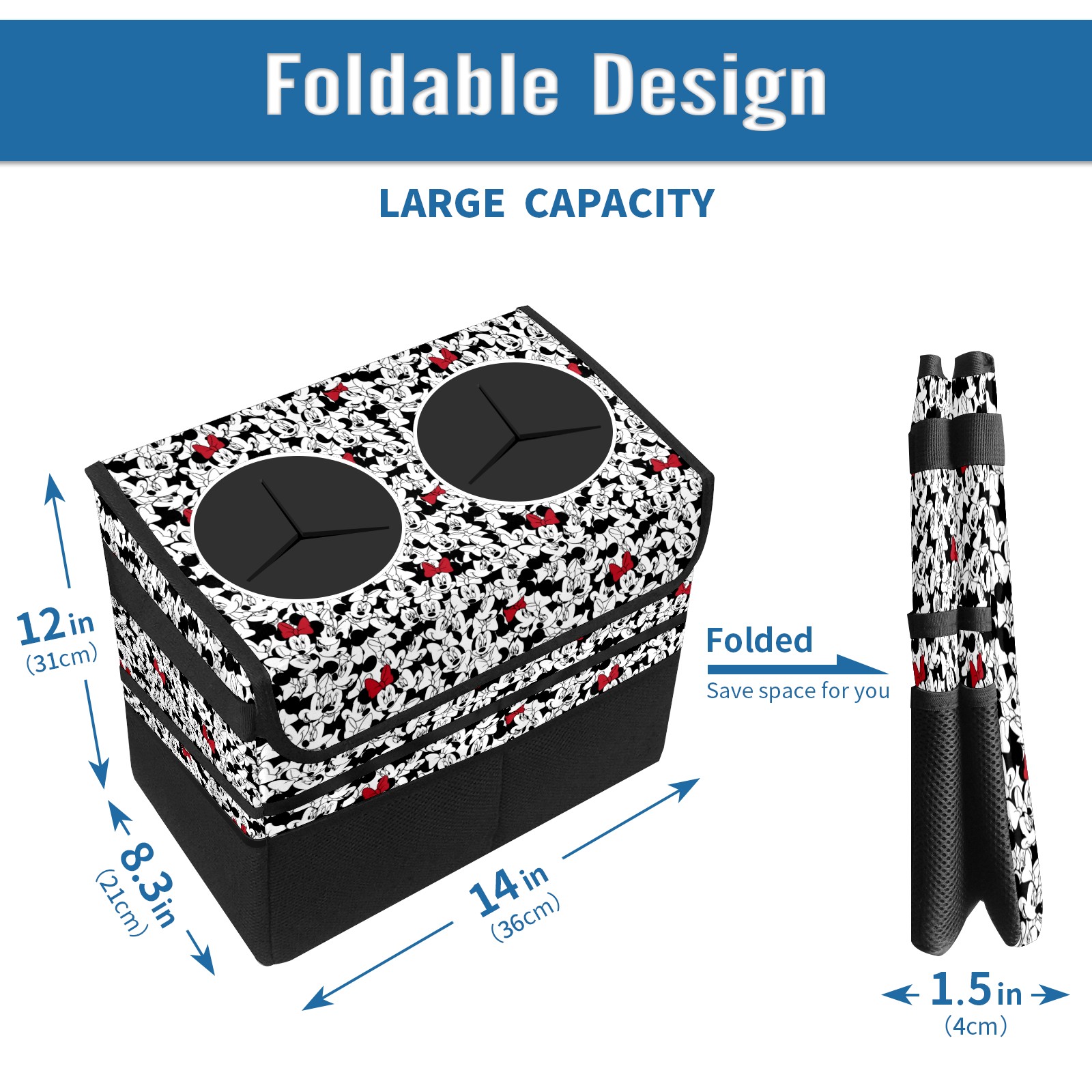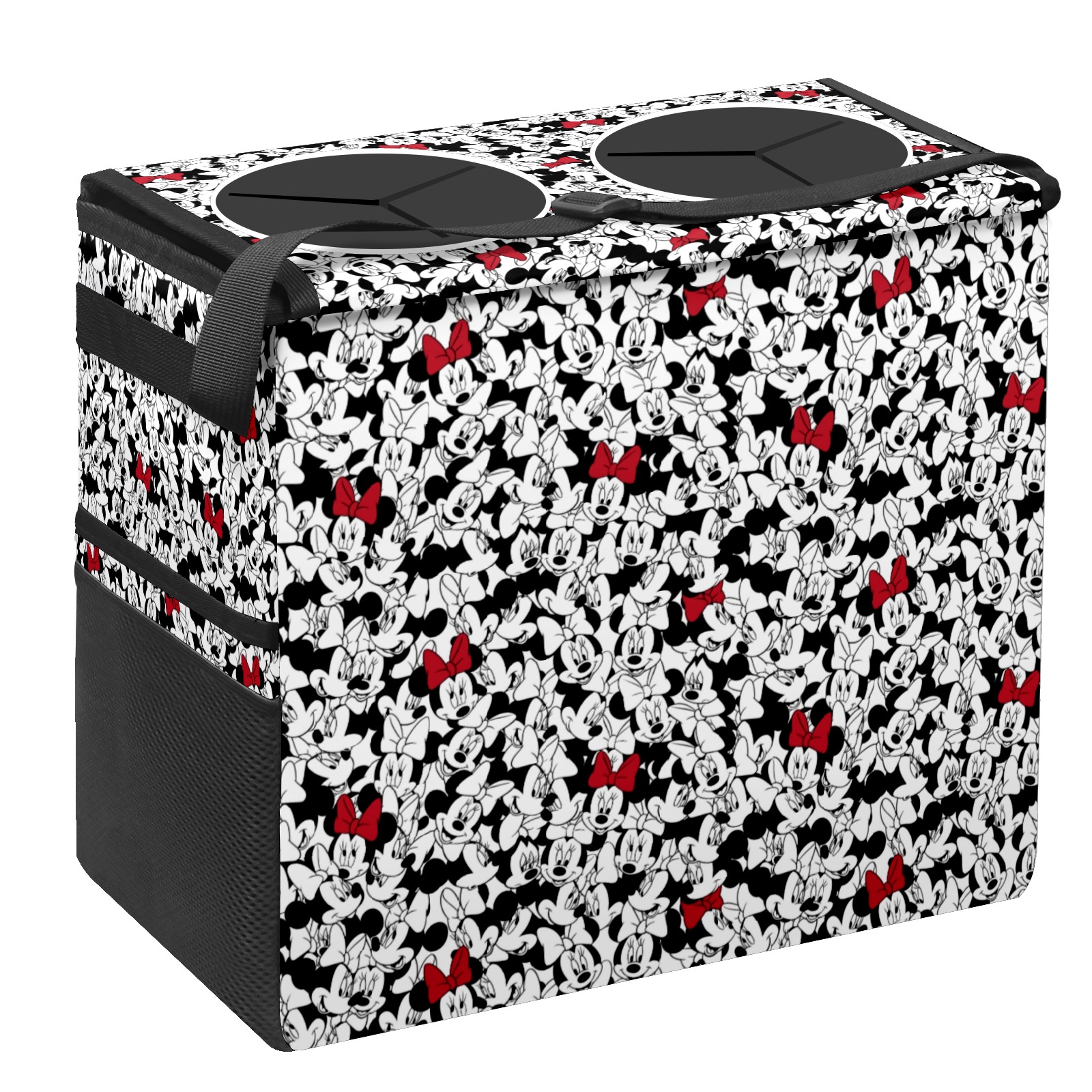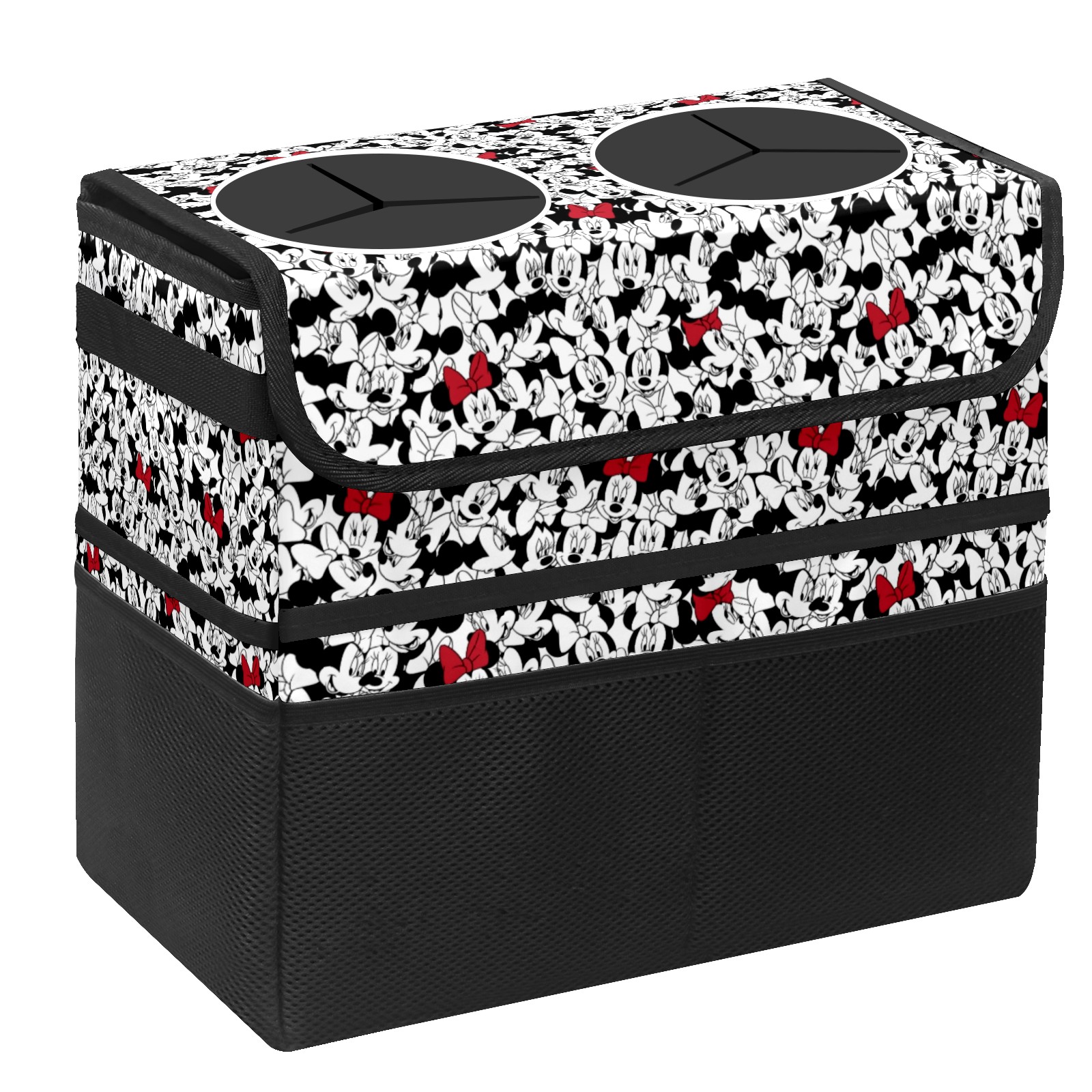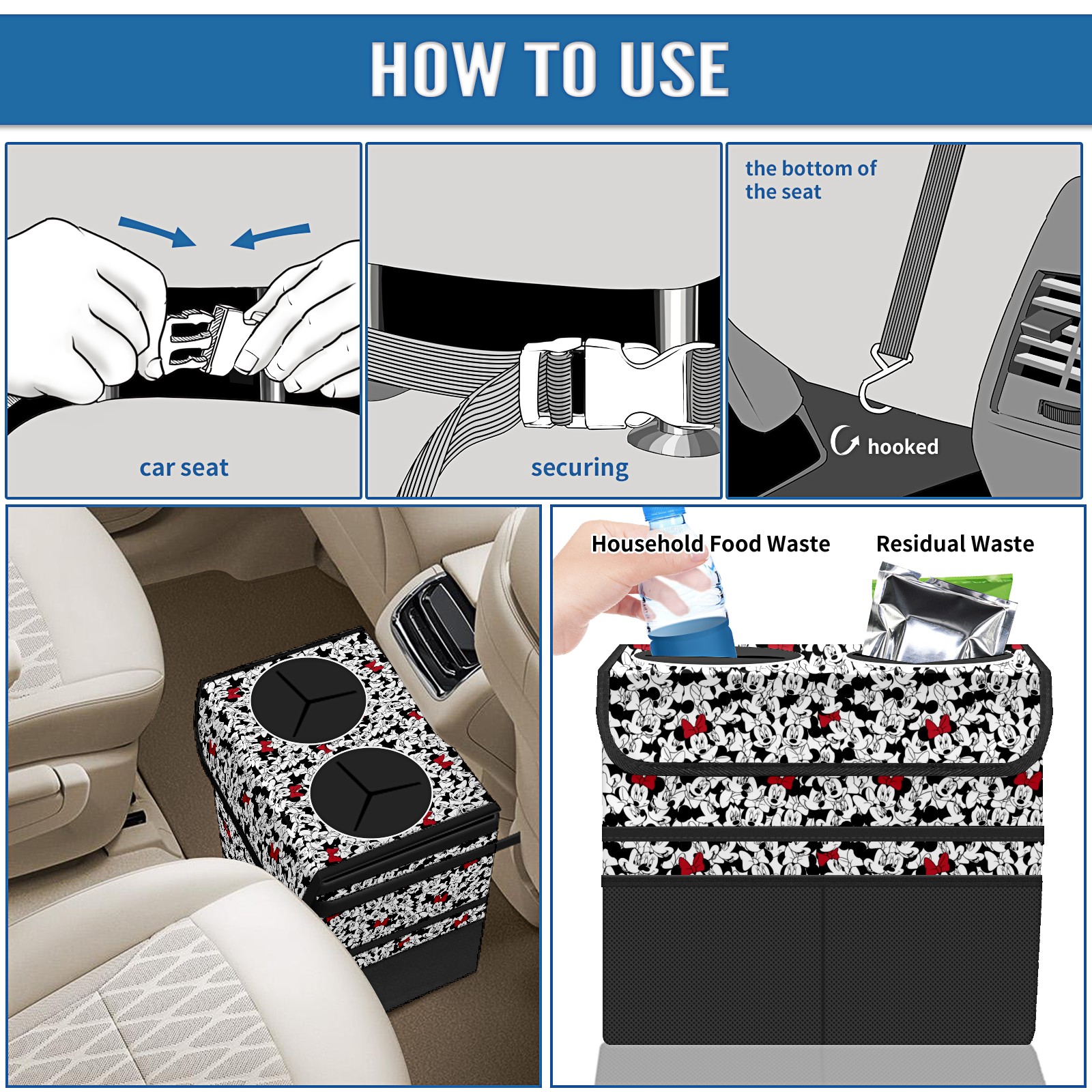 Car Trash Can with Lid, Portable Hanging Automotive Garbage Bin for Vehicles, Leakproof Waste Bag Container for SUV Truck Van Interior Auto Travel Road Trips(Mickey Mouse Minnie Red Bow Pattern)