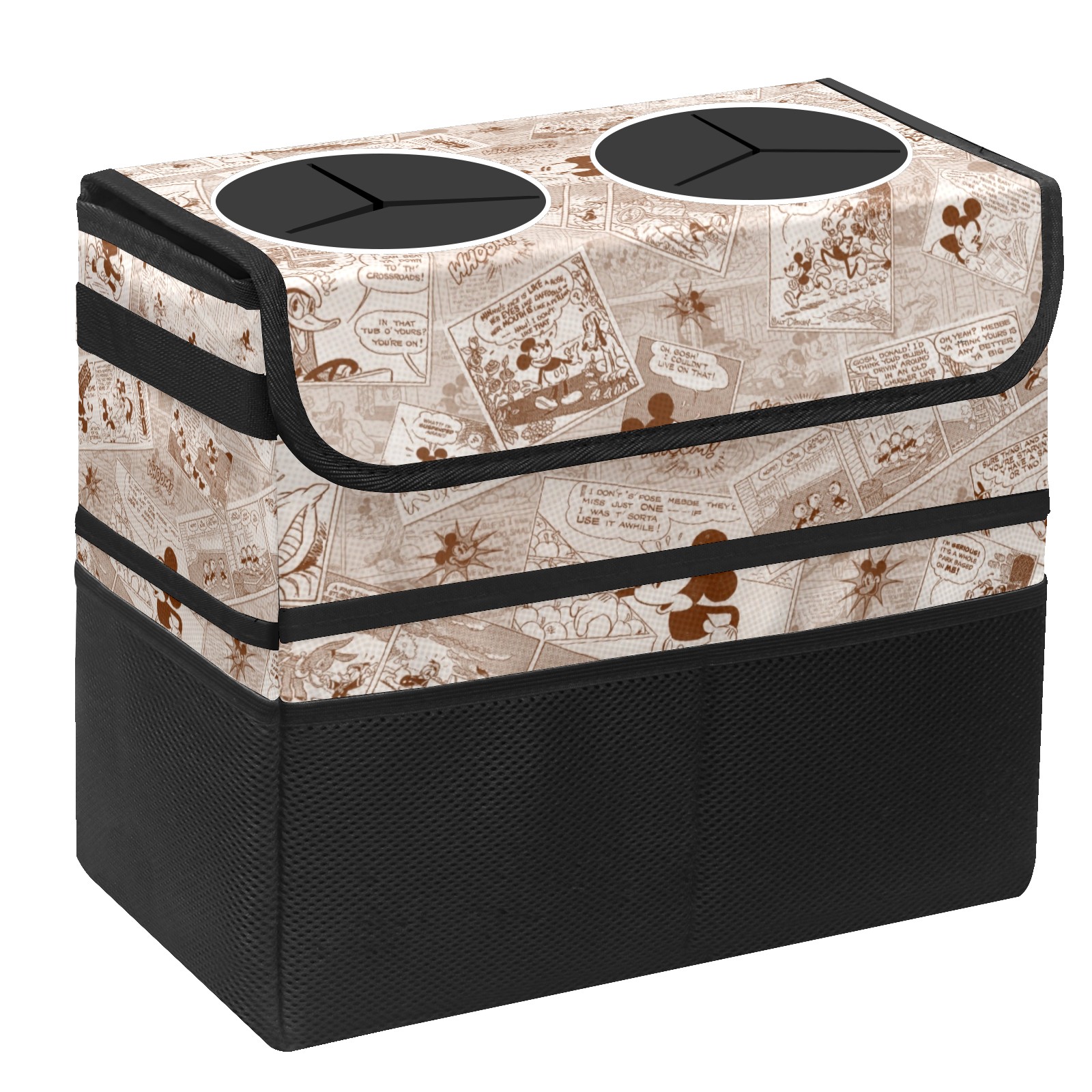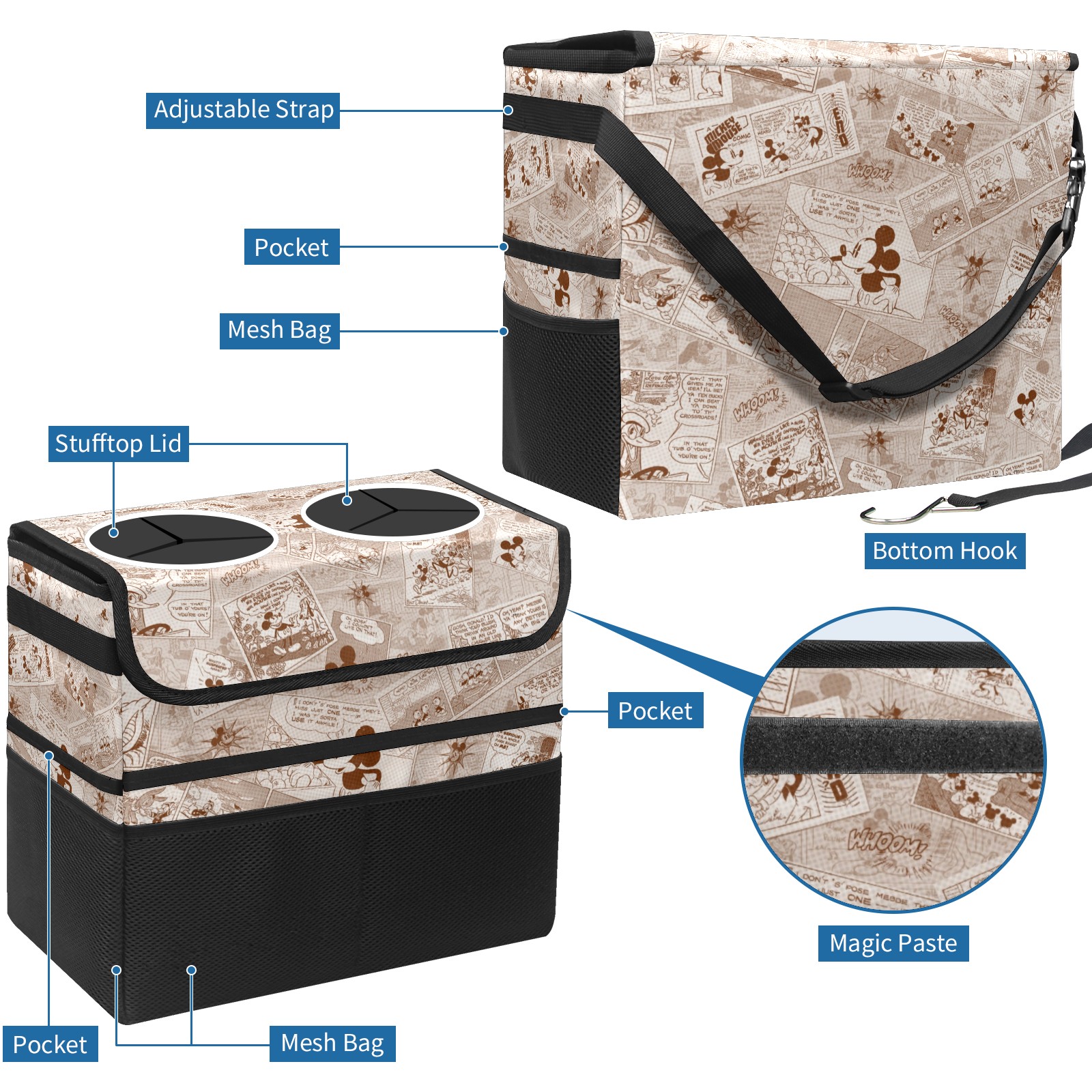 Car Trash Can with Lid, Portable Hanging Automotive Garbage Bin for Vehicles, Leakproof Waste Bag Container for SUV Truck Van Interior Auto Travel Road Trips(Mickey Mouse Antique Mickey)