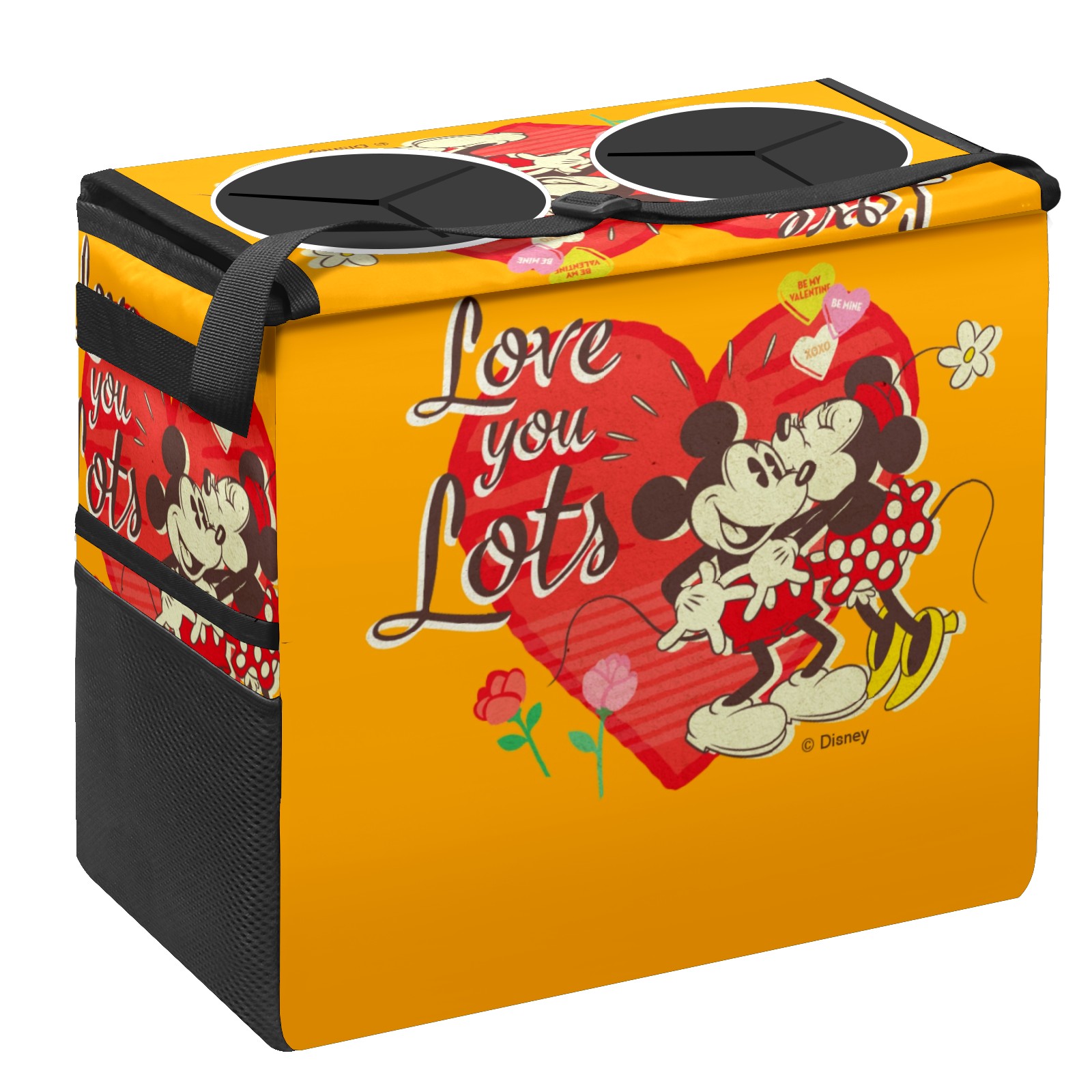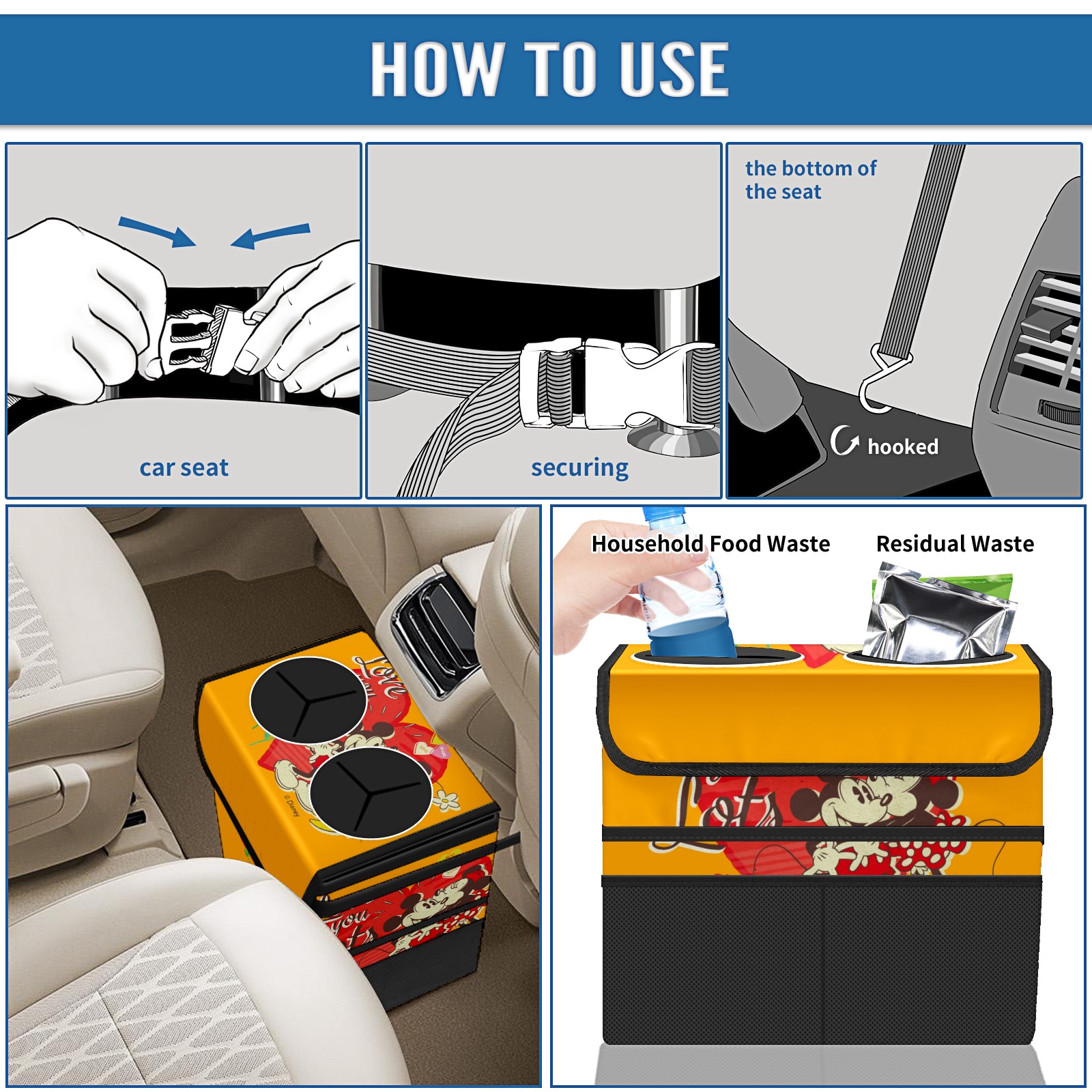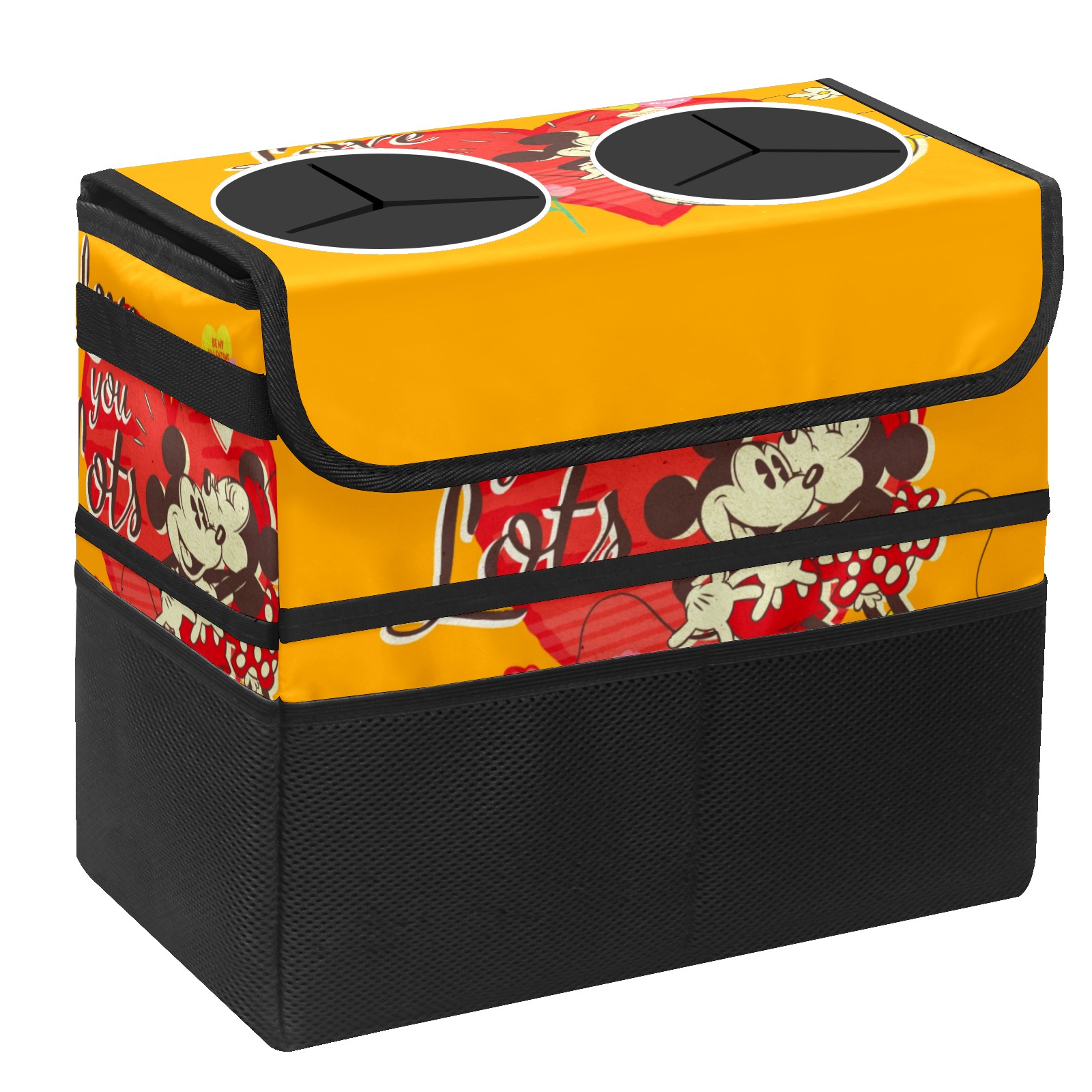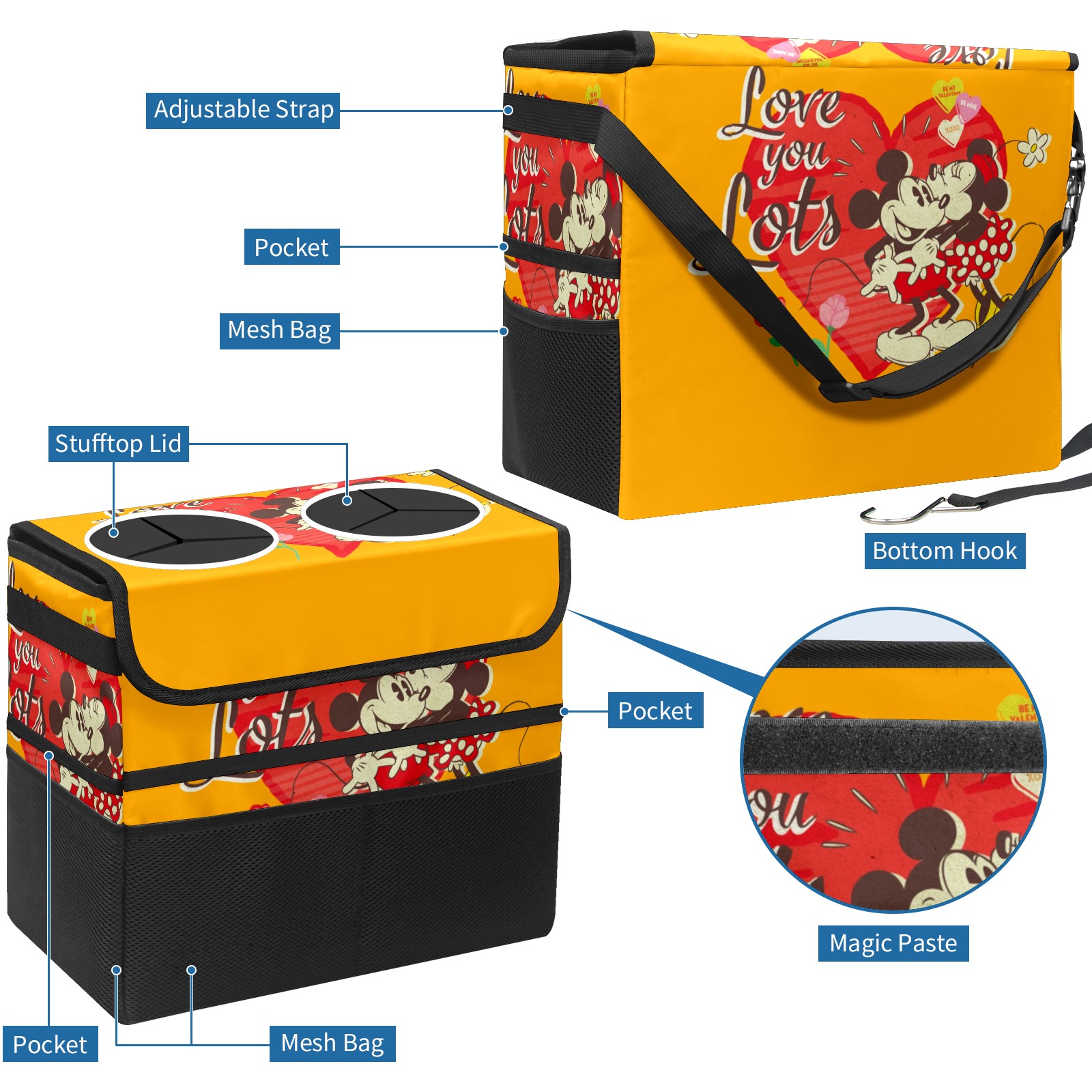 Car Trash Can with Lid, Portable Hanging Automotive Garbage Bin for Vehicles, Leakproof Waste Bag Container for SUV Truck Van Interior Auto Travel Road Trips(Vintage Mickey Minnie Love You Lots Yellow)