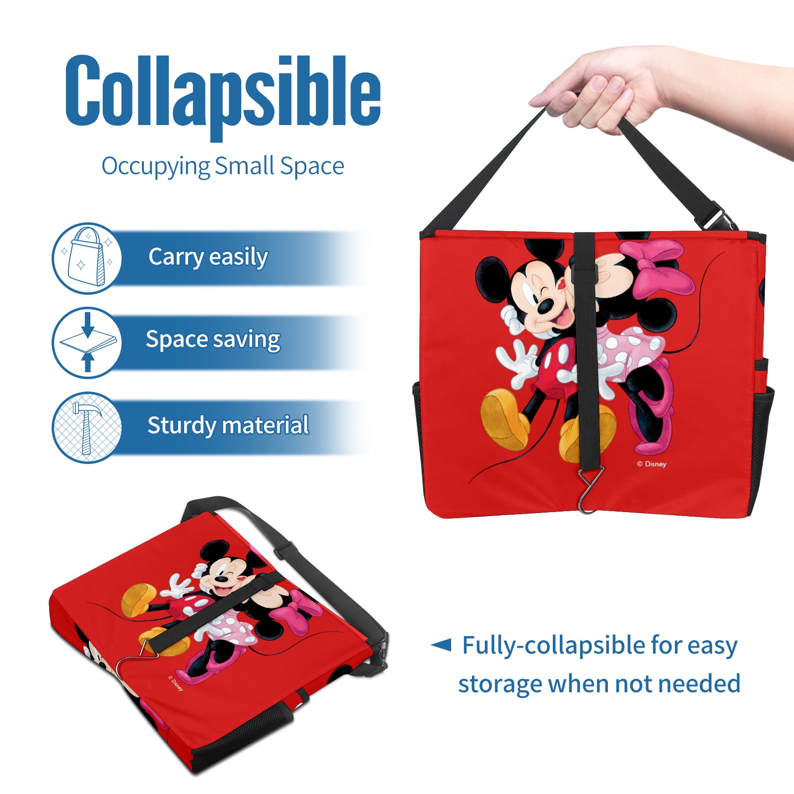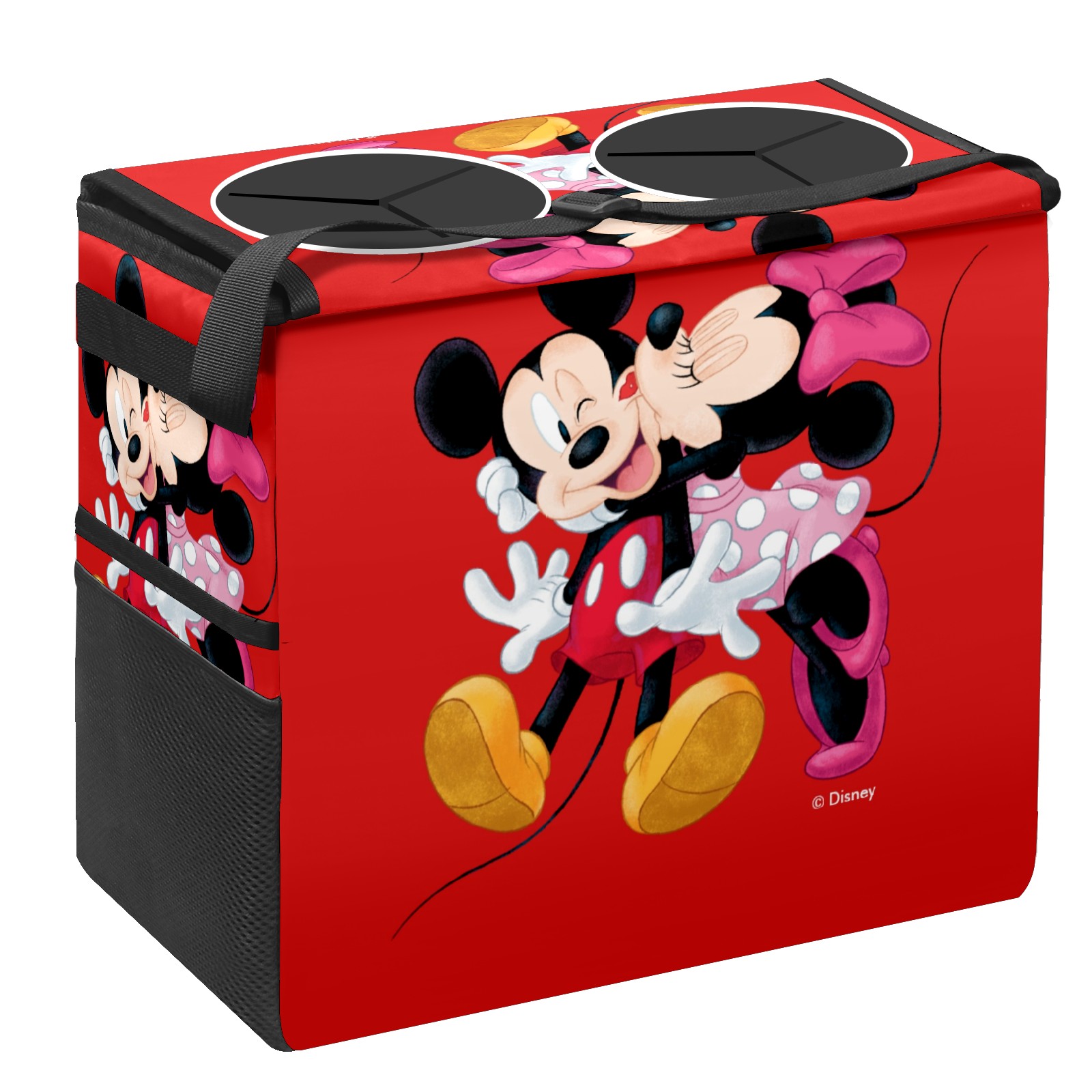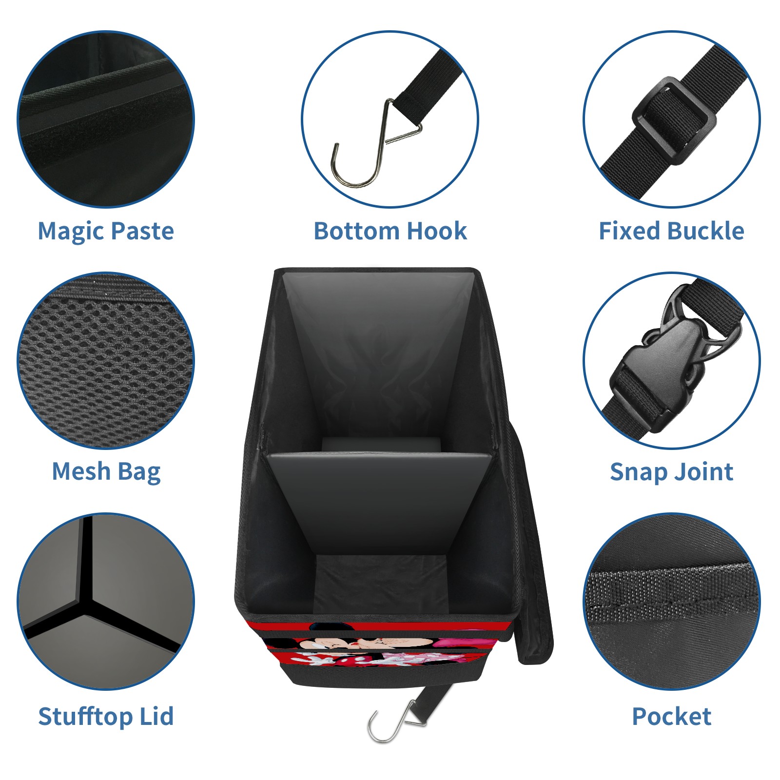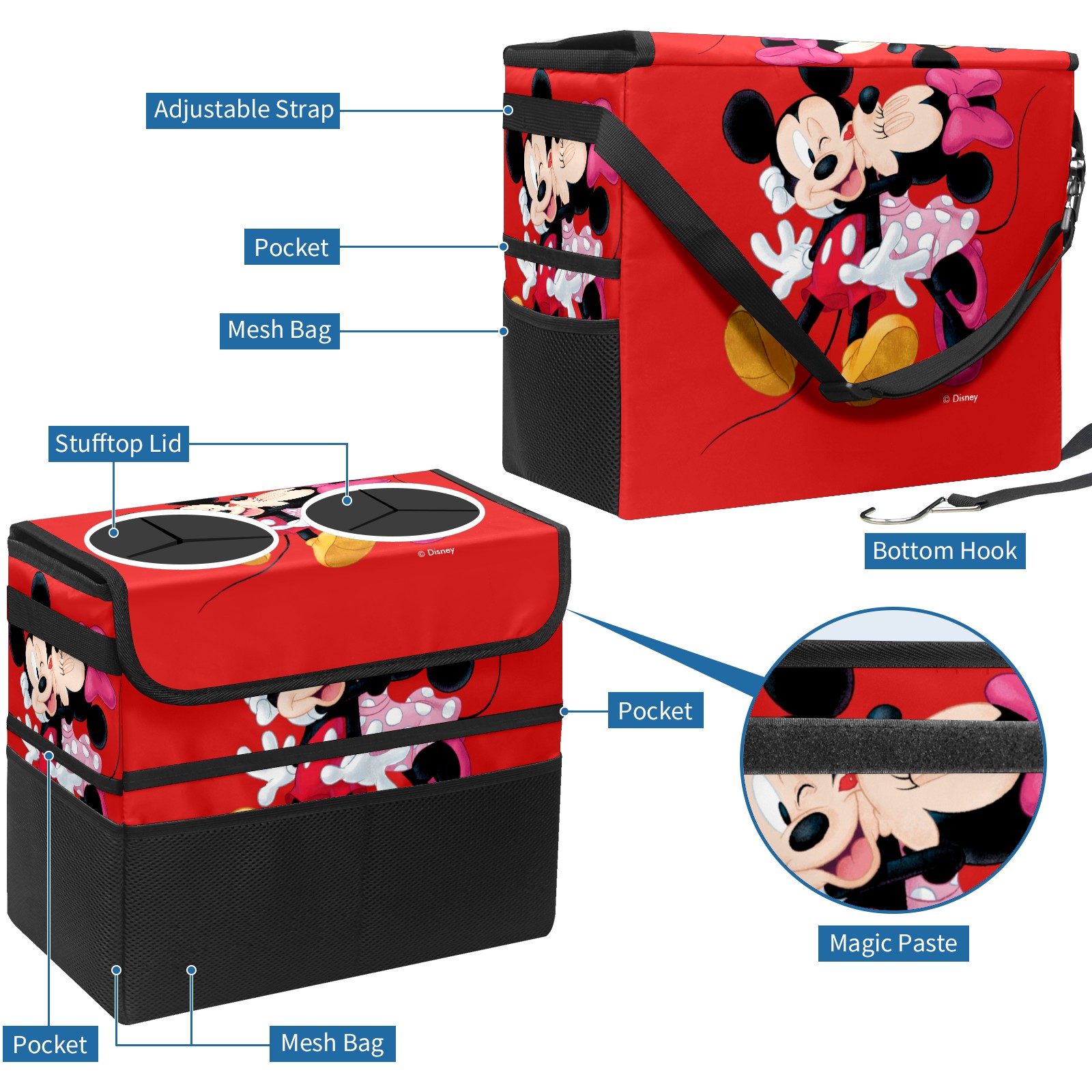 Car Trash Can with Lid, Portable Hanging Automotive Garbage Bin for Vehicles, Leakproof Waste Bag Container for SUV Truck Van Interior Auto Travel Road Trips(Mickey And Minnie Valentine's Day Red)