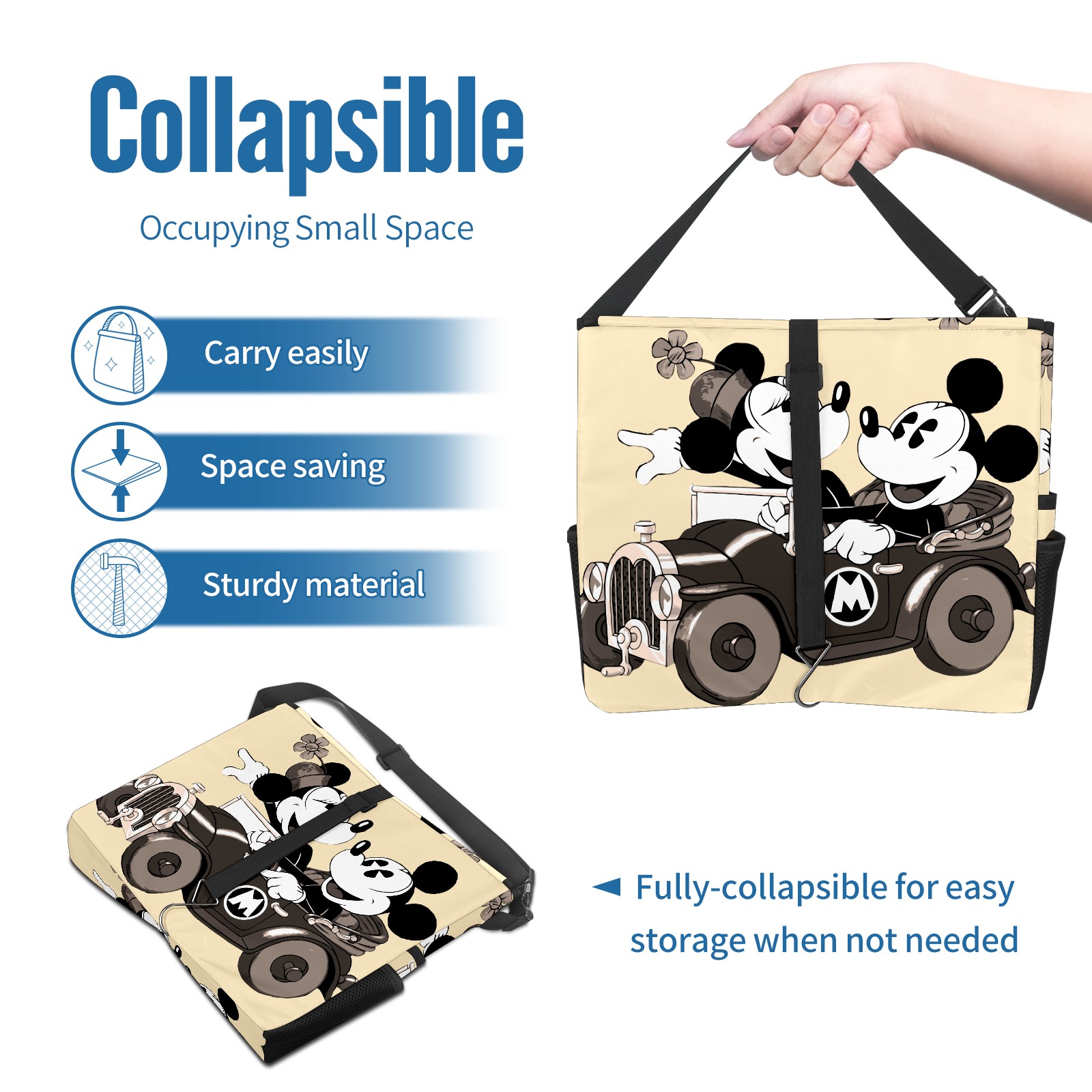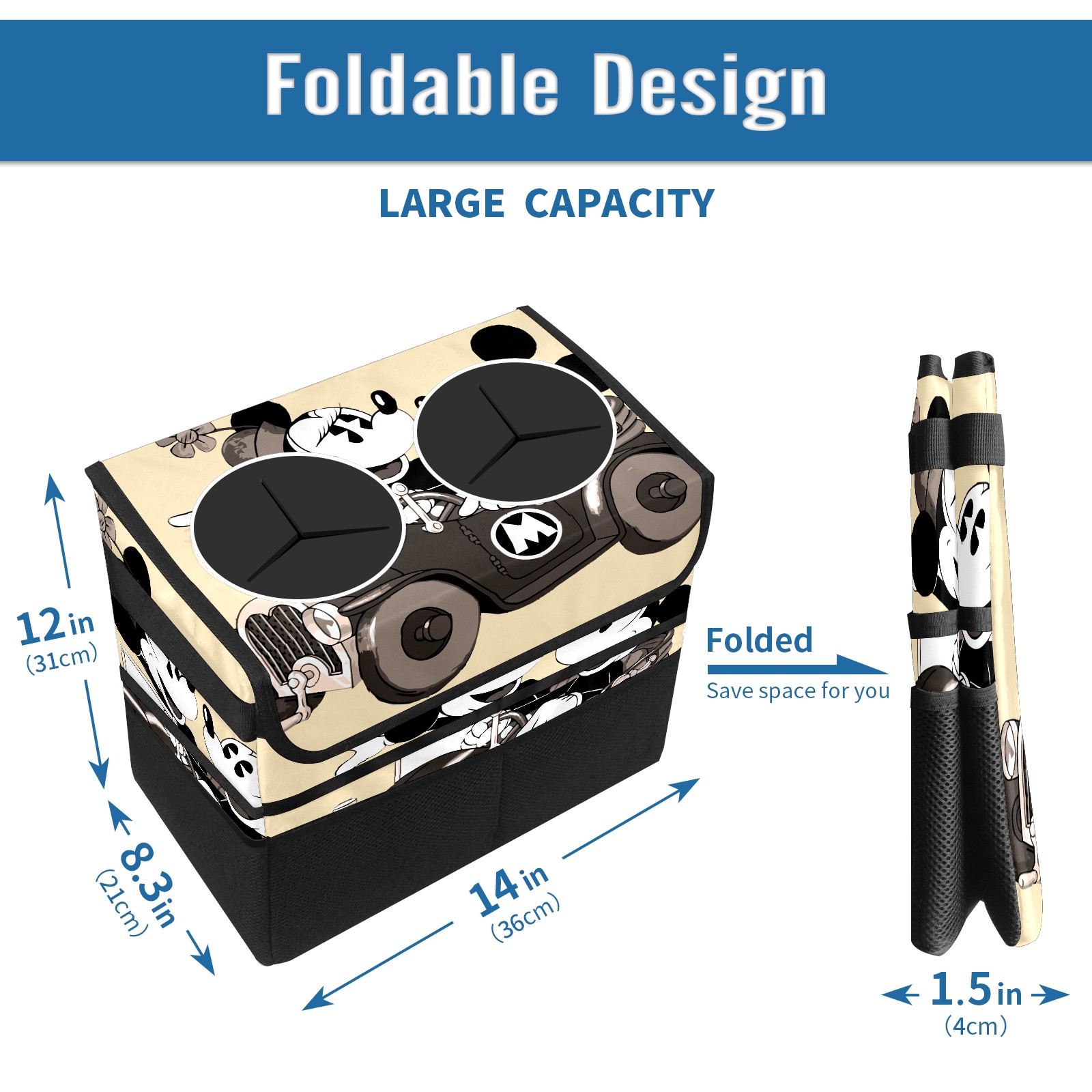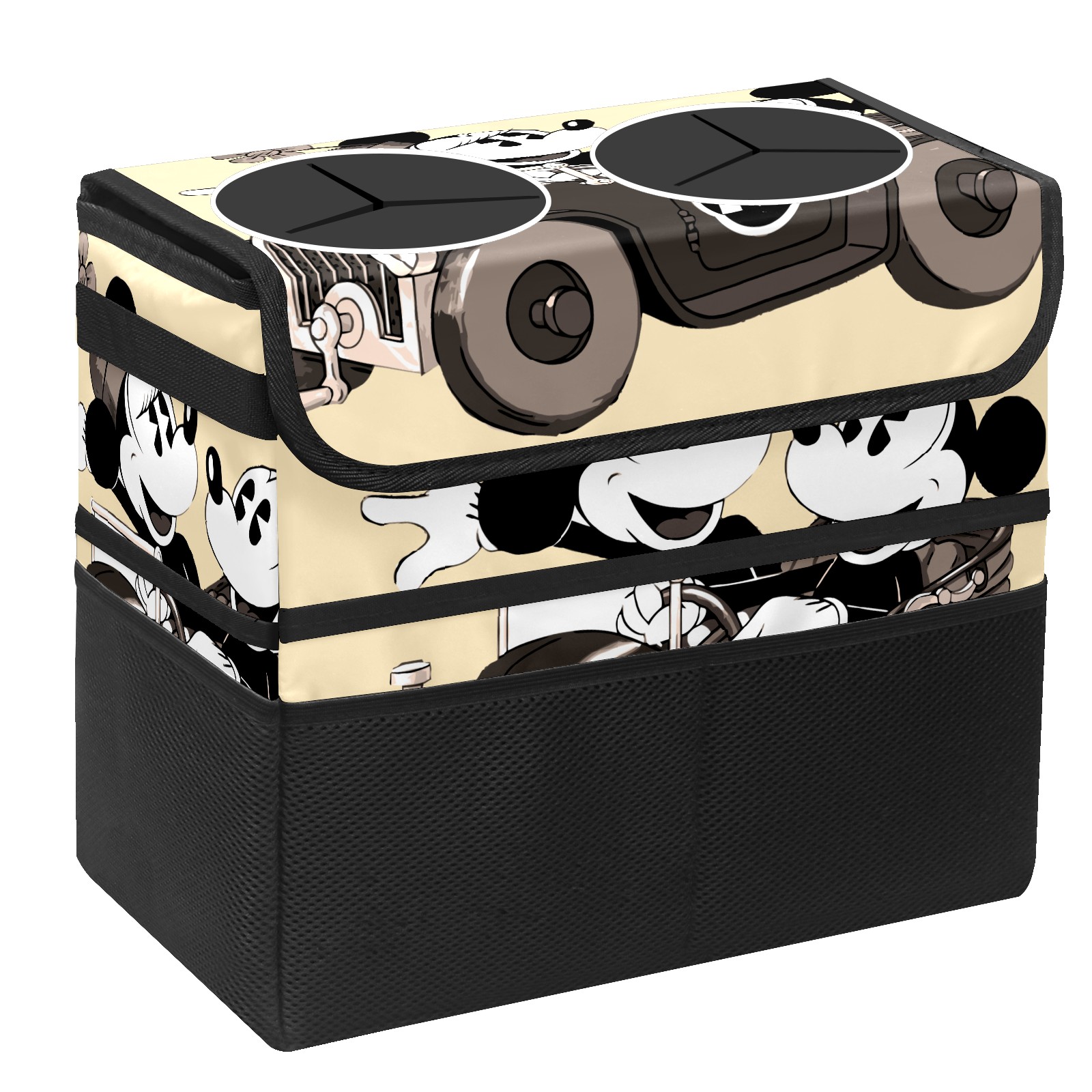 Car Trash Can with Lid, Portable Hanging Automotive Garbage Bin for Vehicles, Leakproof Waste Bag Container for SUV Truck Van Interior Auto Travel Road Trips(Retro-Cartoon Mickey Mouse)