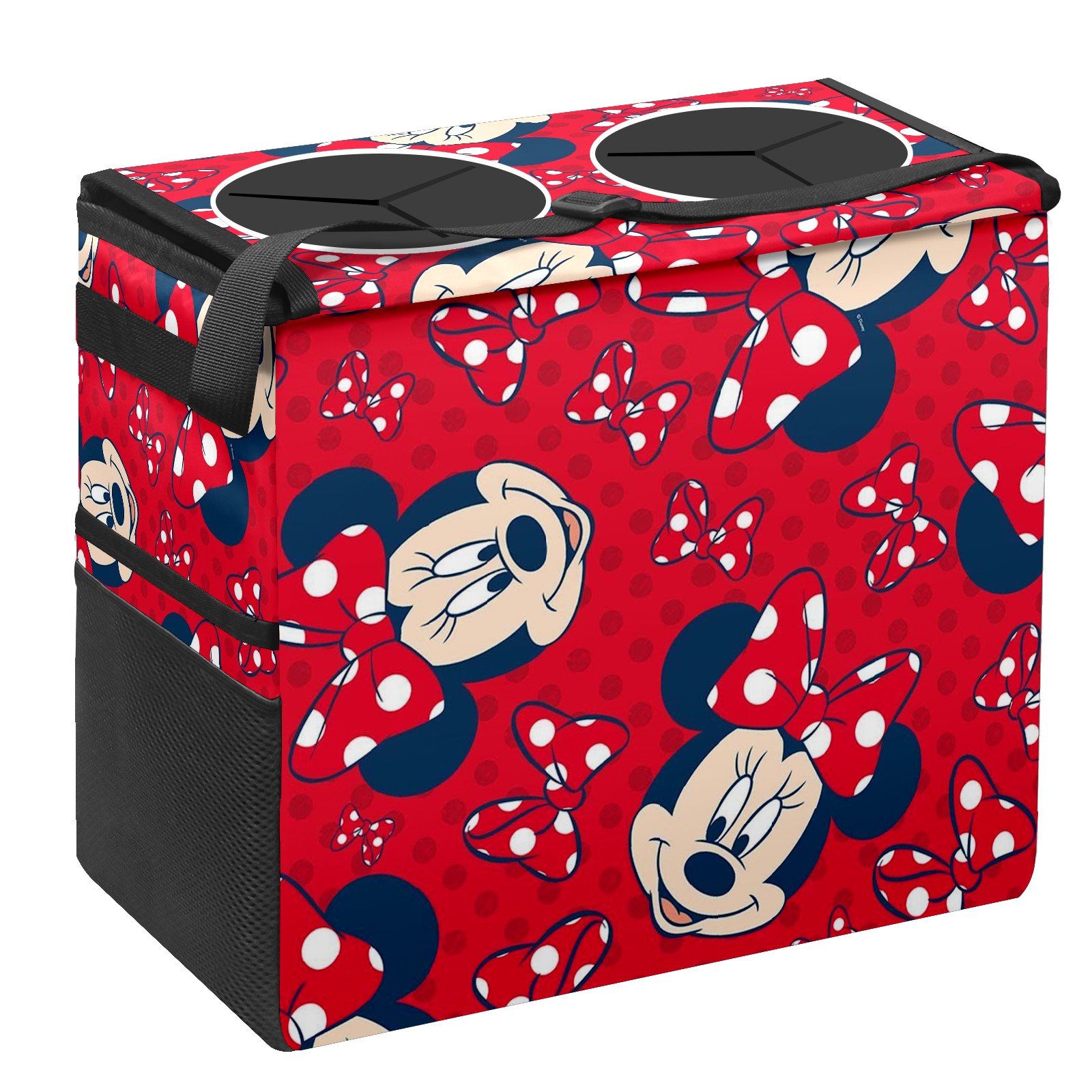 Car Trash Can with Lid, Portable Hanging Automotive Garbage Bin for Vehicles, Leakproof Waste Bag Container for SUV Truck Van Interior Auto Travel Road Trips(Mickey Mouse Minnie With Bow)