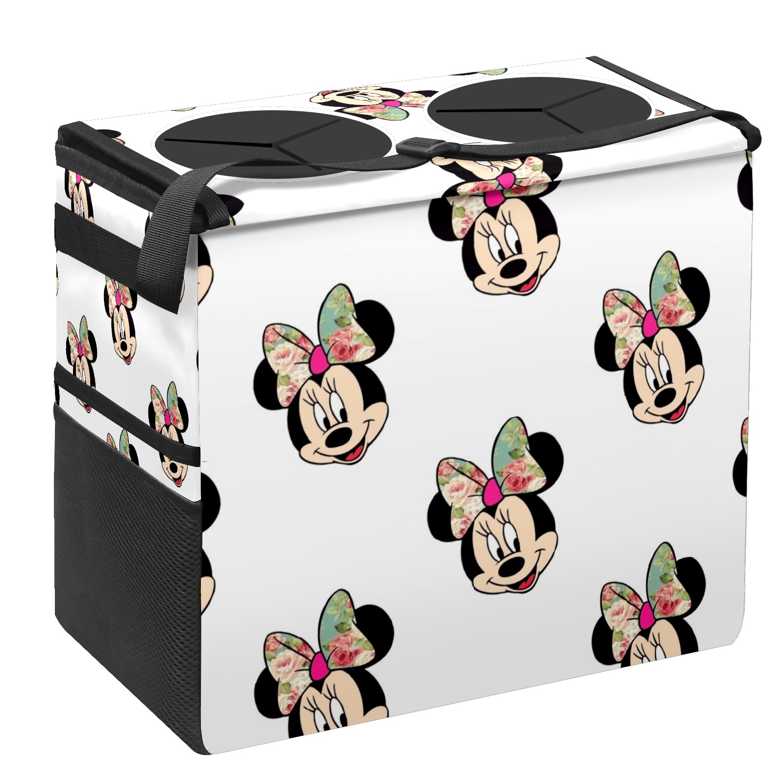Car Trash Can with Lid, Portable Hanging Automotive Garbage Bin for Vehicles, Leakproof Waste Bag Container for SUV Truck Van Interior Auto Travel Road Trips(Mickey Mouse Minnie With Bow (1))