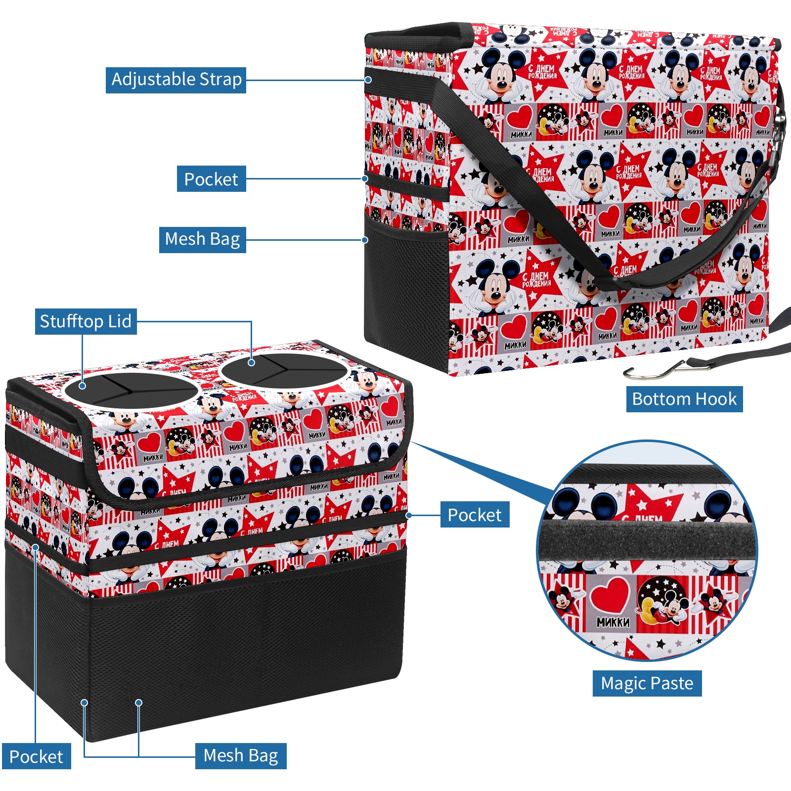 Car Trash Can with Lid, Portable Hanging Automotive Garbage Bin for Vehicles, Leakproof Waste Bag Container for SUV Truck Van Interior Auto Travel Road Trips(Mickey Mouse)