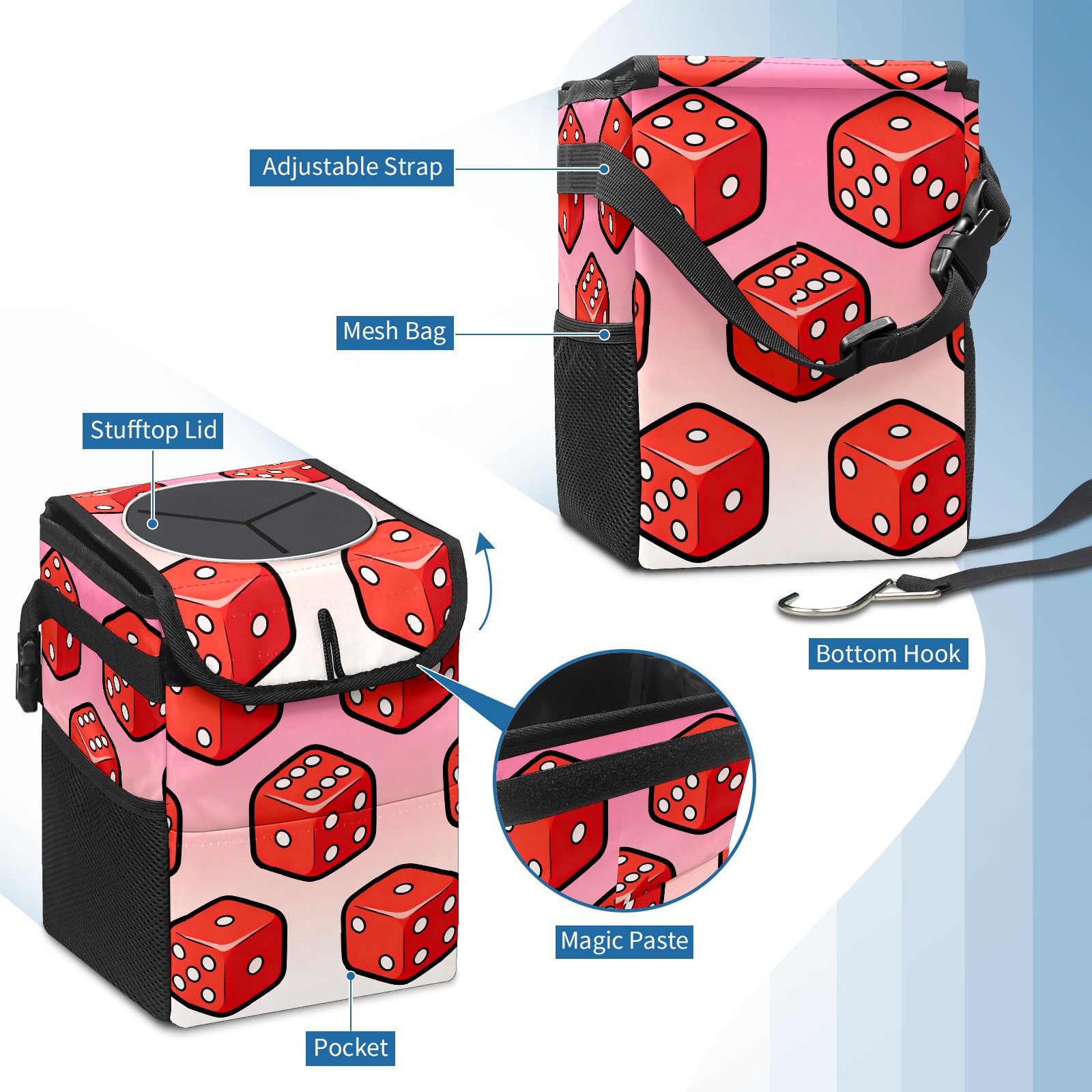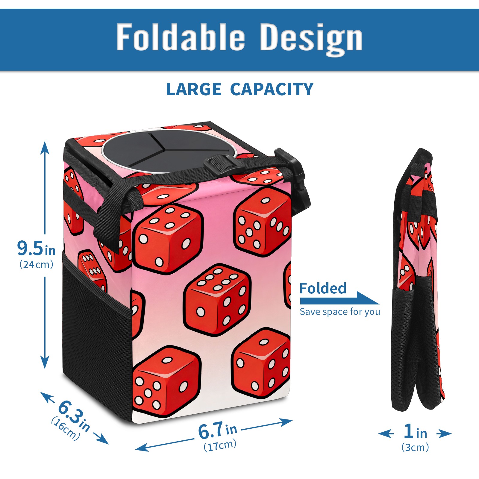 • Эта многофункциональная автомобильная мусорная корзина отличается стильным принтом, сочетающим в себе практичность и эстетику. Изготовленная из высококачественной саржевой ткани с плетеными ремнями, она прочная, долговечная и износостойкая. Размеры корзины составляют 24×17×16 см (9,5×6,7×6,3 дюйма). Верхнее отверстие имеет прорезиненное покрытие для удобной утилизации мусора; боковые сетчатые карманы и передний карман обеспечивают удобное хранение закусок, телефонов и других мелких предметов.