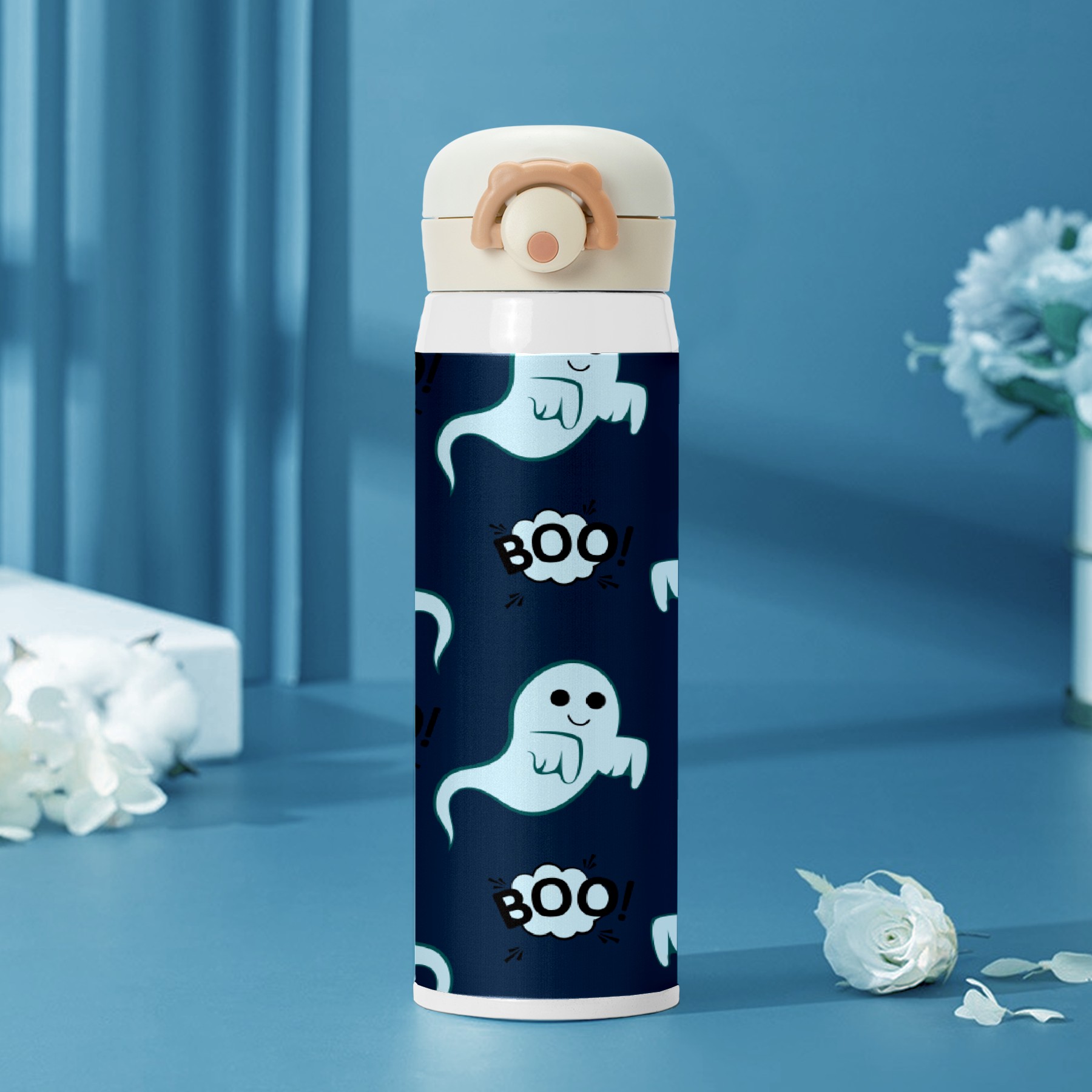 Halloween Ghosts Boo Blue Pattern