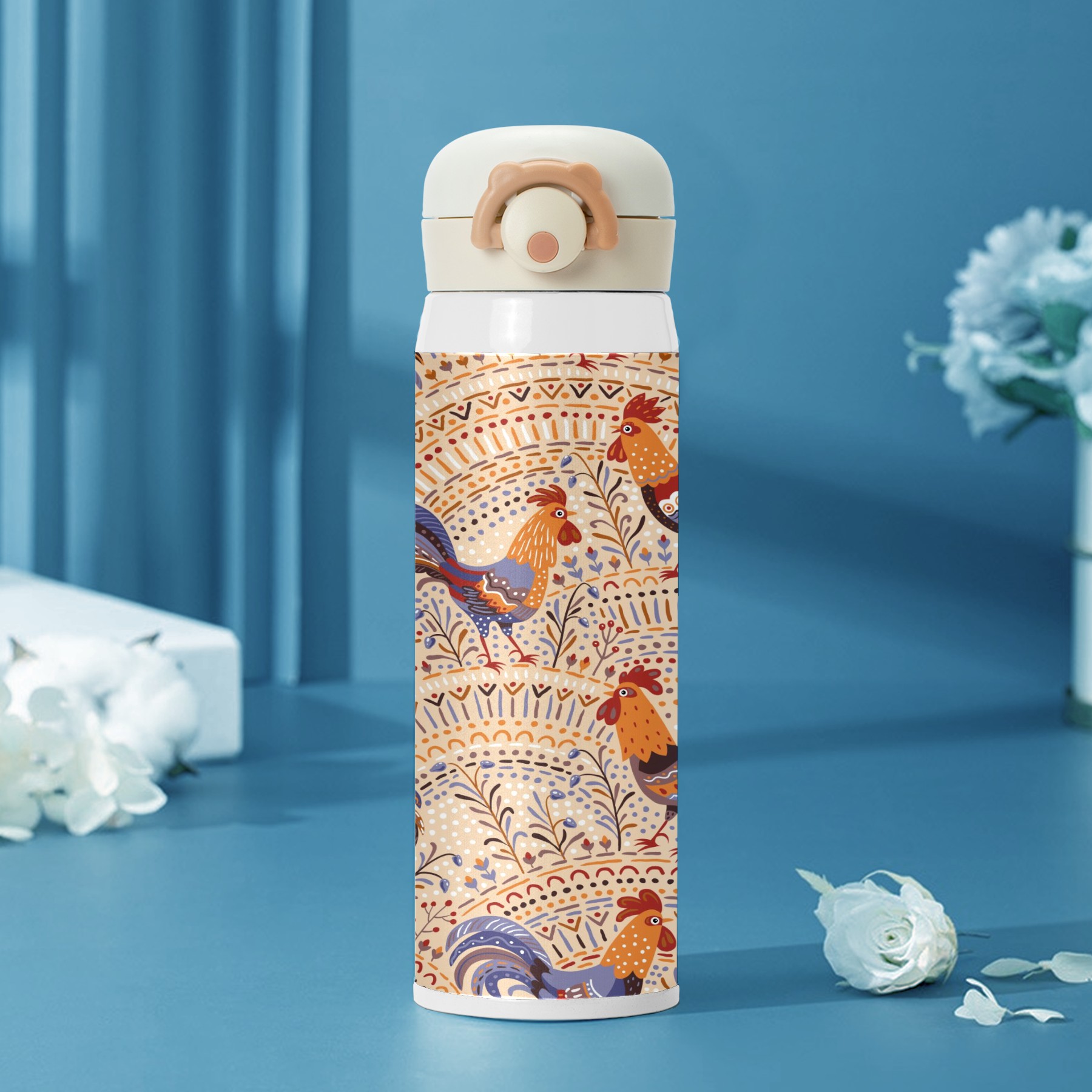 Cute Roosters Floral Ornament