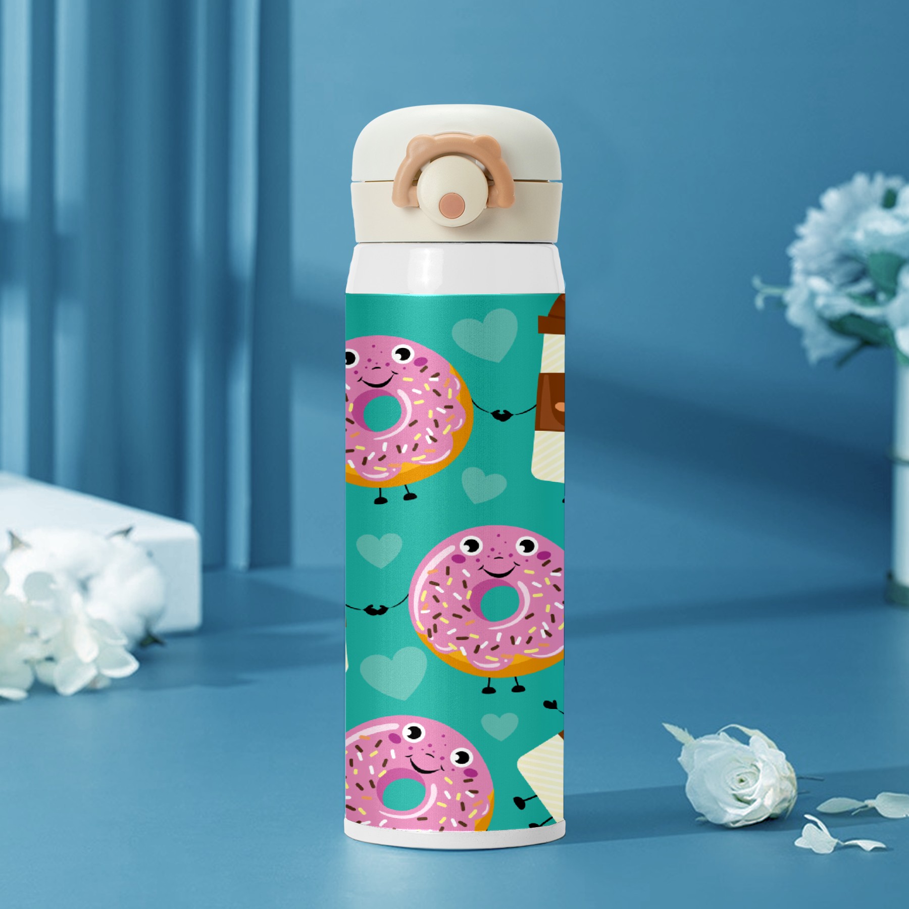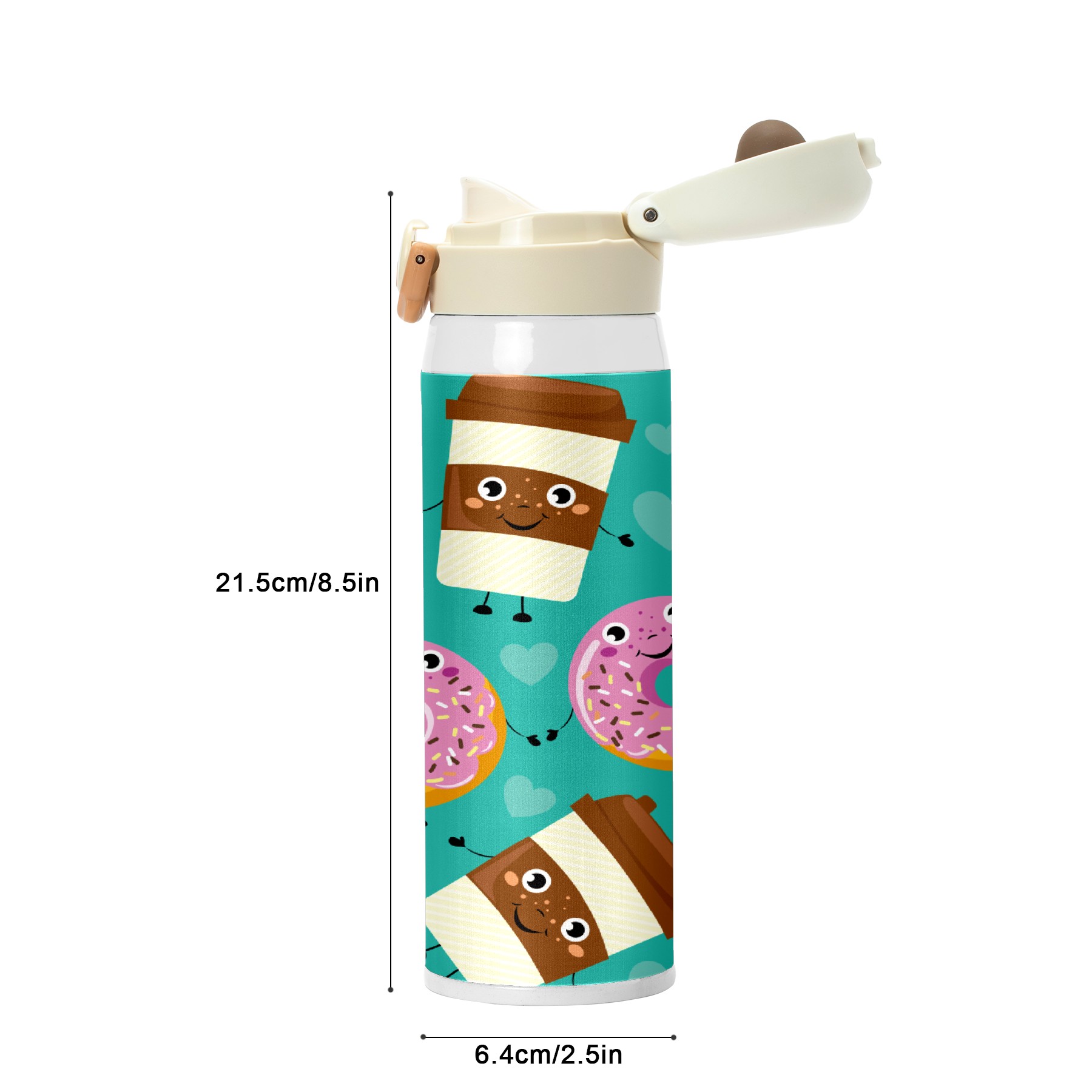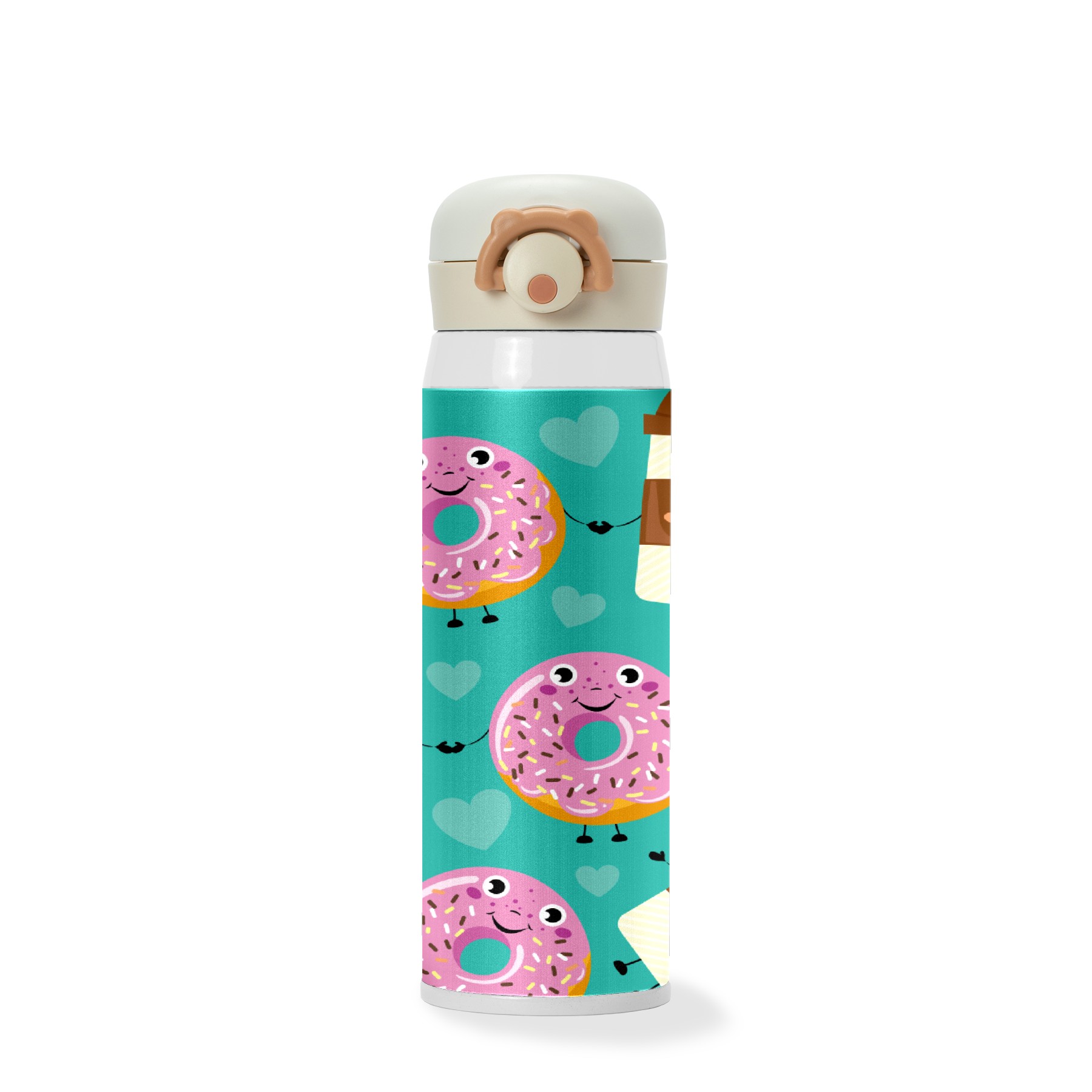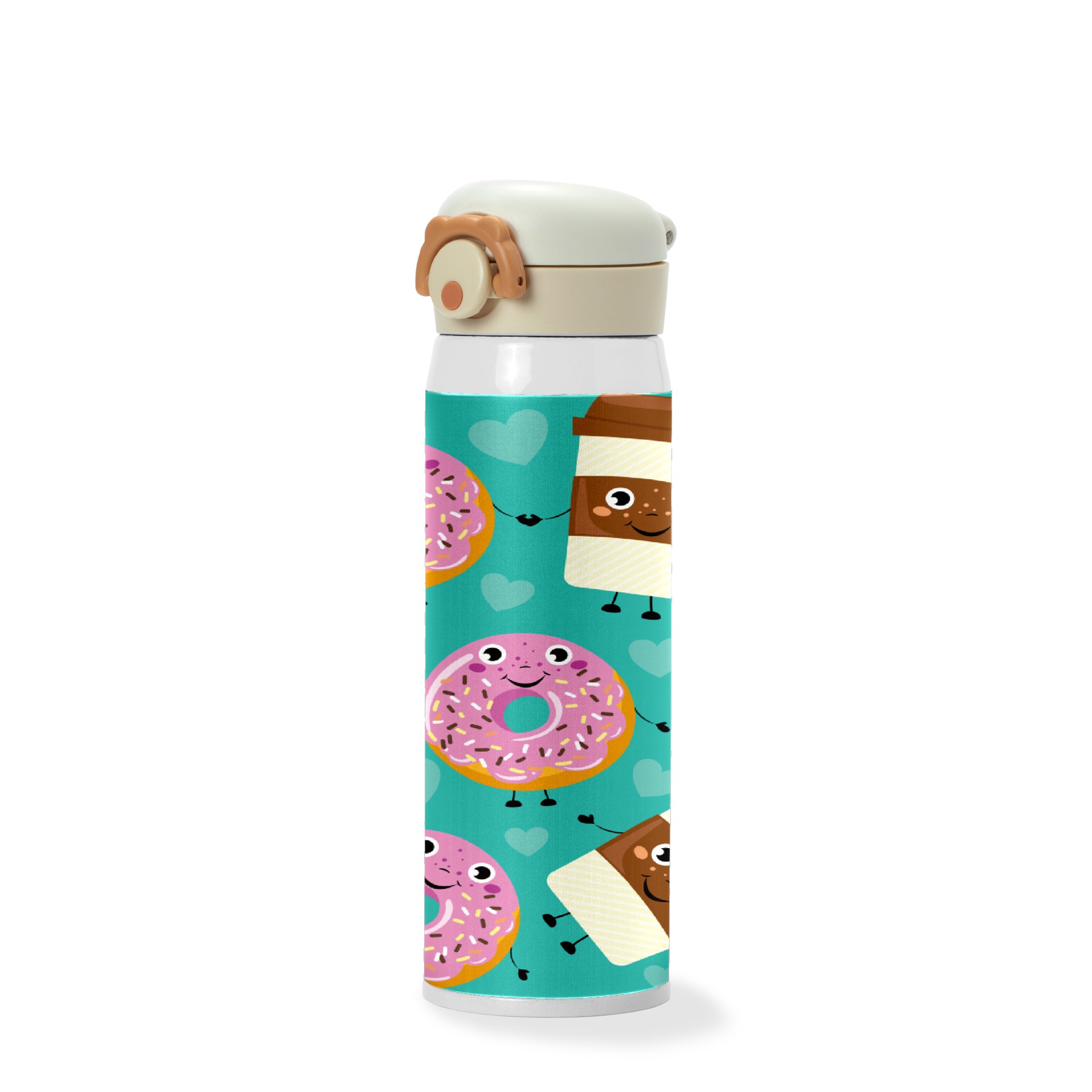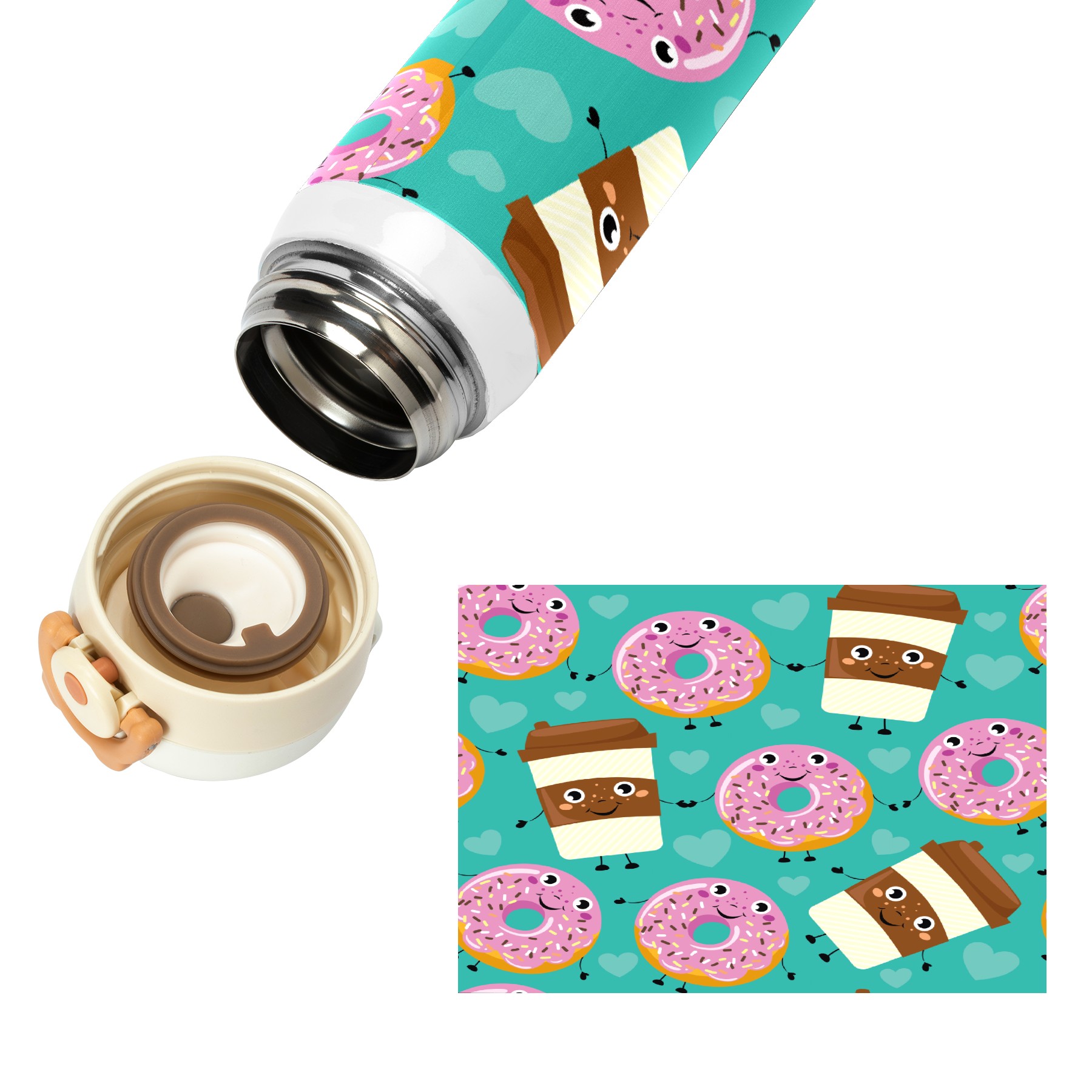 Cartoon Doughnut Coffee Green Pattern