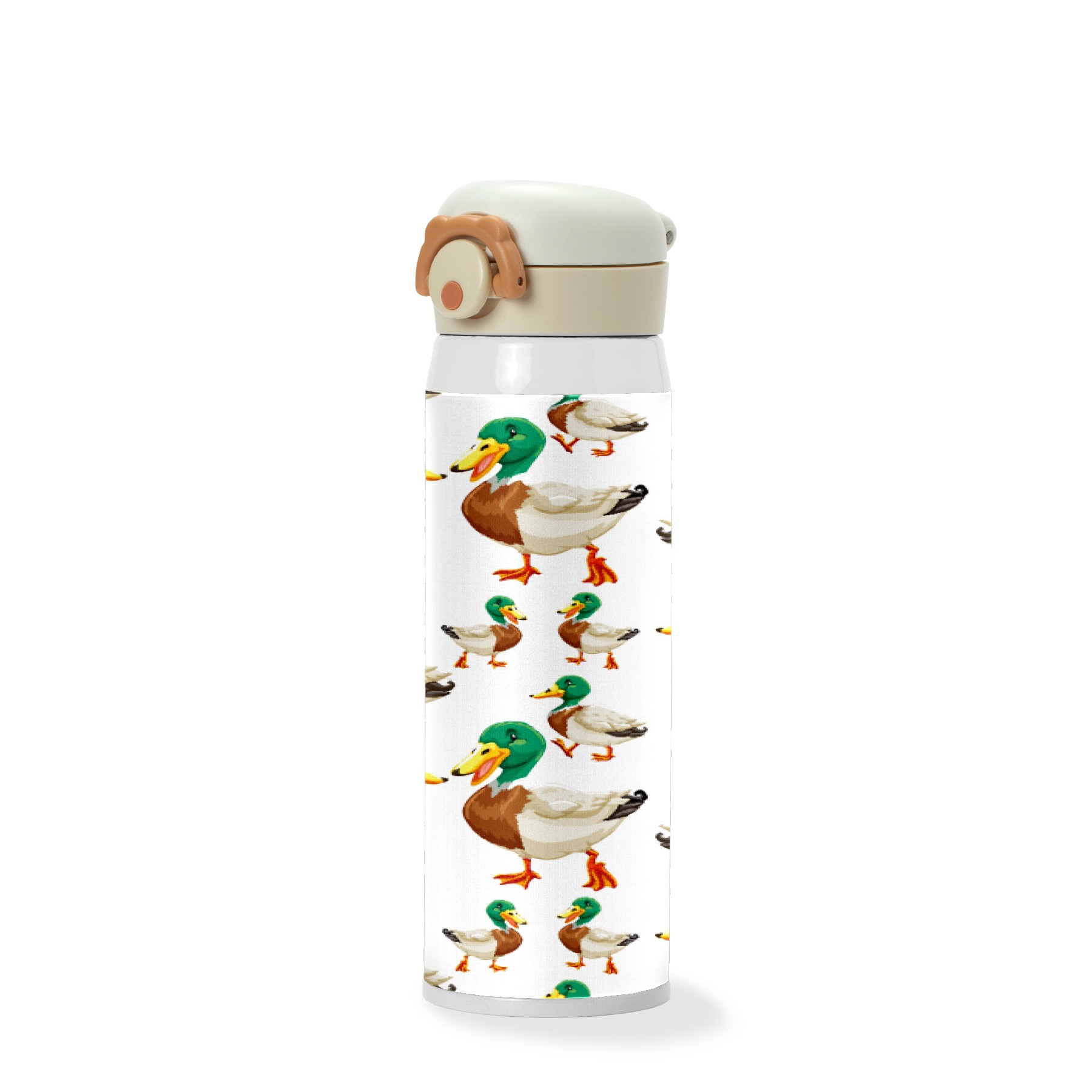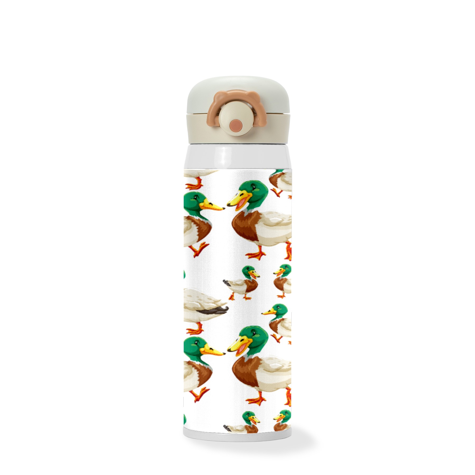 Cute Green Head Ducks On White Background