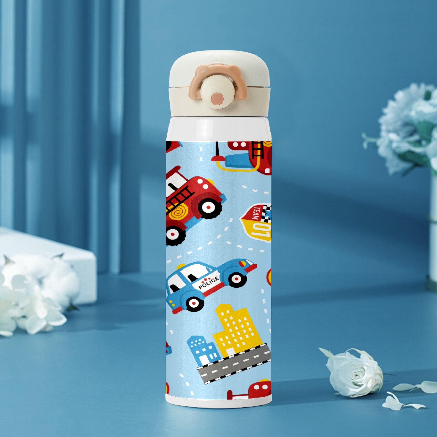 Cartoon Fire Police Car