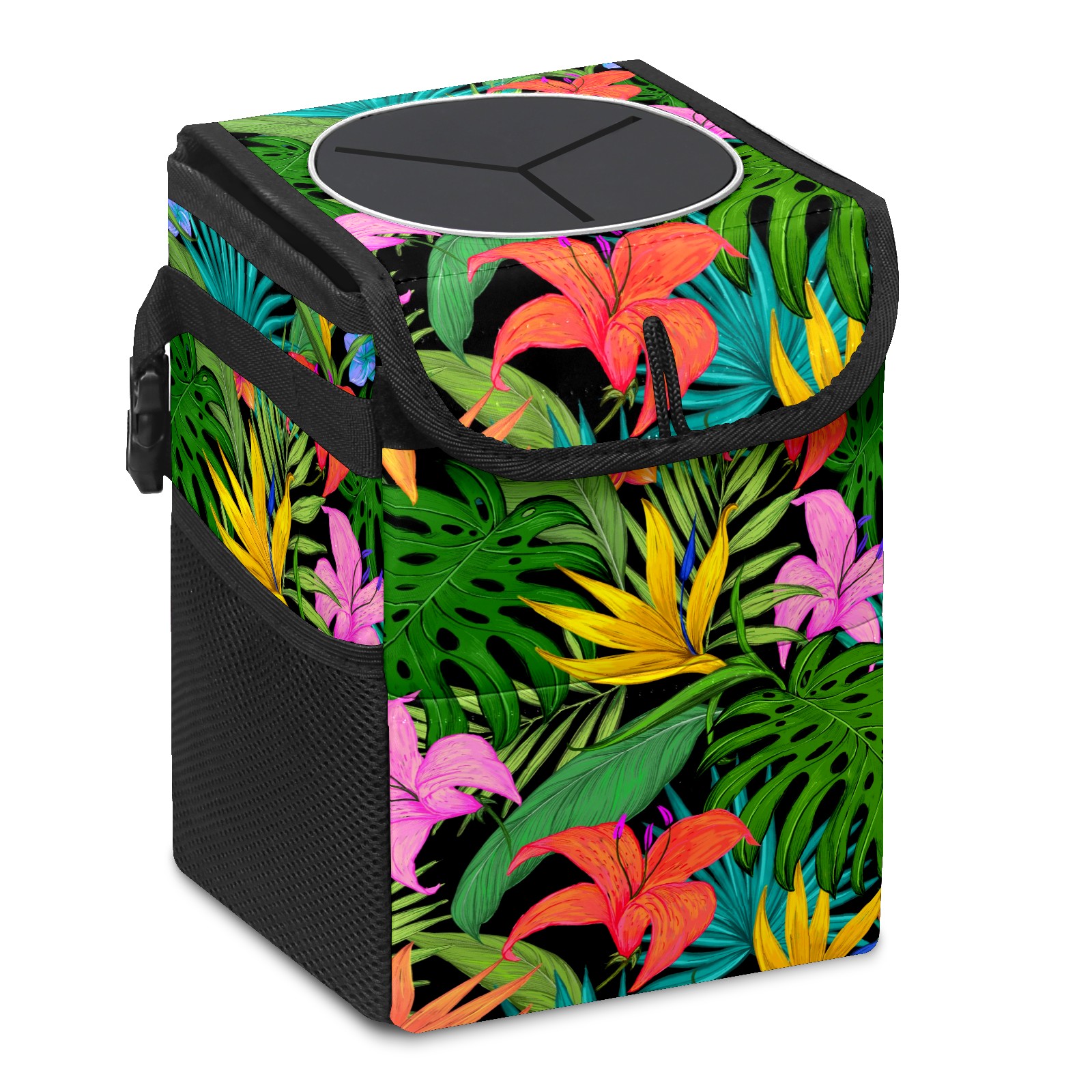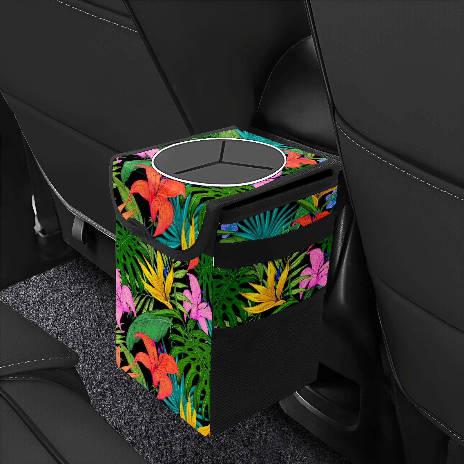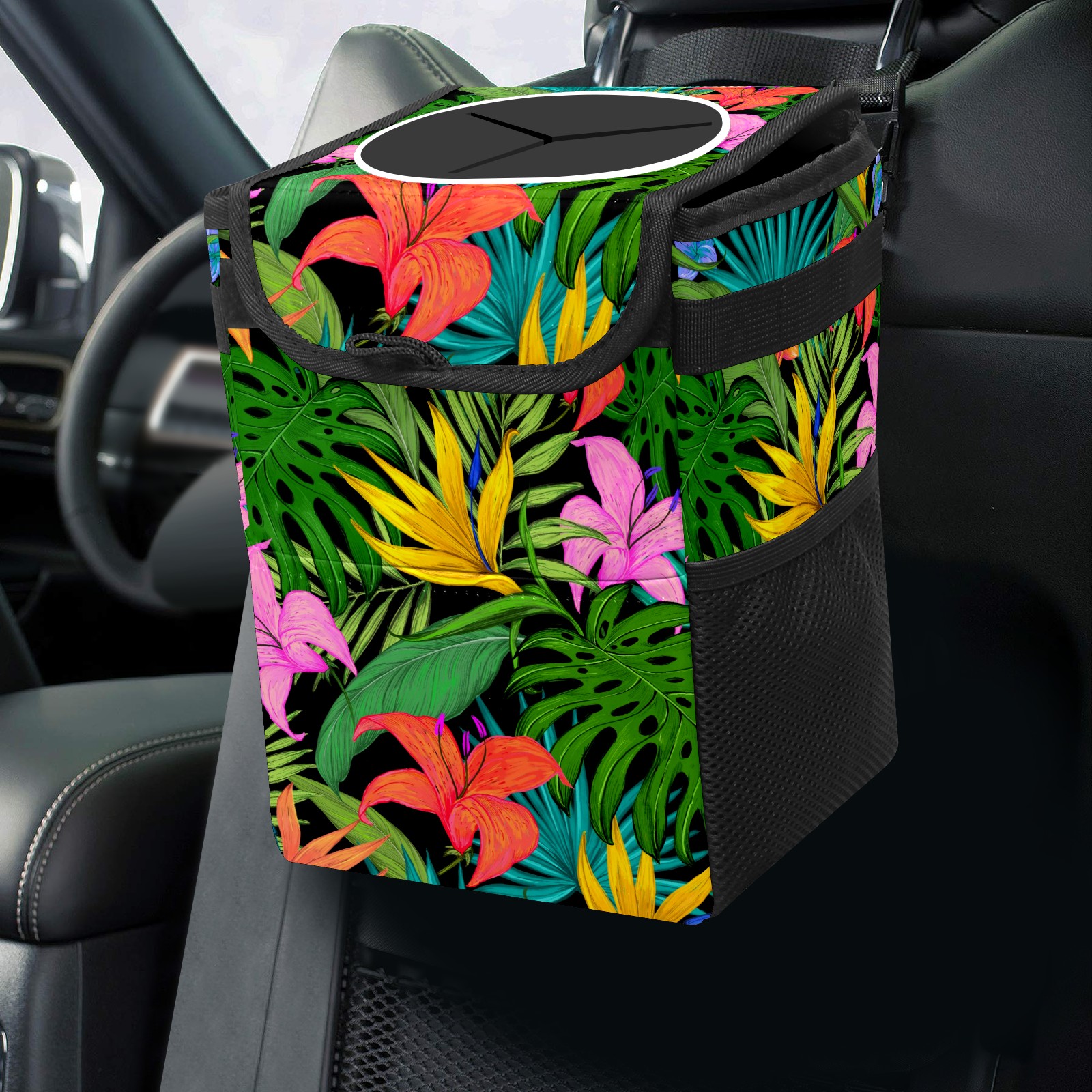 Car Garbage Can — Multi-functional, Lightweight Portable, Reusable Vehicle Trash Can, Waterproof with Sufficient Storage Capacity Tropical Greens