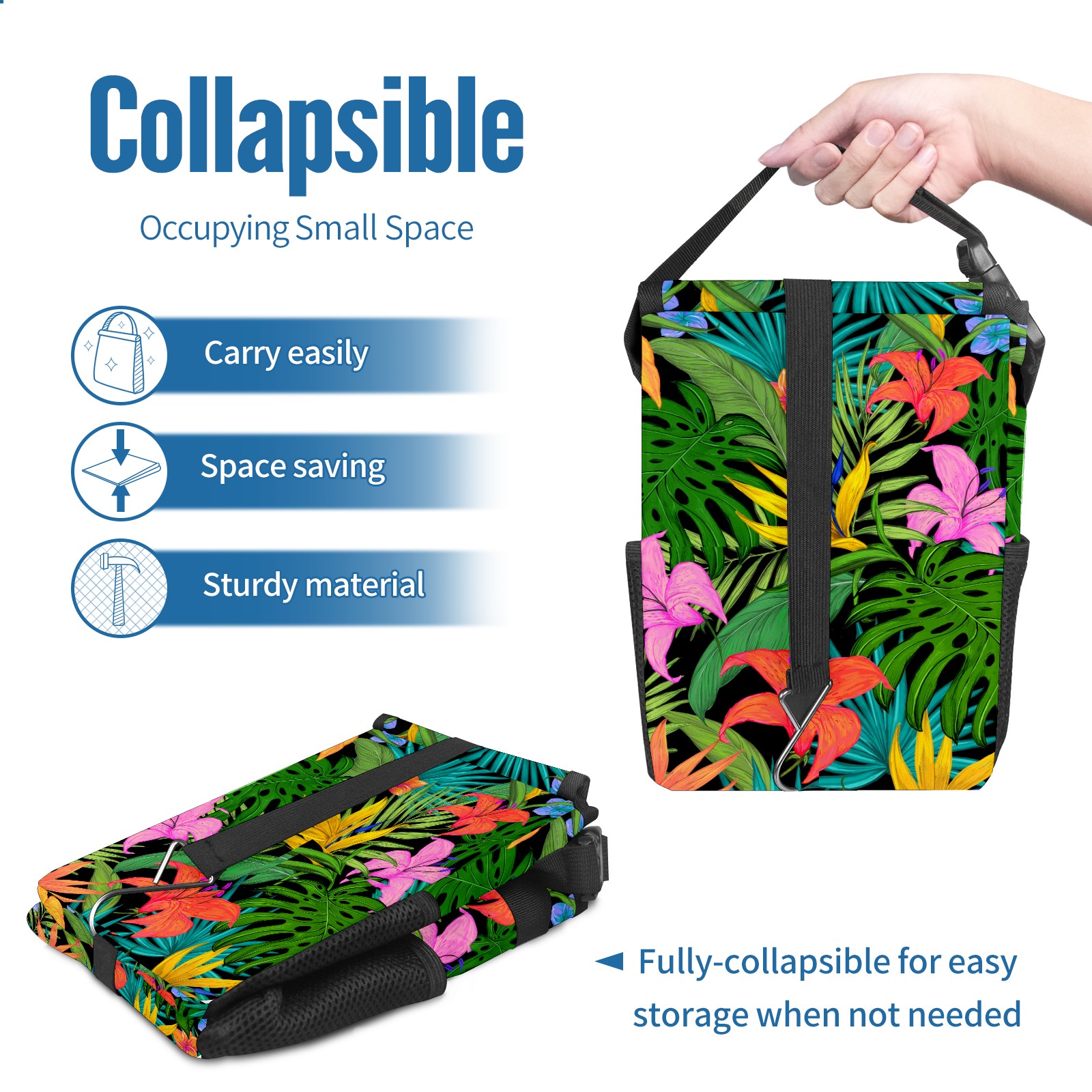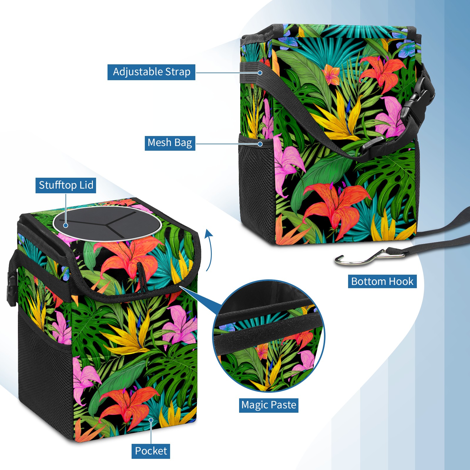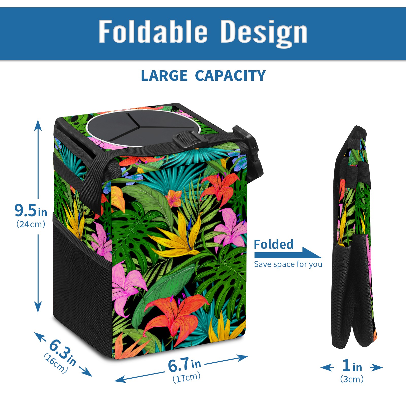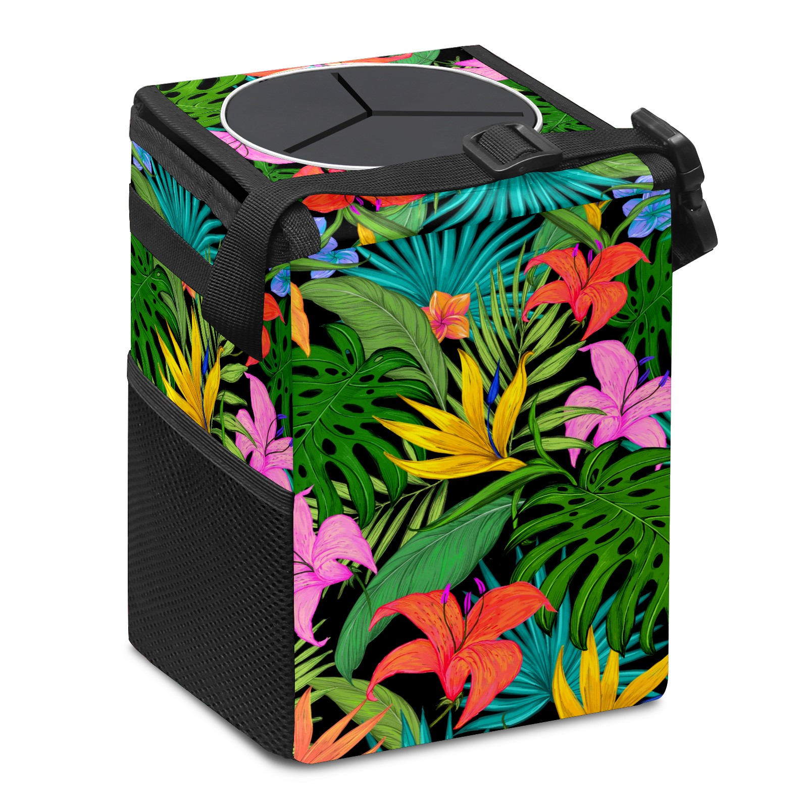 Car Garbage Can — Multi-functional, Lightweight Portable, Reusable Vehicle Trash Can, Waterproof with Sufficient Storage Capacity Tropical Greens