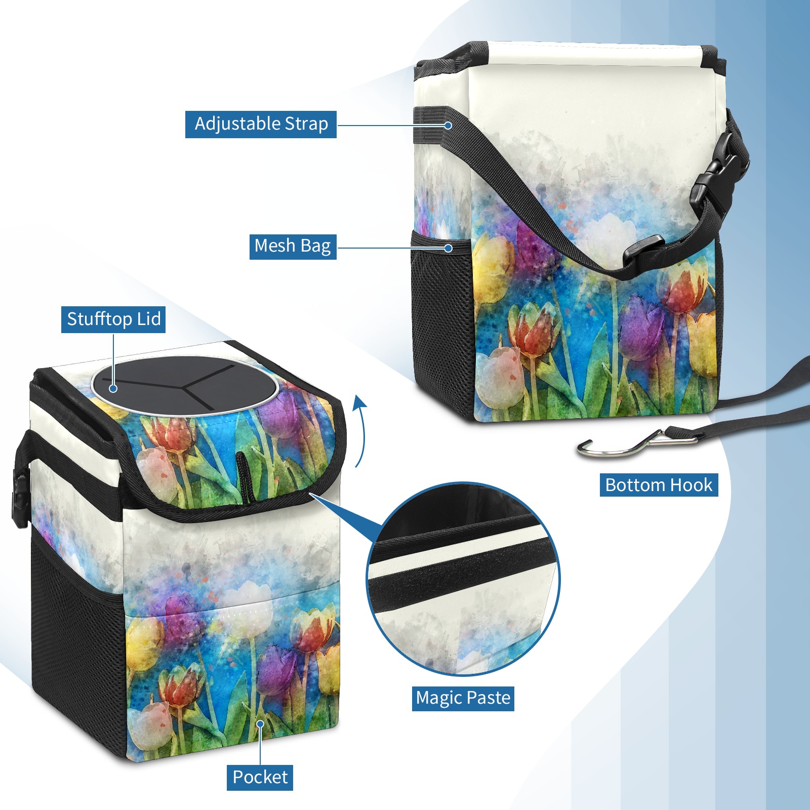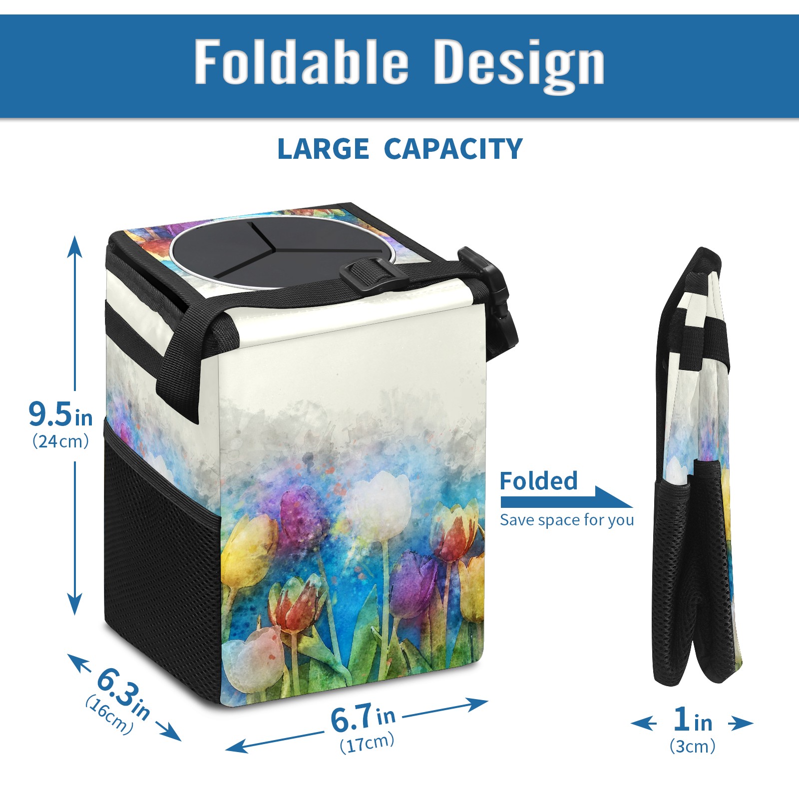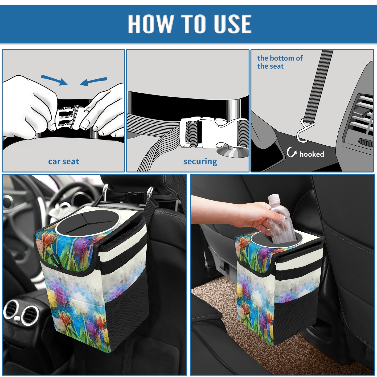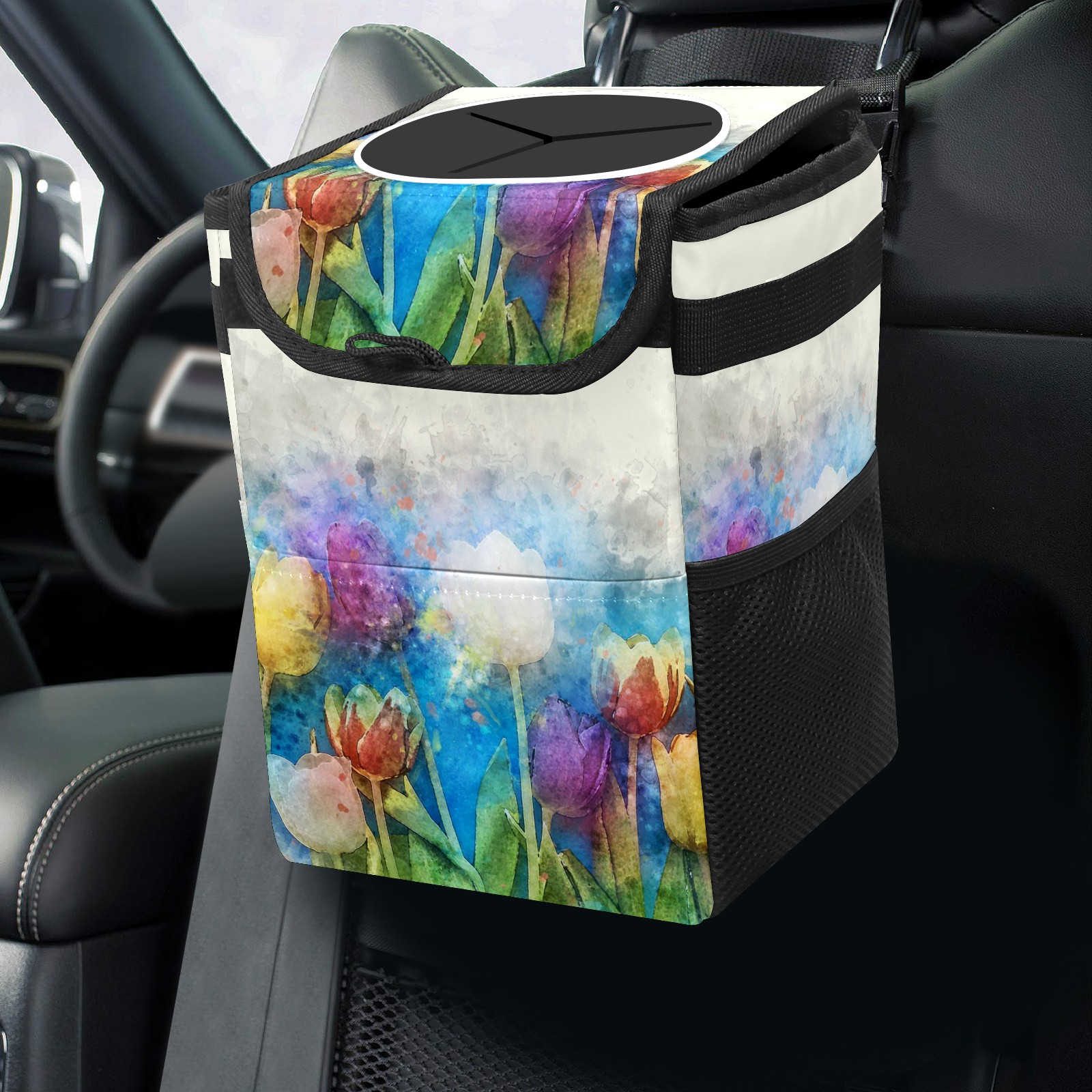 Car Garbage Can — Multi-functional, Lightweight Portable, Reusable Vehicle Trash Can, Waterproof with Sufficient Storage Capacity Flowers