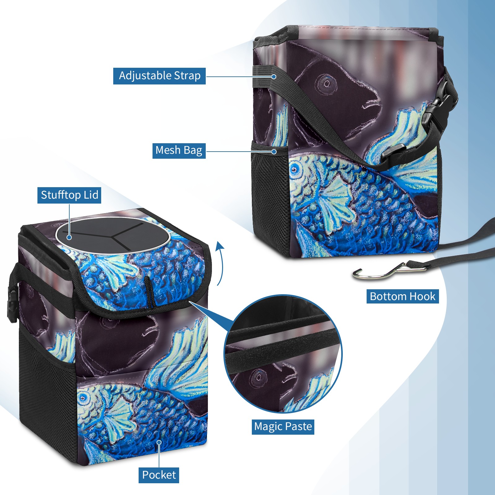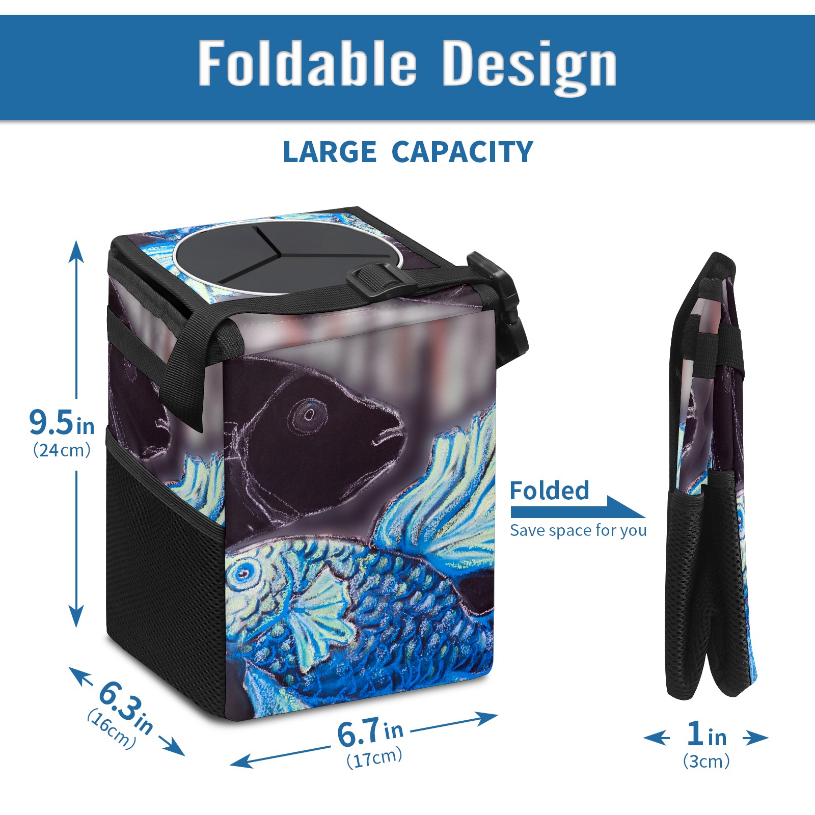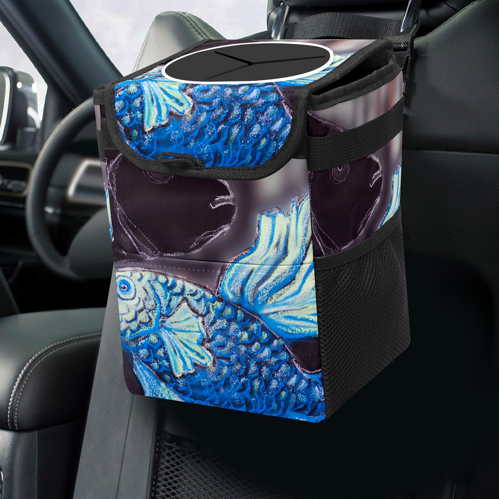 Car Garbage Can — Multi-functional, Lightweight Portable, Reusable Vehicle Trash Can, Waterproof with Sufficient Storage Capacity Art Fish